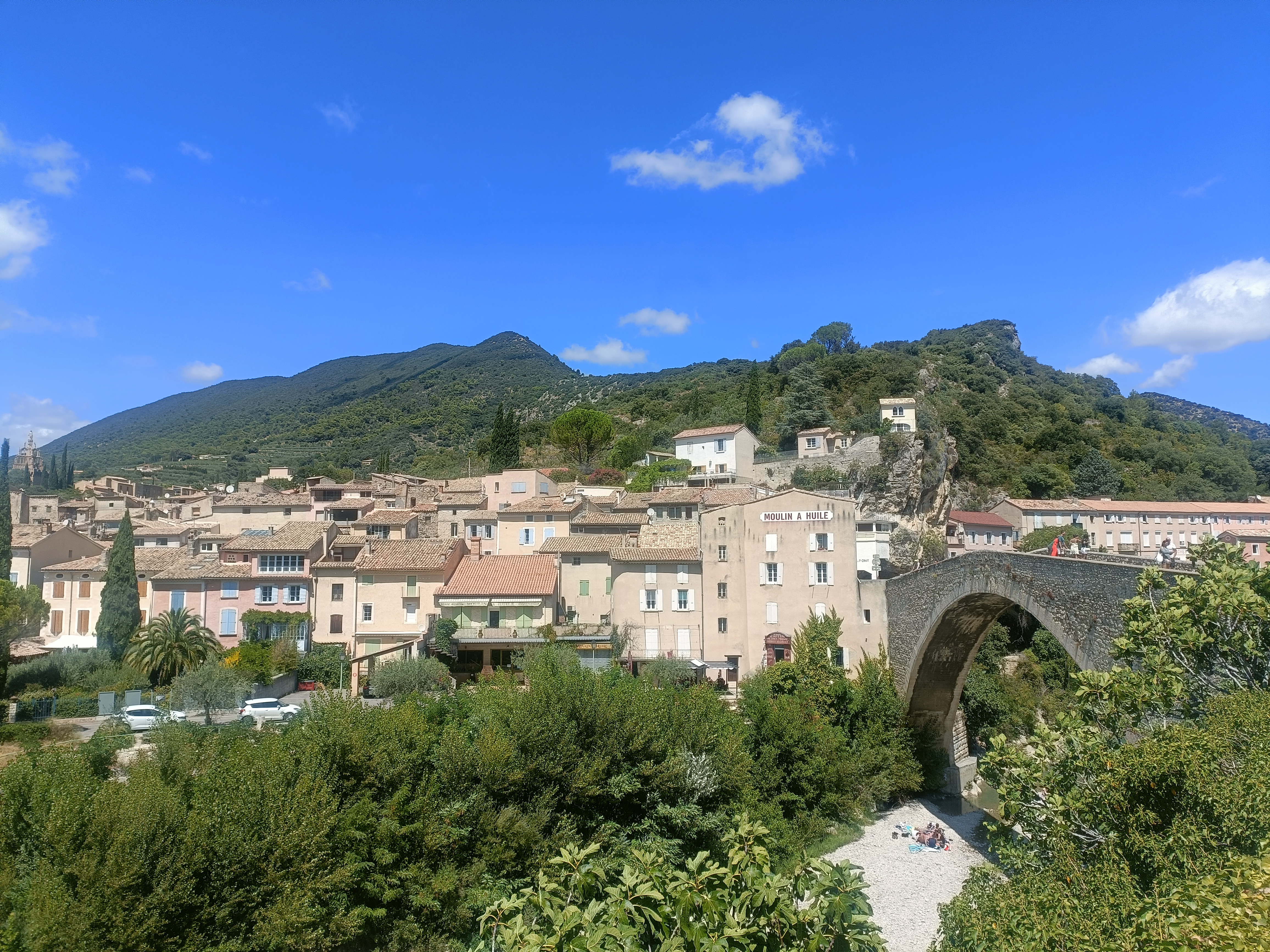 Puis, c’est la période « jour/nuit/jour/nuit » qui commence, tout au long de l’autoroute jusqu’à Nice : une succession interminable de tunnels et viaducs, durant laquelle ta main gauche passe son temps à monter et descendre l’écran solaire du casque. Encore 580km pour rejoindre Rabastens, en gérant la mécanique, c’est à dire en évitant toutes accélérations et décélérations trop brutales qui finiraient par briser la chaine de transmission, alors que l’arrosage d’huile sur ma botte se poursuit tout au long du parcours.