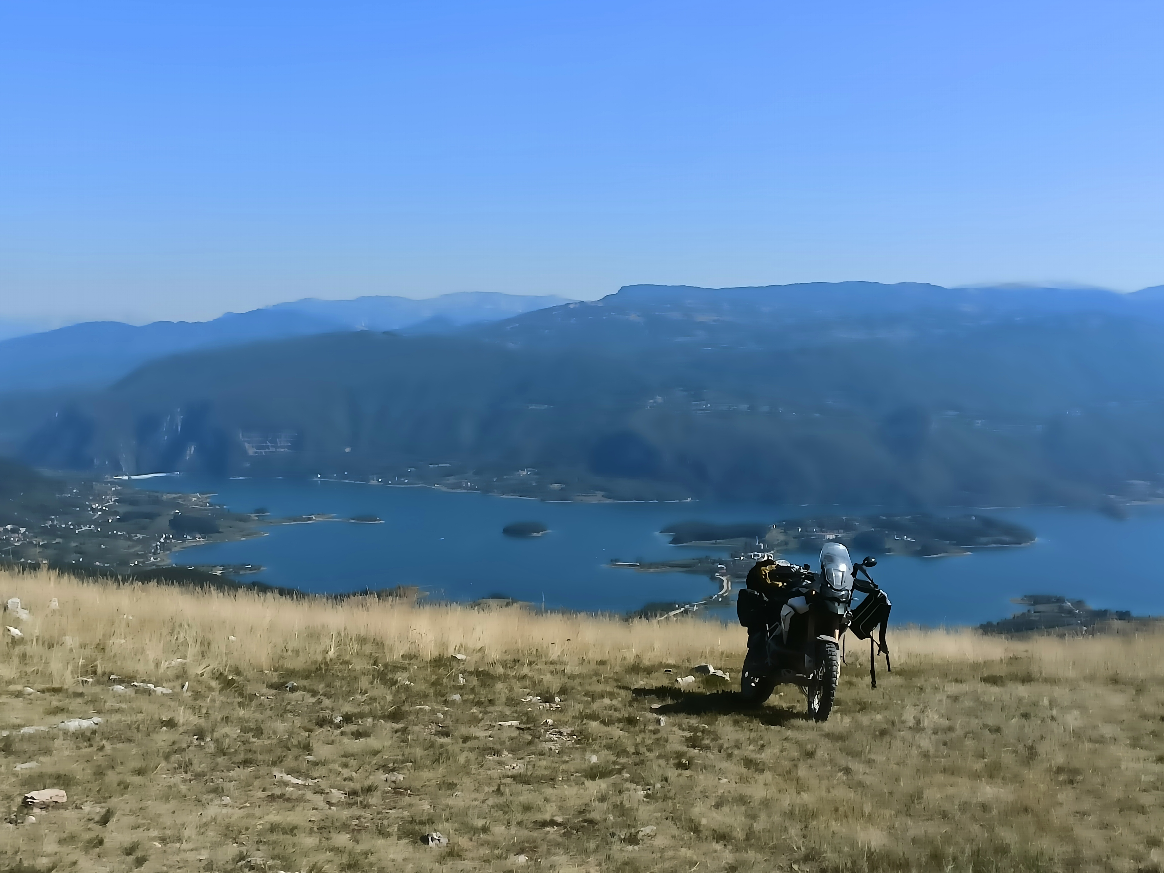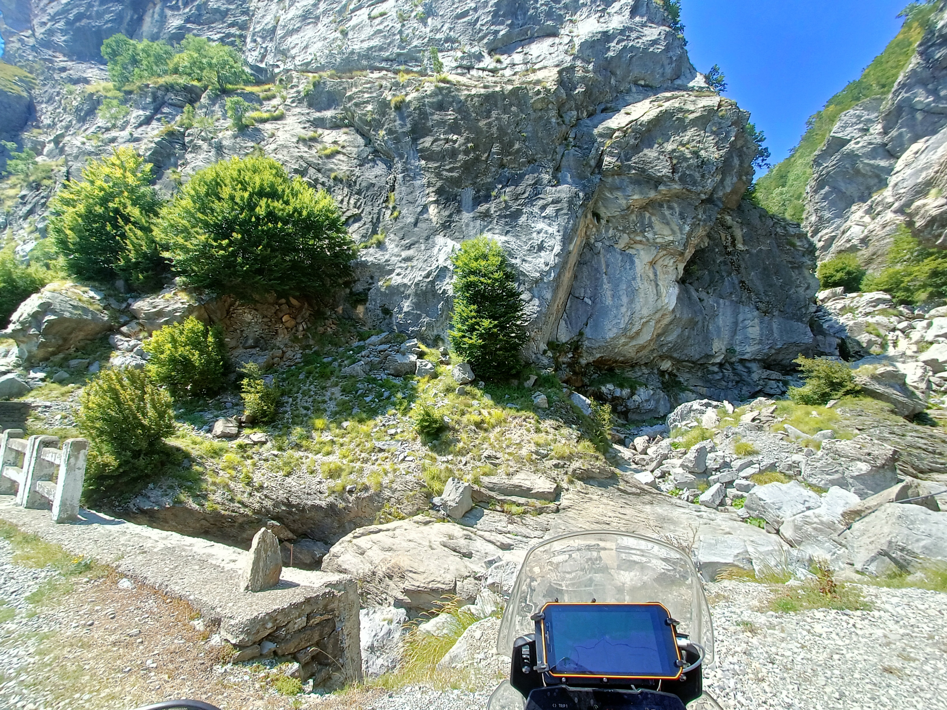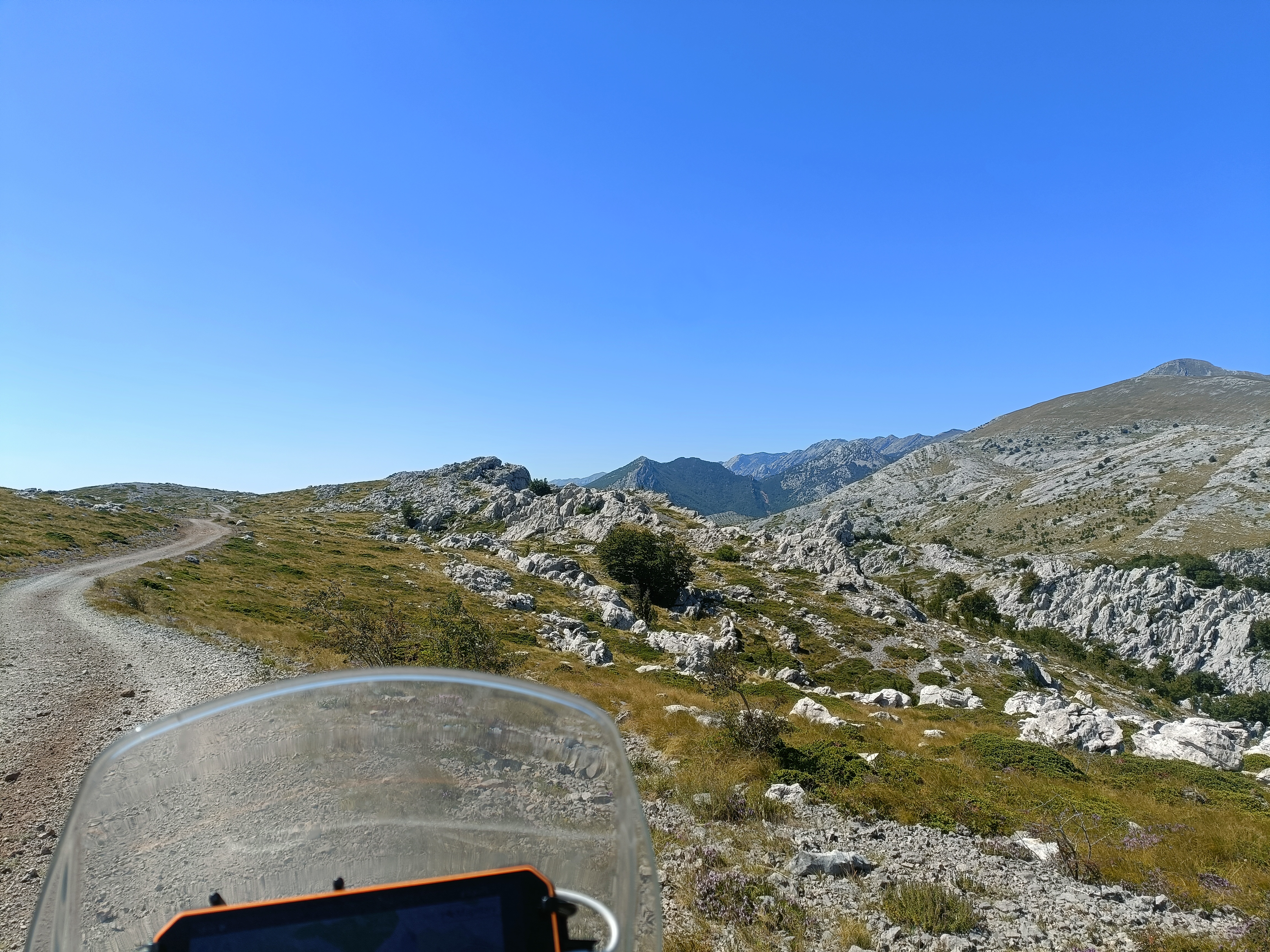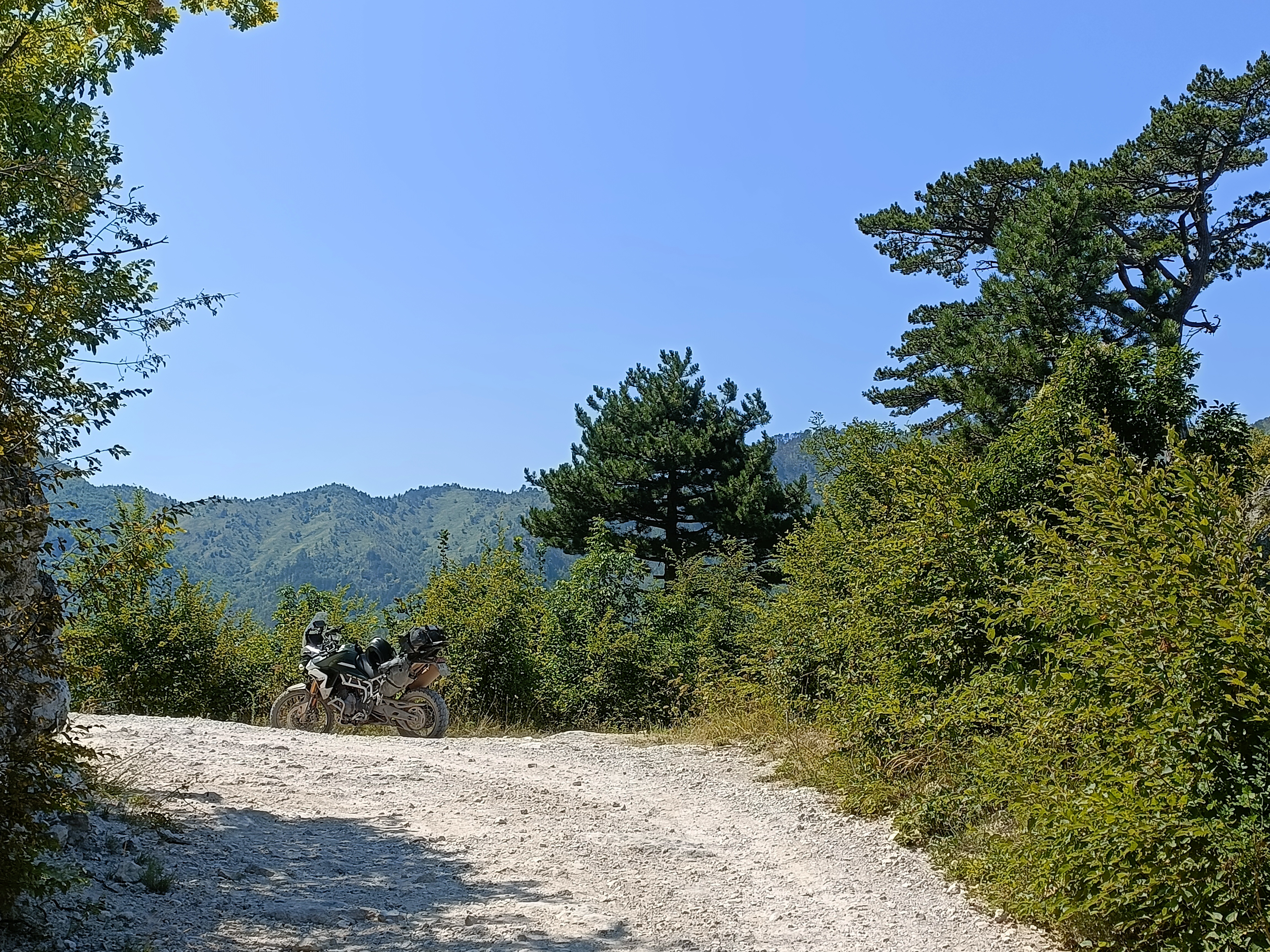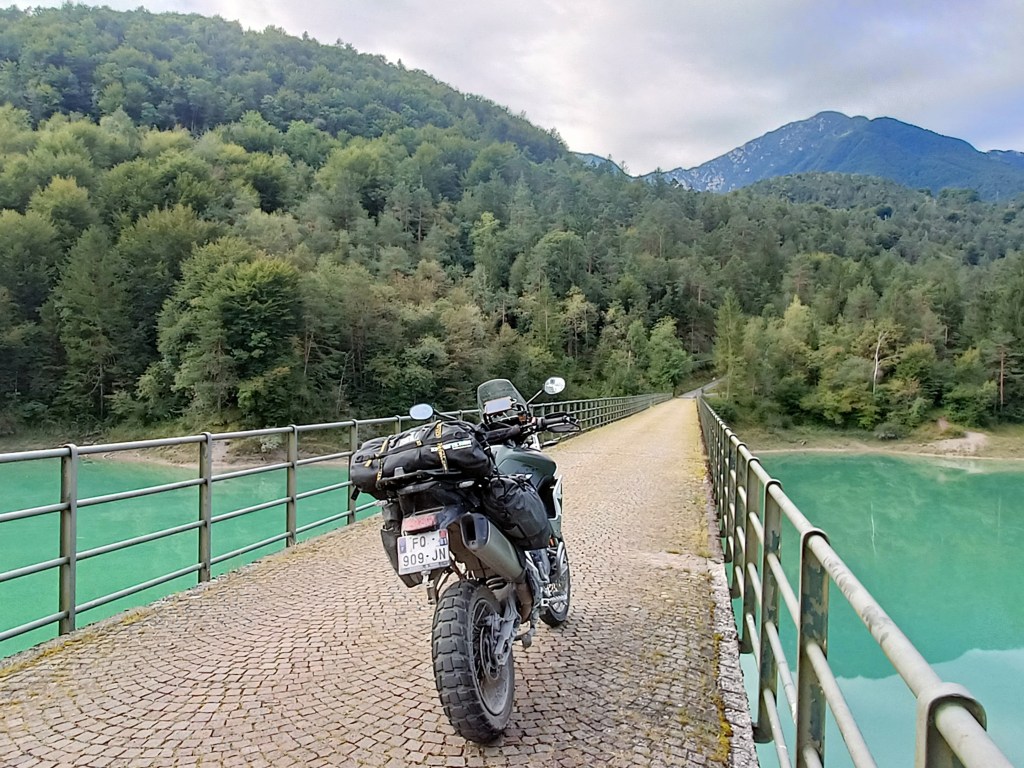 Mon choix s’est donc porté sur un grand tour de la mer Adriatique jusqu’au nord de la Grèce, en mixant mes propres traces pour la France et l’Italie, essentiellement sur routes pour l’Italie, à l’exception de quelques pistes bien connues (Assietta, Finestre, Lombardo, Giogo del Balà) et autoroutes pour la France (à l’exception du Parpaillon), pour progresser assez vite et avoir assez de temps pour suivre une grande partie des traces du Trans European Trail pour la Slovénie, la Croatie, la Bosnie, le Monténégro et l’Albanie, où j’aurais passé une majorité du temps dans la poussière, les caillasses, la terre, bref, là où généralement nature et paysages émerveillent votre progression. Au total, 7135km réalisés avec la Triumph pendant que la GasGas patientait dans le garage, des moyennes de 500km pour les journées routières, aux alentours de 250km pour les journées hors routes.