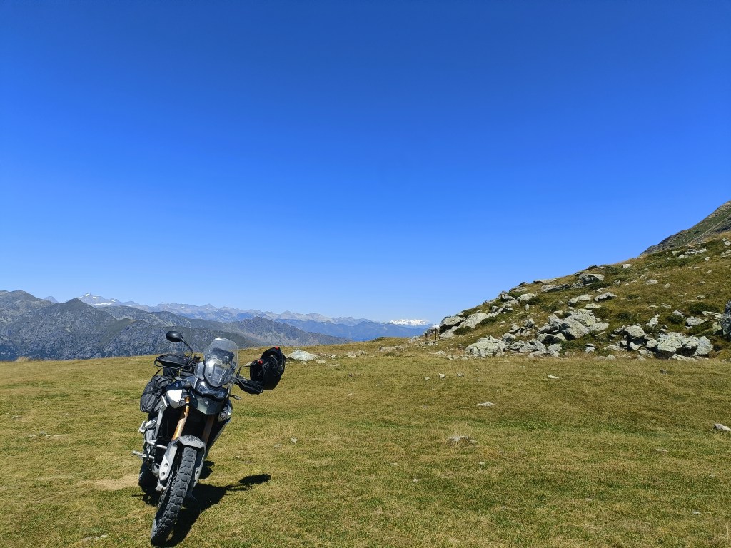 On rejoint Sestrières en Italie par Briançon au bout de 100km. Sestrières est la station alpine où débute la longue piste d’altitude et de crêtes qui, par le col de l’Assietta puis de Finestre, vous amène plus au nord dans la vallée de Susa. Environ 50km de pistes relativement faciles (Attention, fermée à la circulation motorisée 3 jours par semaine) d’où l’on peut contempler les sommets alpins d’un côté, et la plaine turinoise de l’autre. 20 km de route et on enchaine direct avec le Passo Lombardo, une piste d’environ 30km qui vous mène au-dessus de 2000m au « Santuario della Madonna degli Angeli ». La piste est cette fois un peu plus technique, même si elle reste à la portée d’un gros trail avec un minimum d’expérience, en particulier la descente assez raide parfois. Après cette matinée bien caillouteuse et en hauteur, on poursuit par 200km de petites routes sinueuses du Piemont jusqu’au Lac Maggiore, où cette fois-ci les ravioles en seront vraiment.
