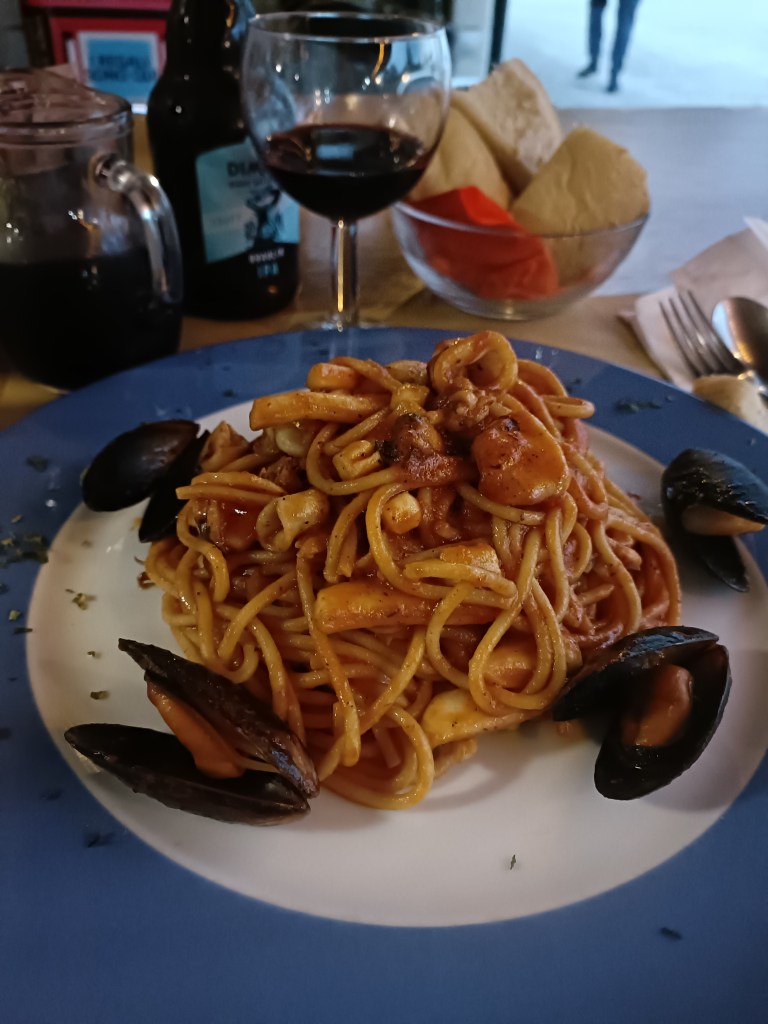 Arrivée à Brindisi, jolie ville portuaire, fortifiée, aux excellents spaghetti al frutti di mare.