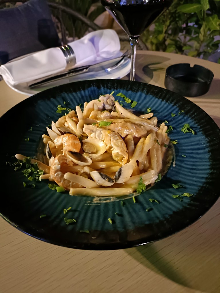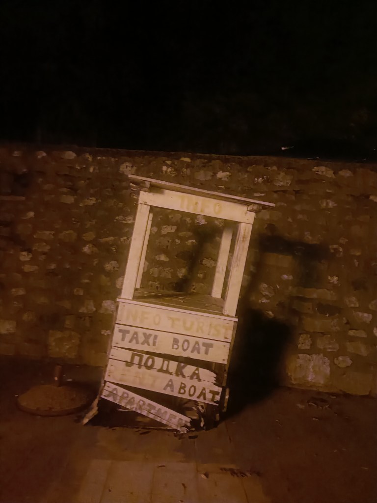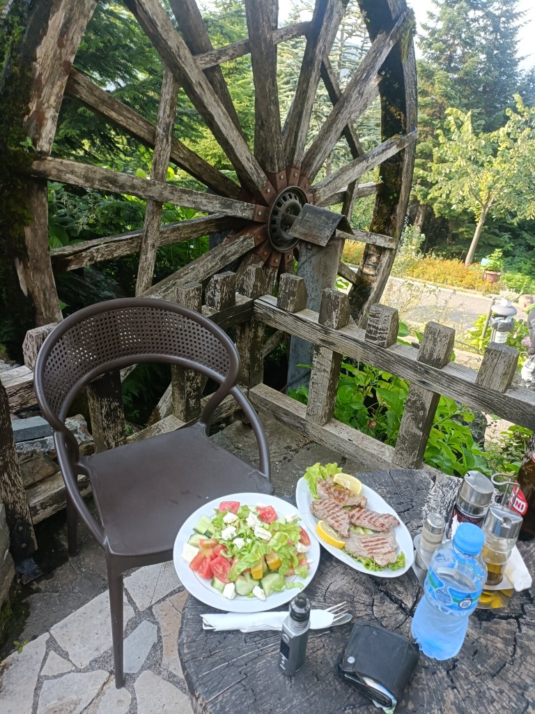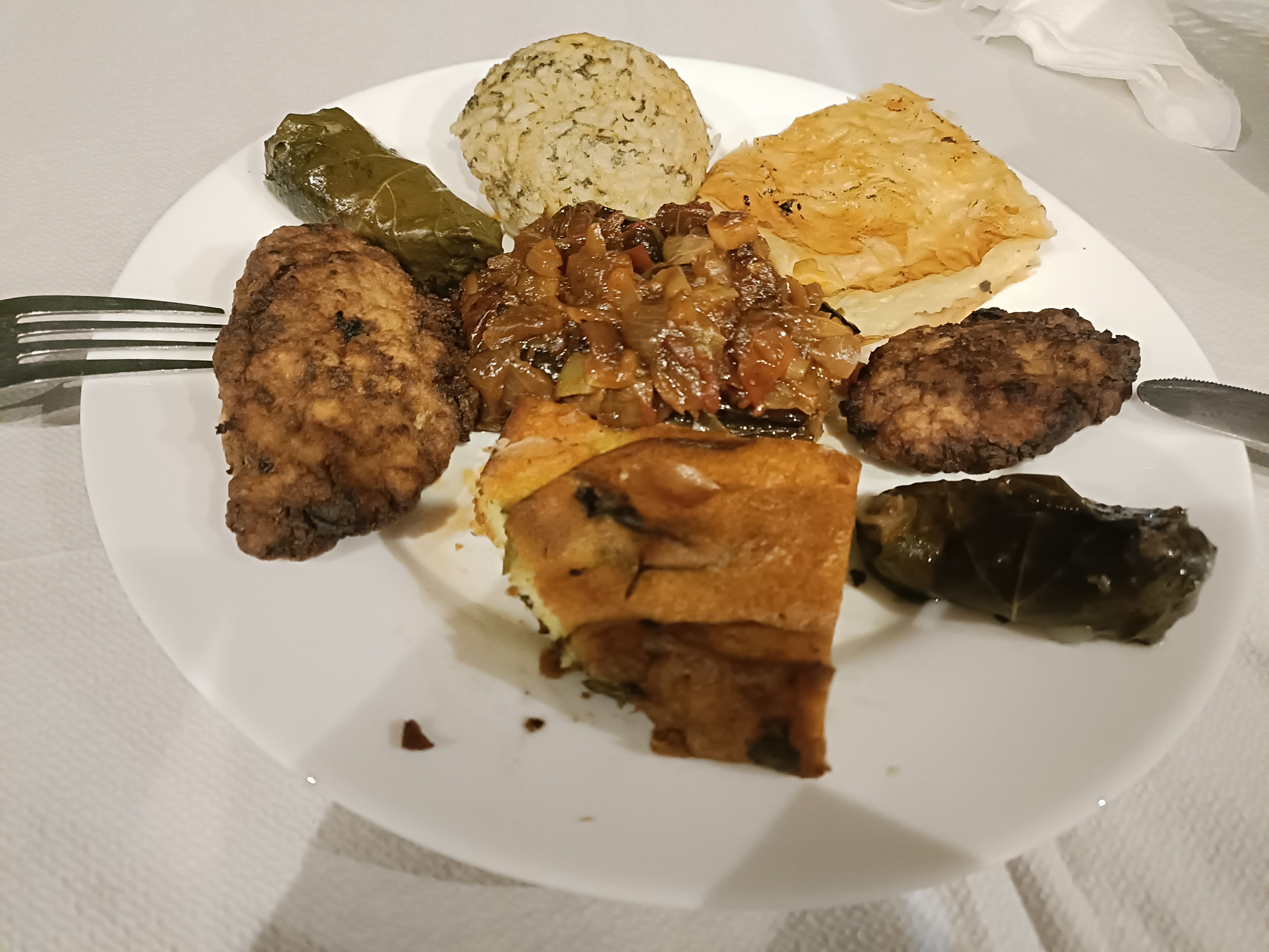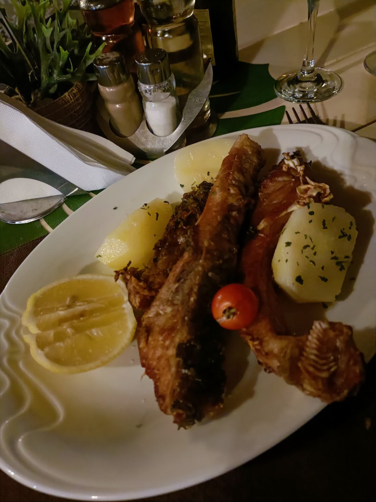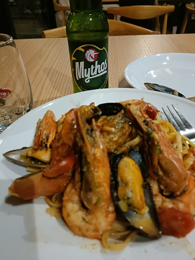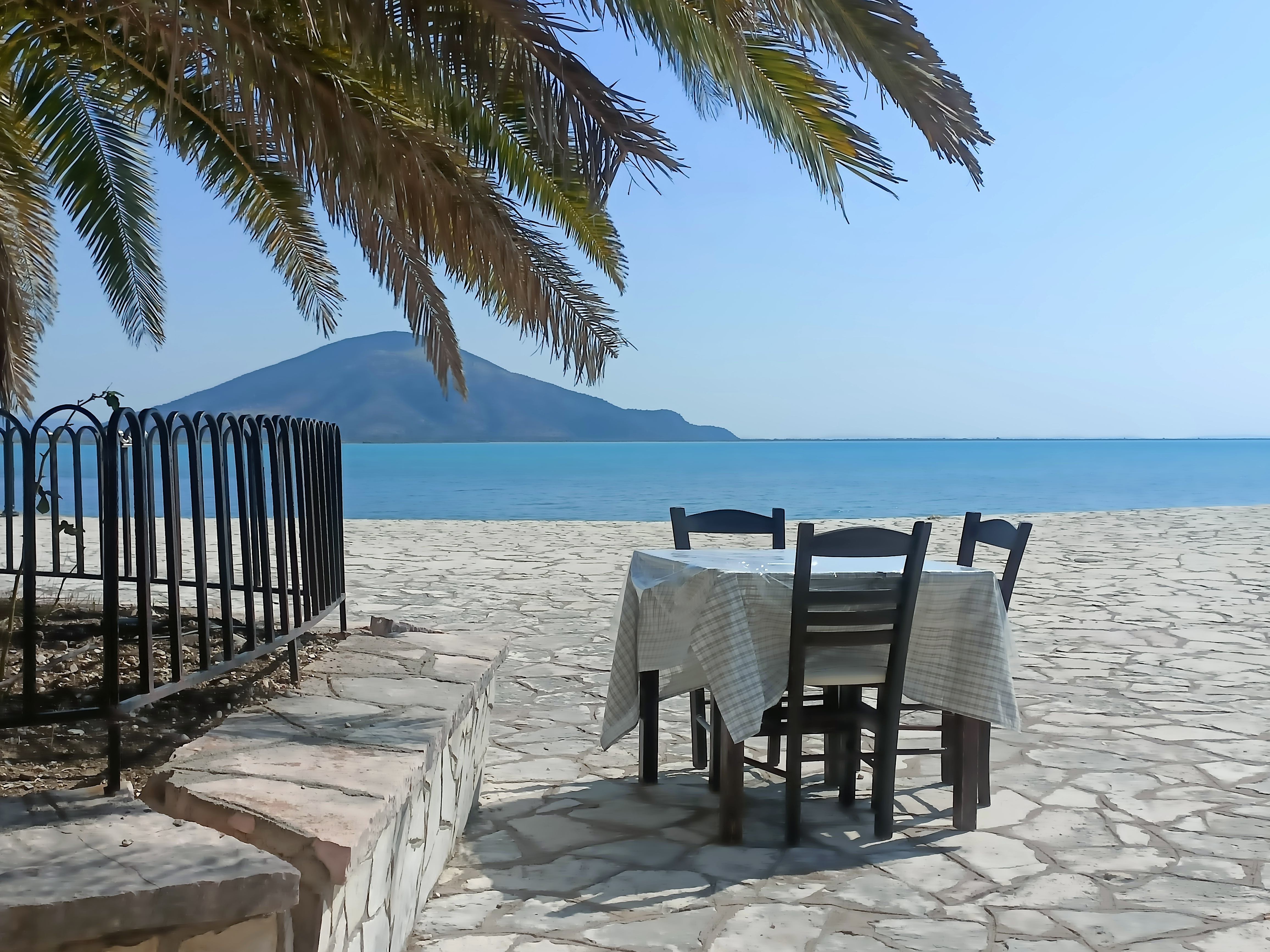 Je repars vers la frontière grecque et m’arrête dans le premier village de pêcheur, Sagiada. Aucun touriste, une vue superbe sur Corfou, et un restaurant de poissons avec une carte de « génériques » et une carte de la pêche locale. Il est 17h mais peu importe l’heure, je reste là 3h à contempler l’adriatique et déguster Saint-Pierre et Bars en papotant avec le fils du parton marin-pêcheur, entre deux fournées de glaçons pour la cheville. Je prends mon temps car je ne suis plus qu’à 20km du port d’Igoumenitsa, d’où mon ferry pour l’Italie lève l’ancre le lendemain matin.