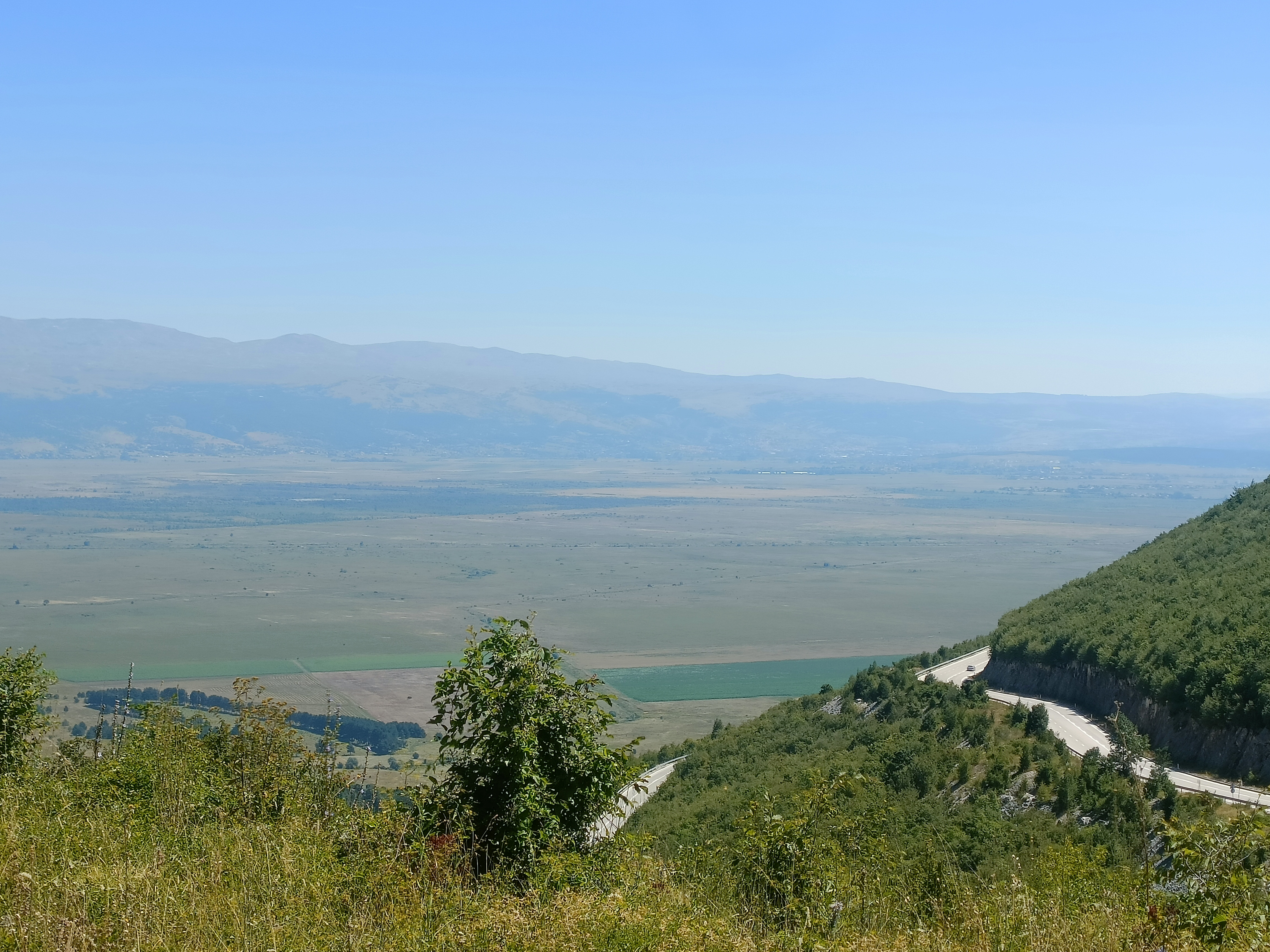 Sorti du ferry, on part pour 200km de routes de montagnes très étroites et chaotiques. Rarement une route m’aura épuisé plus qu’une piste. je me prenais parfois à rêver d’une ligne droite de 50 mètres. D’abord jusqu’à Kukes plus à l’ouest, puis le long des frontières kosovares puis macédoniennes. Il est tard, la région est déserte, mais on y trouve des fermes qui vous hébergent et vous nourrissent. Je m’arrêterais dans une sur un plateau. Une famille souriante et accueillante. On n’aura pas pu vraiment échanger de mots, mais on aura bien partagé le raki.