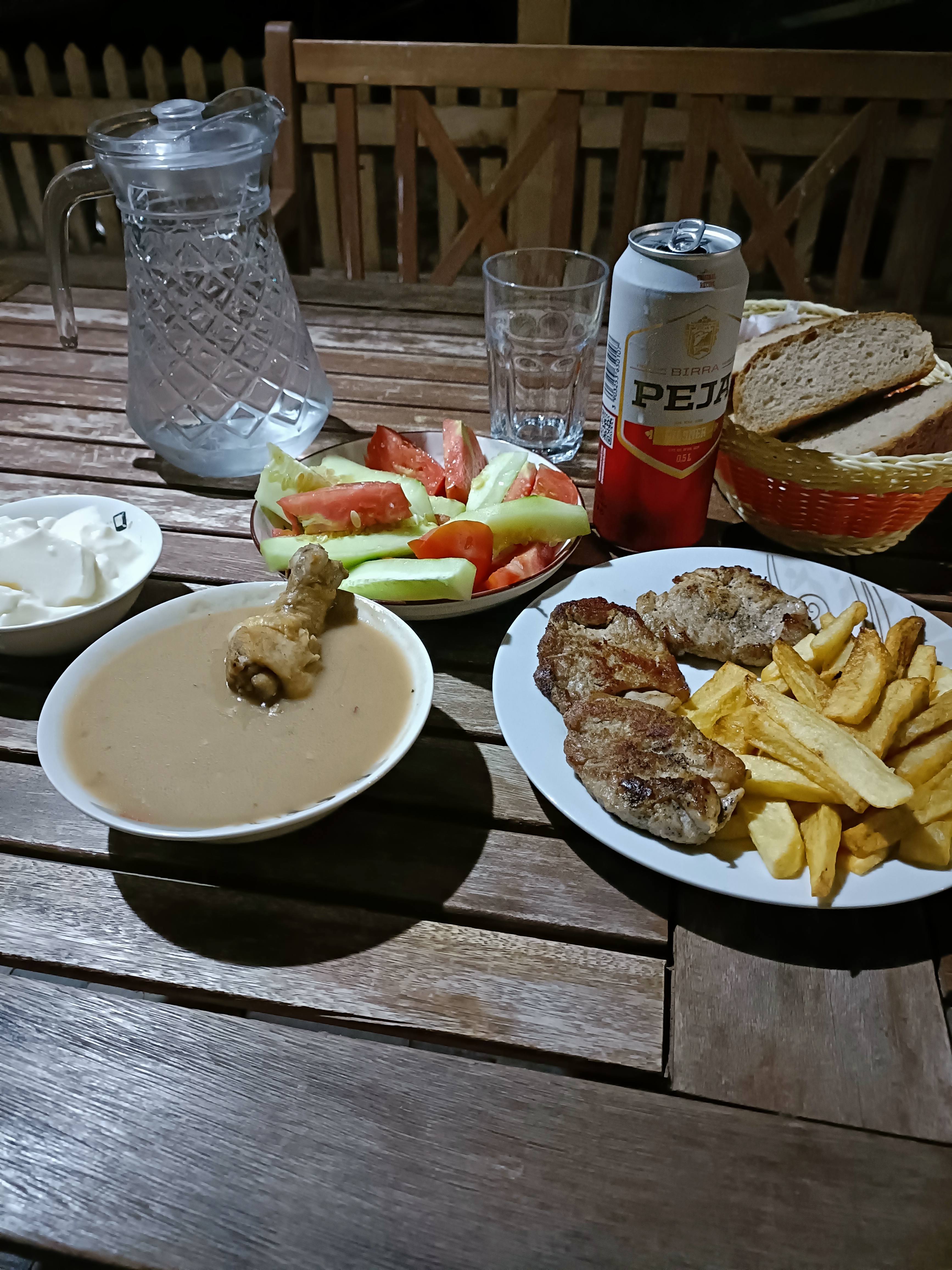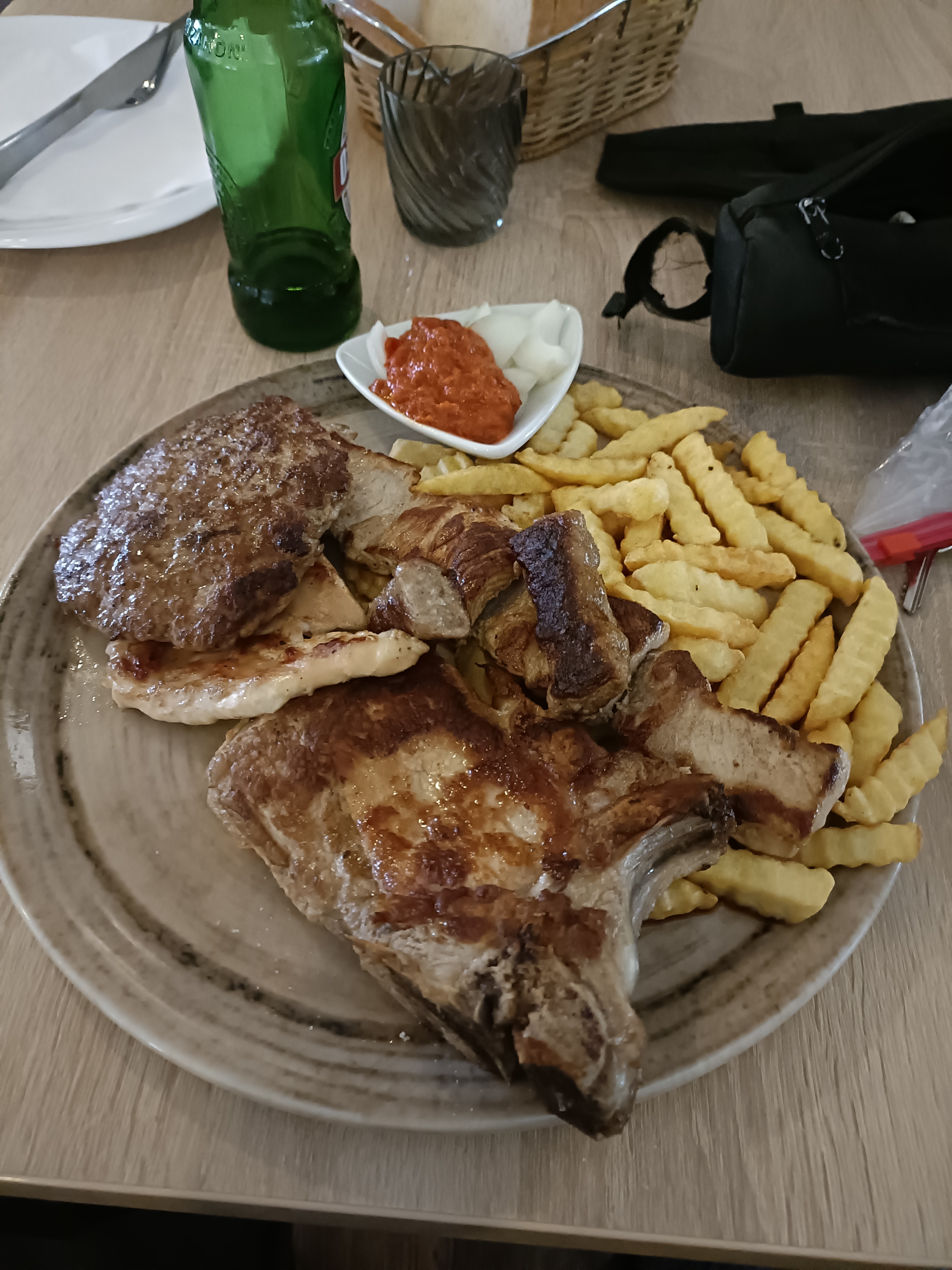 On repart plus au sud dans les terres pour rejoindre la Bosnie et le village de montagne de Kupres au bout de 200km. Le passage à la frontière quelques heures avant, au sommet d’un col dans un paysage aride et désertique, fait l’objet d’un accueil plutôt froid, mais j’ai rarement vu un douanier sympa en général. Dans Kupres, un seul restaurant, et pas de langue commune pour commander. Alors je fais un tirage aléatoire sur la liste et tombe sur une assiette qui devait s’appeler « Si après ça t’as faim je ne peux plus rien pour toi » (5 viandes différentes qui débordaient d’une assiette qui s’apparentait plutôt à un plat).