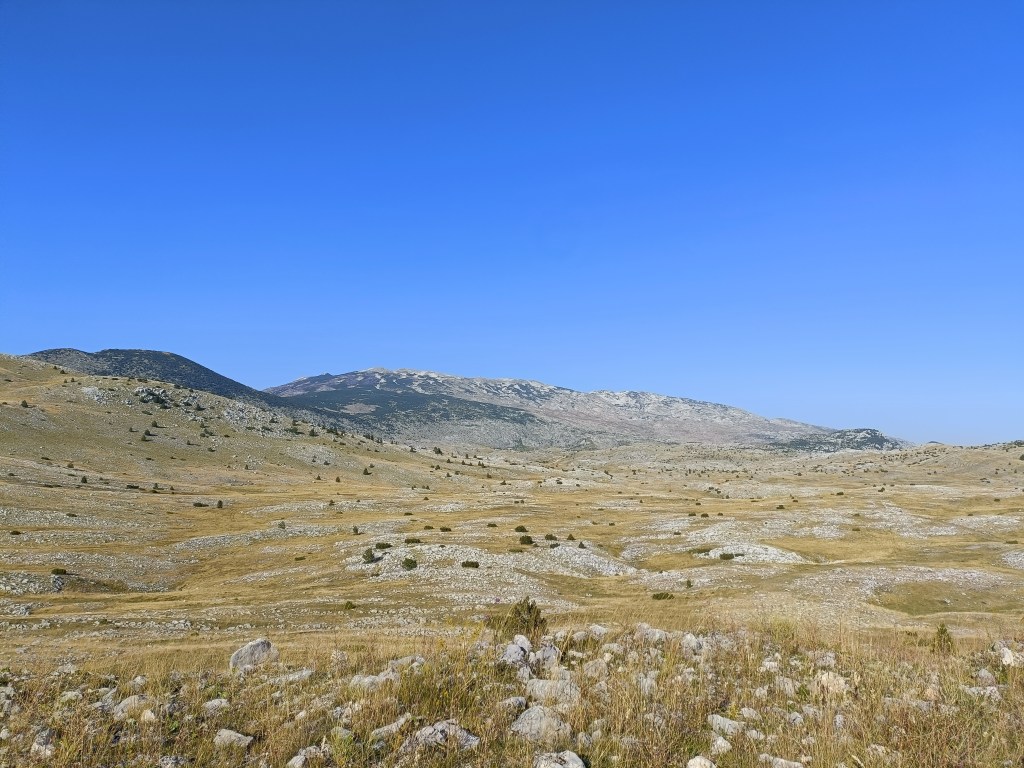 Une nouvelle journée en Bosnie, pointée lors de la préparation comme une des trois potentiellement plus belles et plus difficiles techniquement de l’ensemble du parcours. Toujours en suivant les traces du Trans European Trail, de Mostar à Sarajevo, quasi exclusivement hors route. Seulement 200km, mais j’anticipe que la journée ne sera peut-être pas suffisante. On quitte Mostar par le nord non sans avoir naviguer dans la vieille ville mais aussi ses quartiers plus modernes et dynamiques, pour rejoindre la ville de Konjic par des pistes en altitude où l’on aperçoit à nouveau une nécropole tout aussi impressionnante que celle de la veille. De cette ville, on longe un instant la rivière Neretva en débutant la longue ascension technique vers un magnifique « altiplano » qui se poursuivra jusqu’aux hauteurs de Sarajevo et sa piste de ski olympique (1984). La montée est épouvante, semée de passages techniques, mais surtout semée de vues impressionnantes, notamment sur les gorges de la rivière Rakitnice. On parvient au bout de cette ascension et un long roulage sur ce plateau au village de Lukomir, plus haut village de Bosnie (1500m). Une quinzaine de maisons qui surplombent les gorges, et où il me sera offert de manger un excellent ragout d’agneau dans un échoppe du village. Quelques touristes, car l’accès par l’est est plus facile que par l’ouest, mais très peu. Un vrai paradis.