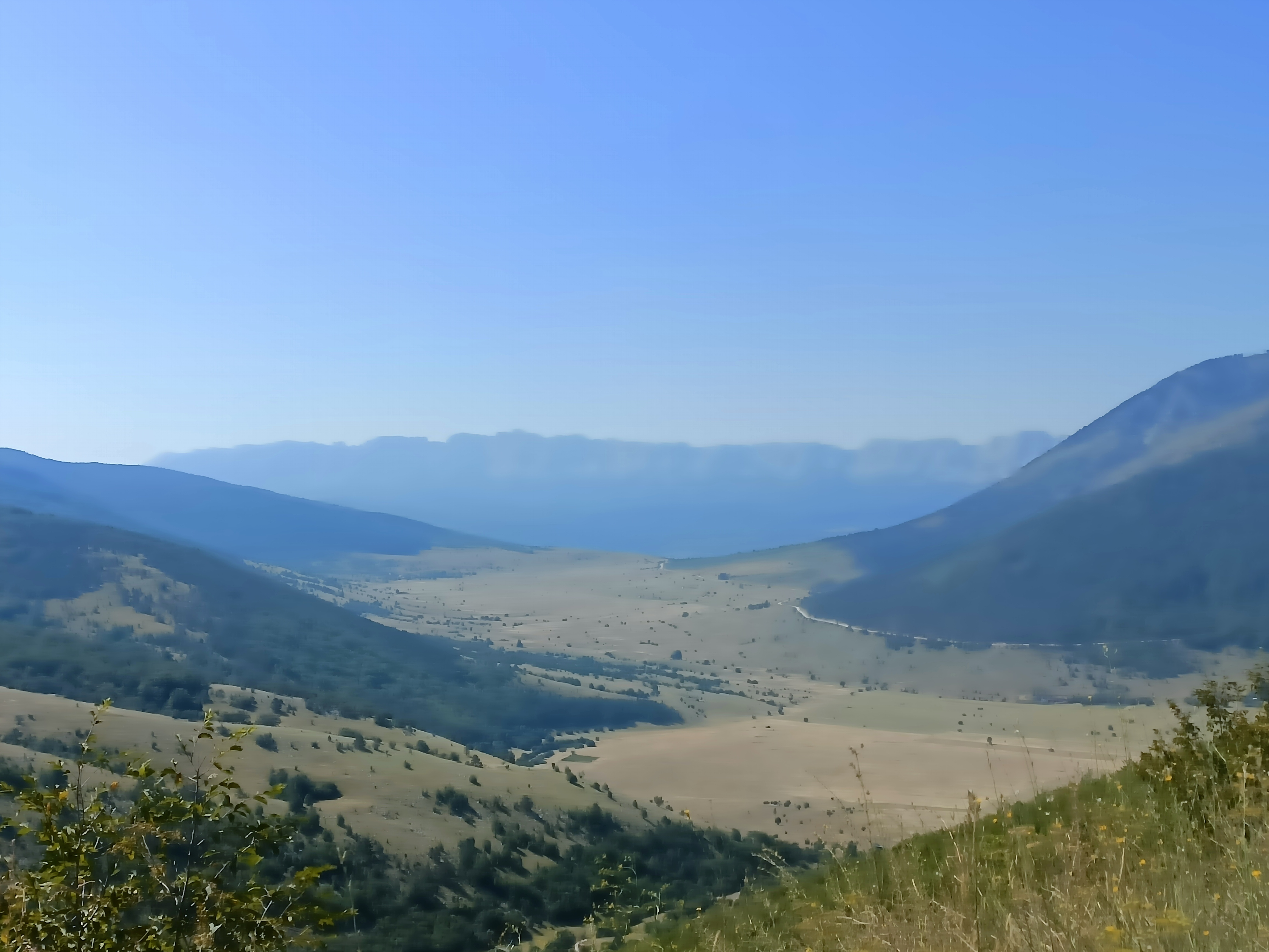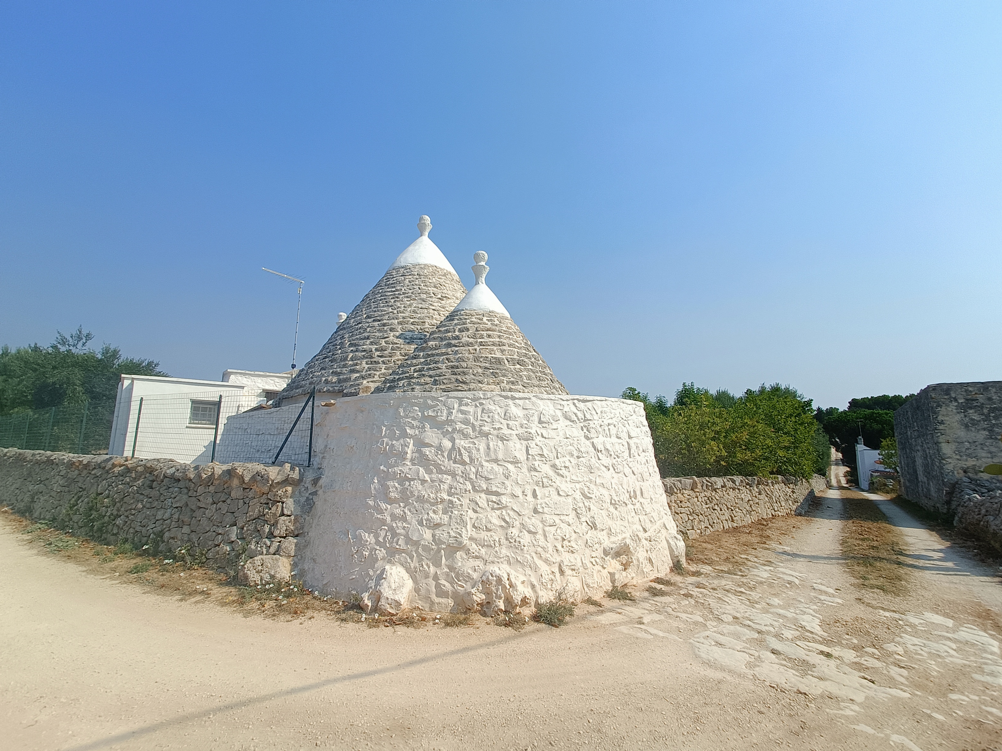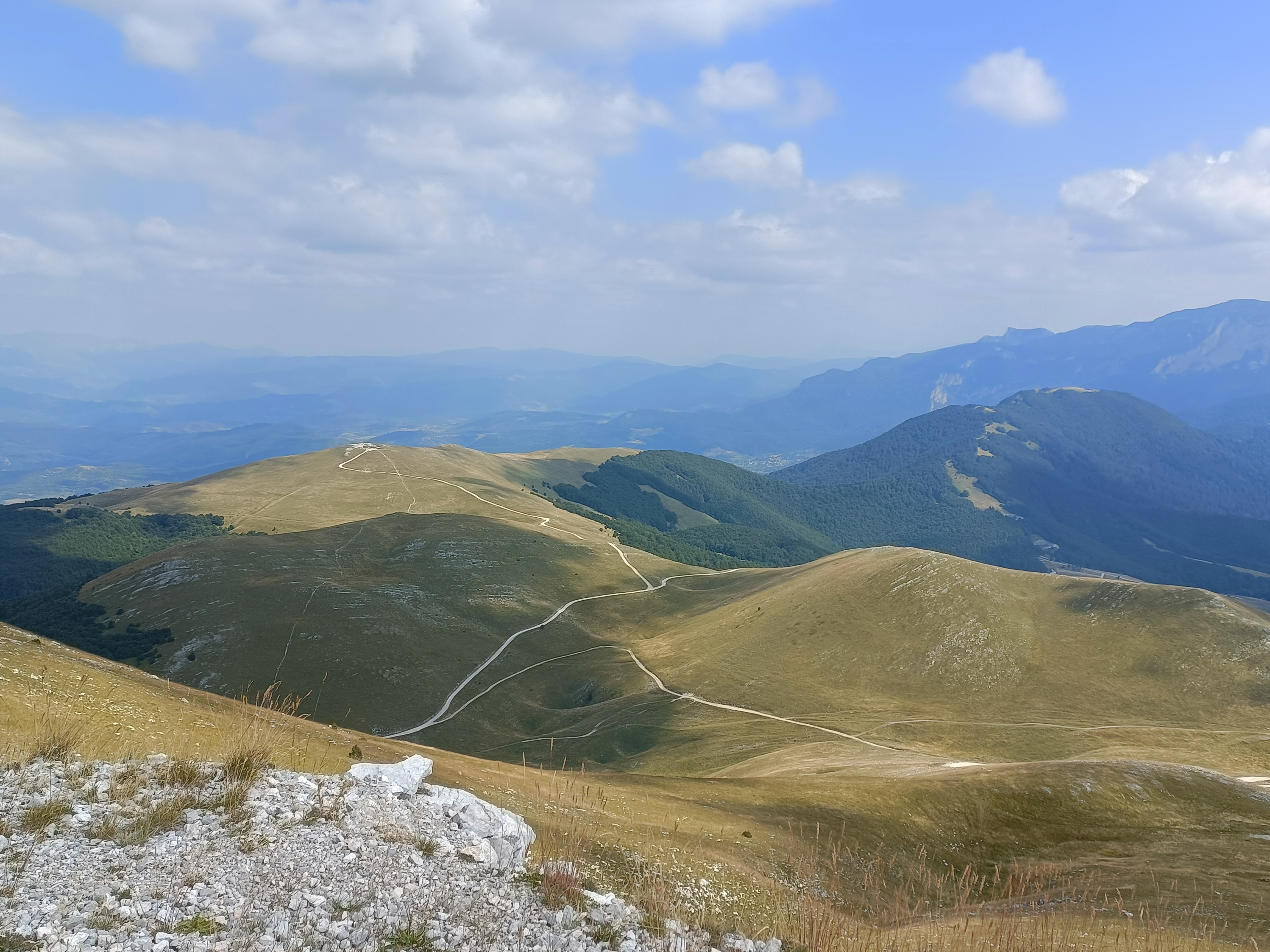 Crème sur la cheville et les hématomes, Dolipran, petit déjeuner très copieux et c’est reparti pour une longue journée de route afin de boucler ce tour de l’Adriatique. Je navigue par les petites routes des Pouilles entre Brindisi et Bari pour découvrir les « trulli », des huttes en pierres surmontée de toits pyramidaux, classées par l’Unesco. S’en suivent 250km d’autoroutes vers le nord pour rejoindre après une centaine de kilomètres de route de montagne le village de Castel Del Monte, dans les Abruzzes, et qui marque l’entrée du « Campo Imperatore », dans le massif des Appenins. On aperçoit encore les séquelles du terrible tremblement de terre qui a secoué toute la région de L’Aquila en 2009.