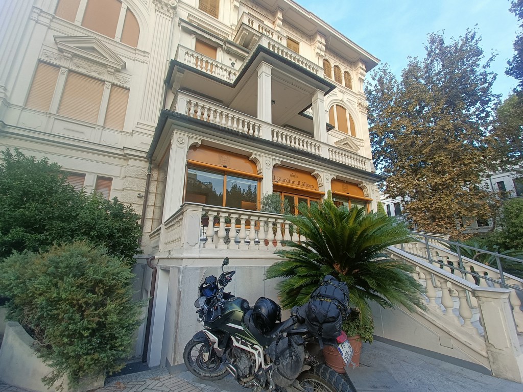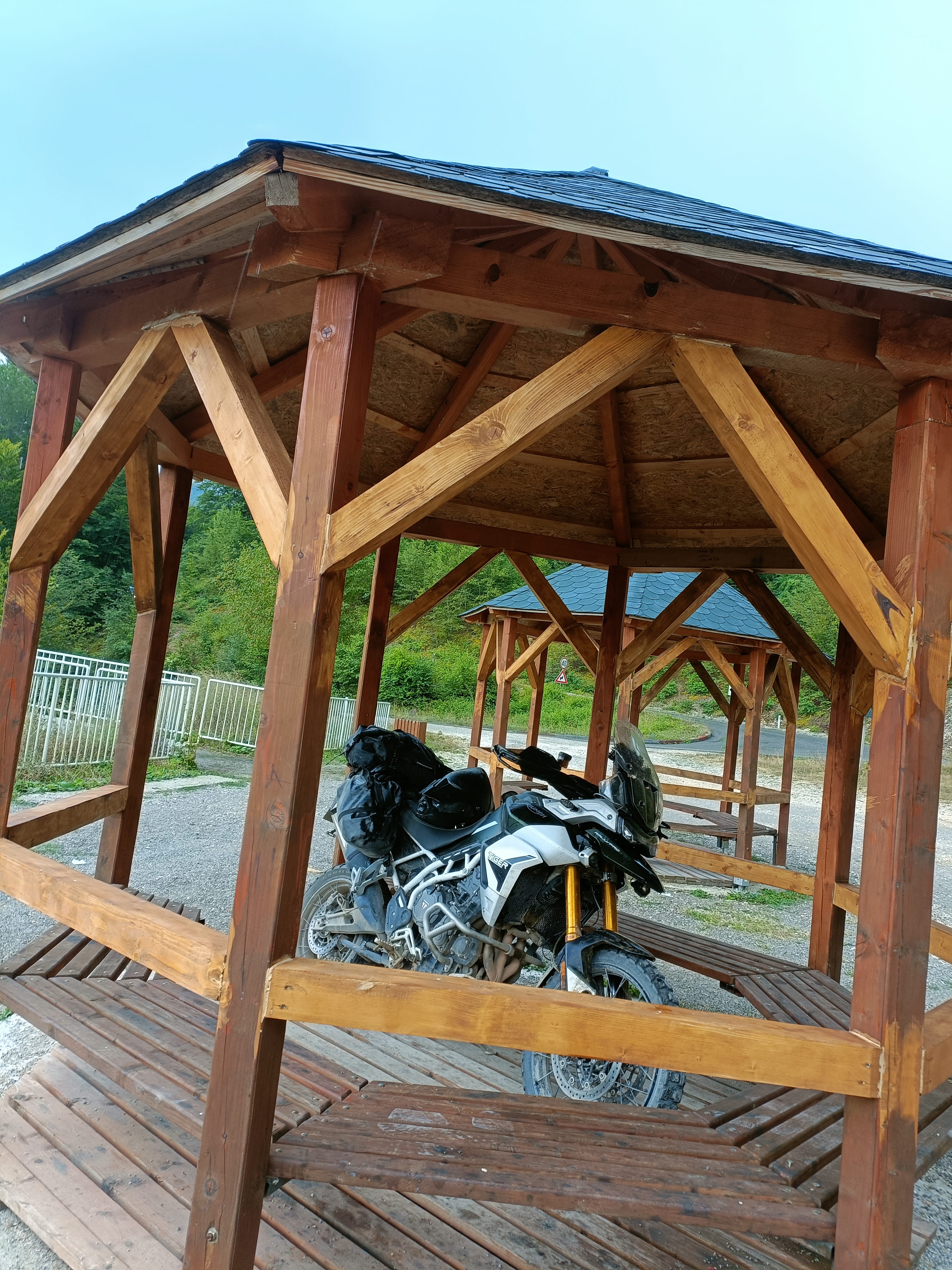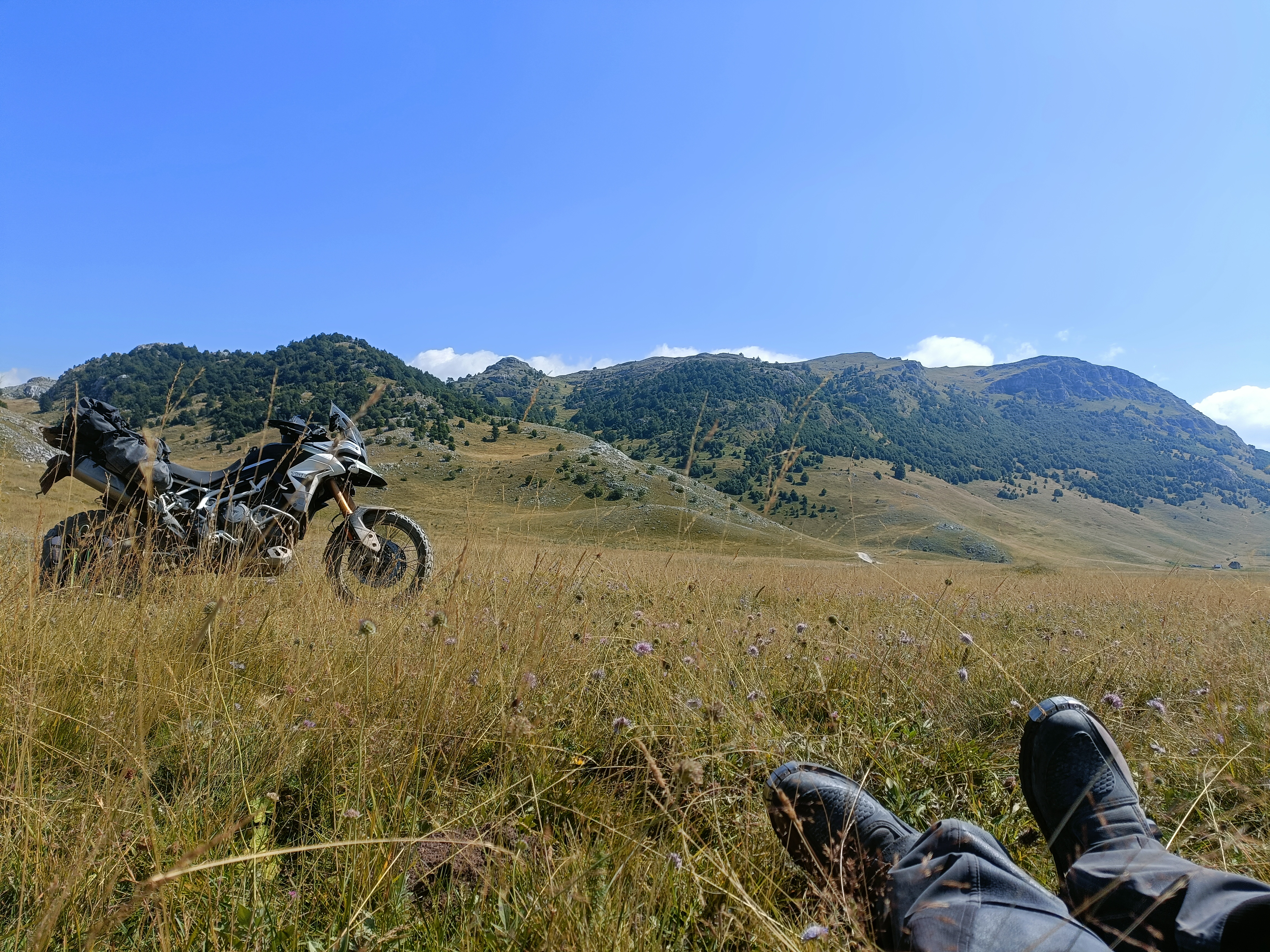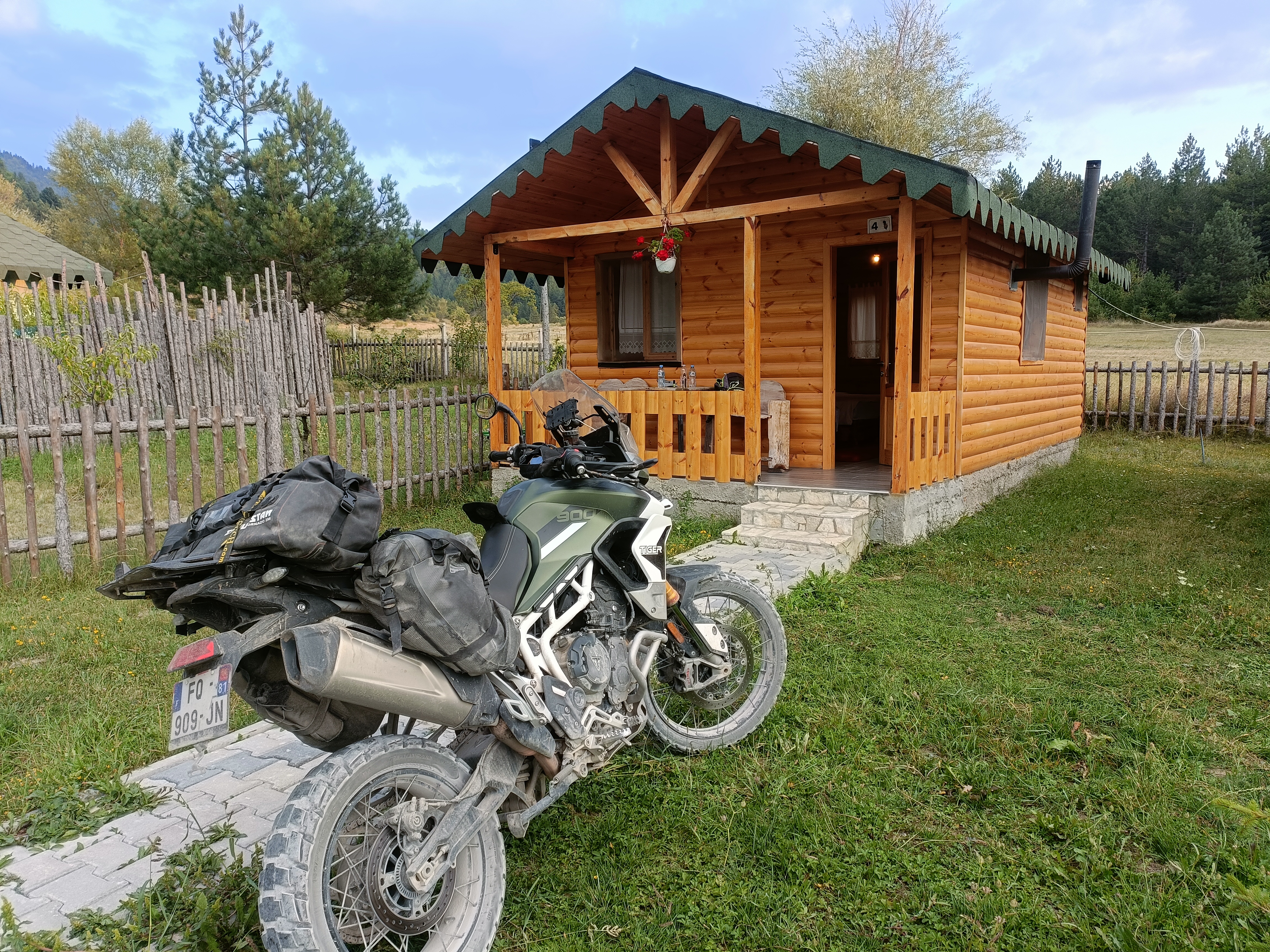 Le voyage a été effectué du 6 au 25 aout, sous le soleil, et des chaleurs excessives uniquement la troisième semaine en Albanie, Grèce et Italie. Deux après-midi d’orages m’ont obligé à sortir de la trace prévue au Monténégro. Il était trop dangereux seul avec un gros trail de s’y aventurer, j’ai donc modifié la trace par la route. Hébergement dans des hôtels/guesthouses modestes ou « glamping ». Jamais plus de 60 euros la nuit, et souvent moins de 35 dans les montagnes bosniaques, monténégrines et albanaises.