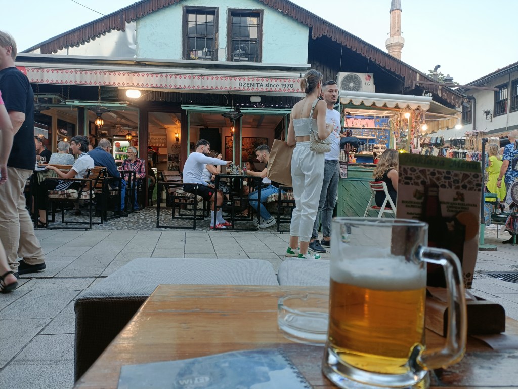 Je termine la journée dans le quartier historique de Sarajevo où je passerais la nuit dans une modeste guesthouse très authentique. Longue déambulation dans la vieille ville avec ses beaux minarets. Longue déambulation aussi pour satisfaire mon envie de houblon local, car cela relève d’une chasse au trésor au cœur de Sarajevo. Je finirais la soirée dans un petit restaurant d’artistes locaux, et aurais le privilège de diner aux côtés d’un artiste franco-bosniaque, Strasni, photographe, dont j’apprendrais beaucoup de la ville.