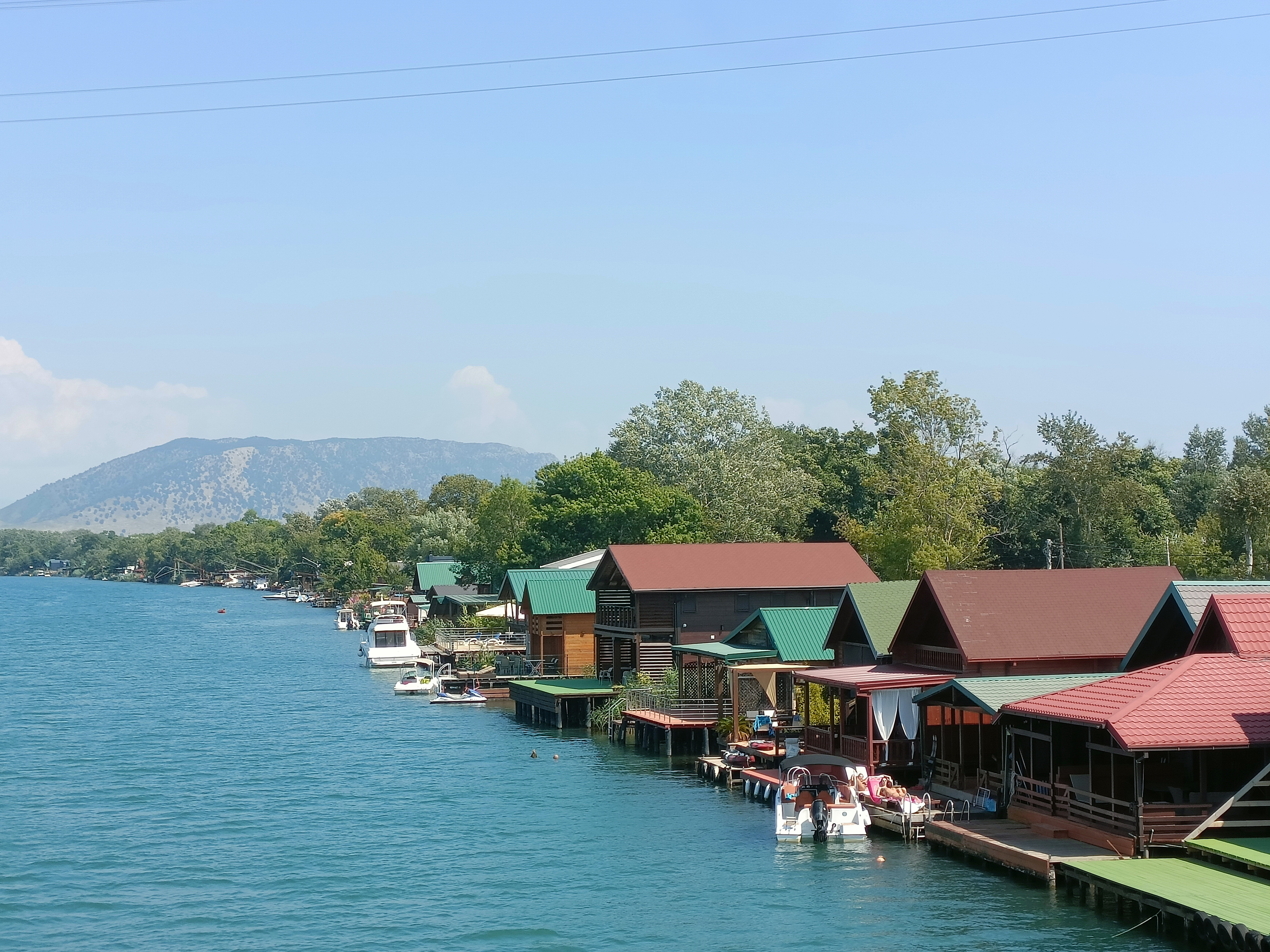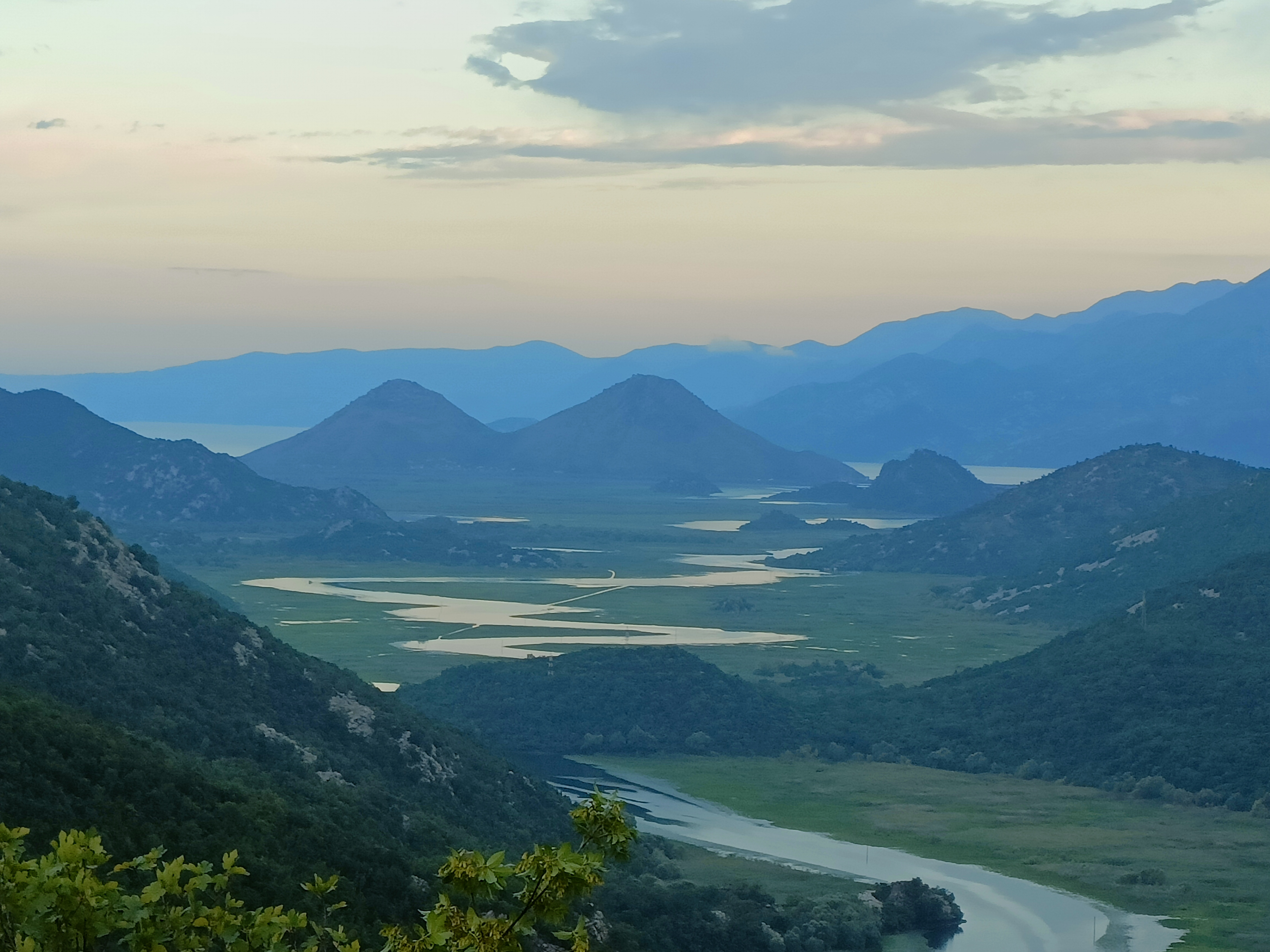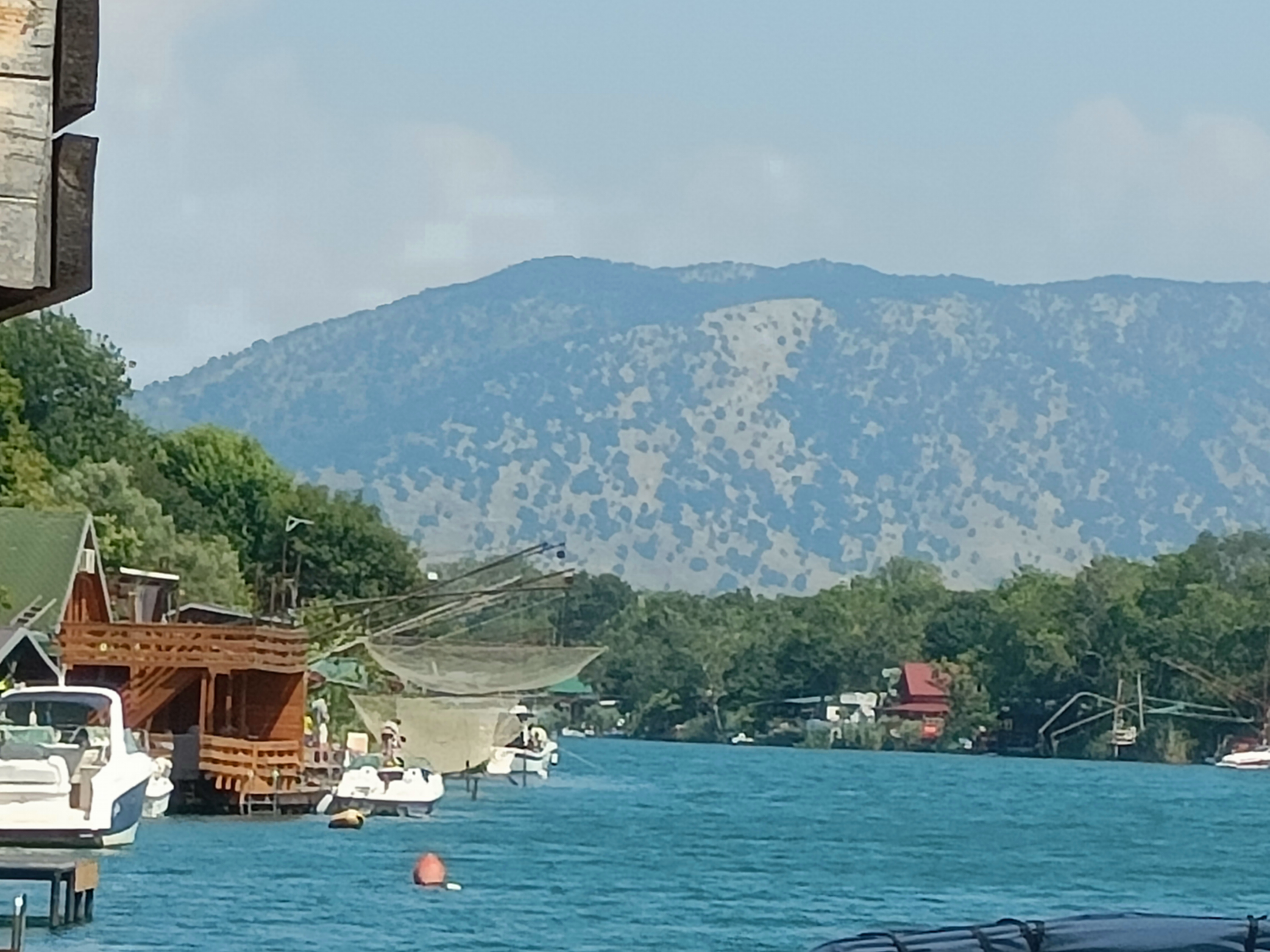 Une longue journée de 350 km de routes dans le le Sud du Montenegro, sous forme de boucle puisque je ne dormirais que 30km plus au sud que la vielle, en Albanie. On commence parc le parc national du Lovcen, pour aller surplomber à 1300m les bouches de Kotor, un profond fjord où entre l’adriatique. Nous ne descendons pas dans le fjord par la célèvre route « Serpentine », car on s’est fixé l’objectif d’éviter les hordes de touristes. En revanche, on s’empresse de longer la belle côte jusqu’à la frontière albanaise, à cet endroit infranchissable, où la route s’arrête dans un un lieu totalement improbable qui vous fait un instant quitter le continent européen pour le Laos, dans le village de Ada Bojana. Là, la rivière Kupa serpente dans la plaine et vient se jeter dans l’adriatique. Tout au long, de belles maisons sur pilotis, des filets de pêches suspendus, peu de touristes, et quelques restaurants de poissons où l’on se pose au-dessus de l’eau pour déguster la pêche locale.