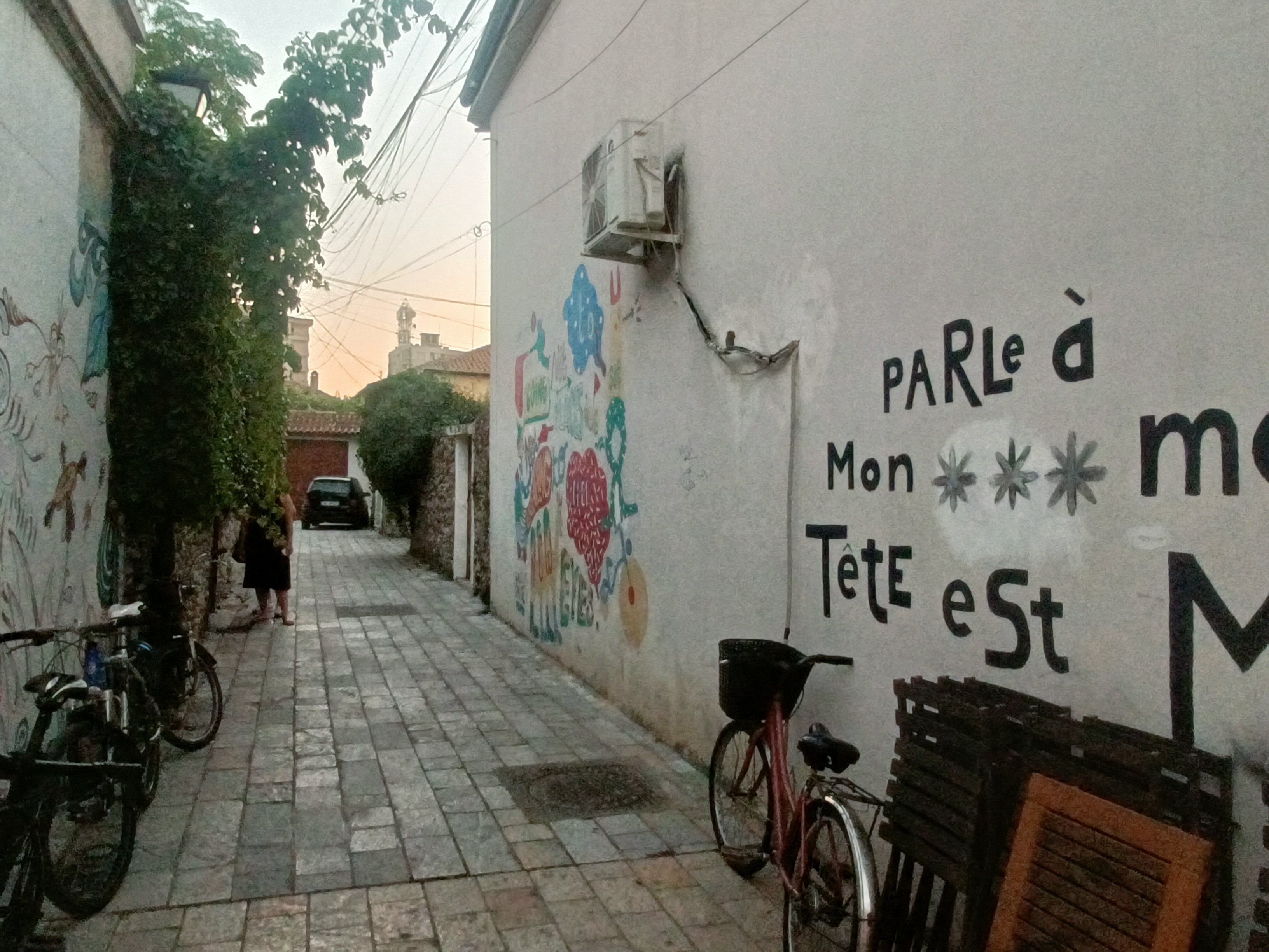 4h en tout pour relier Theth à Prekal, c’est à dire 3h de roulage un peu physique et 1h pour récupération et contemplation. J’avais anticipé beaucoup plus. Il n’est que 16h, j’ai donc du temps pour flâner avant de rejoindre la ville de Shkodër, au bord du lac de Skadar une fois encore, seulement 20km plus au sud que l’étape de la veille, mais je ne me lasse pas de ce lac. La ville de Shkodër vaut vraiment le détour, très animée le soir, ses ruelles dégagent une réelle atmosphère, et sont parsemées de petits bars dont tables et chaises envahissent les rues à partir de 20h.