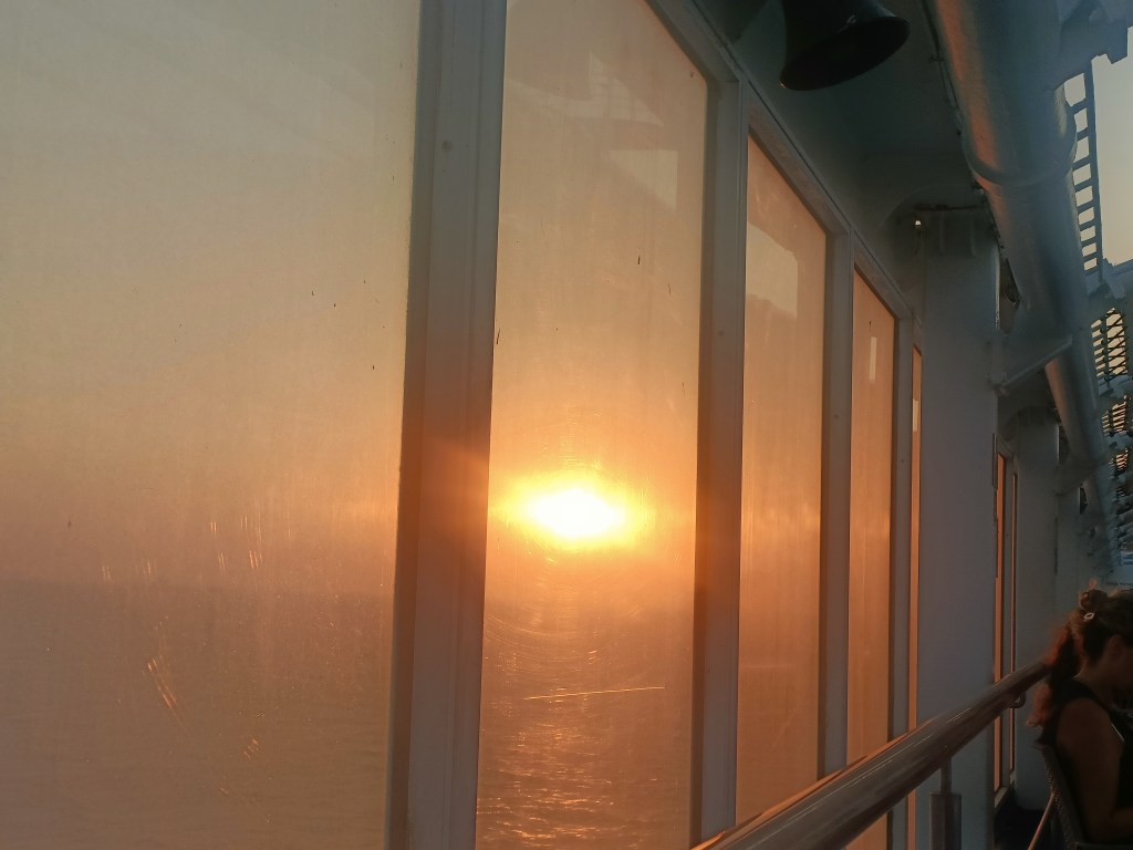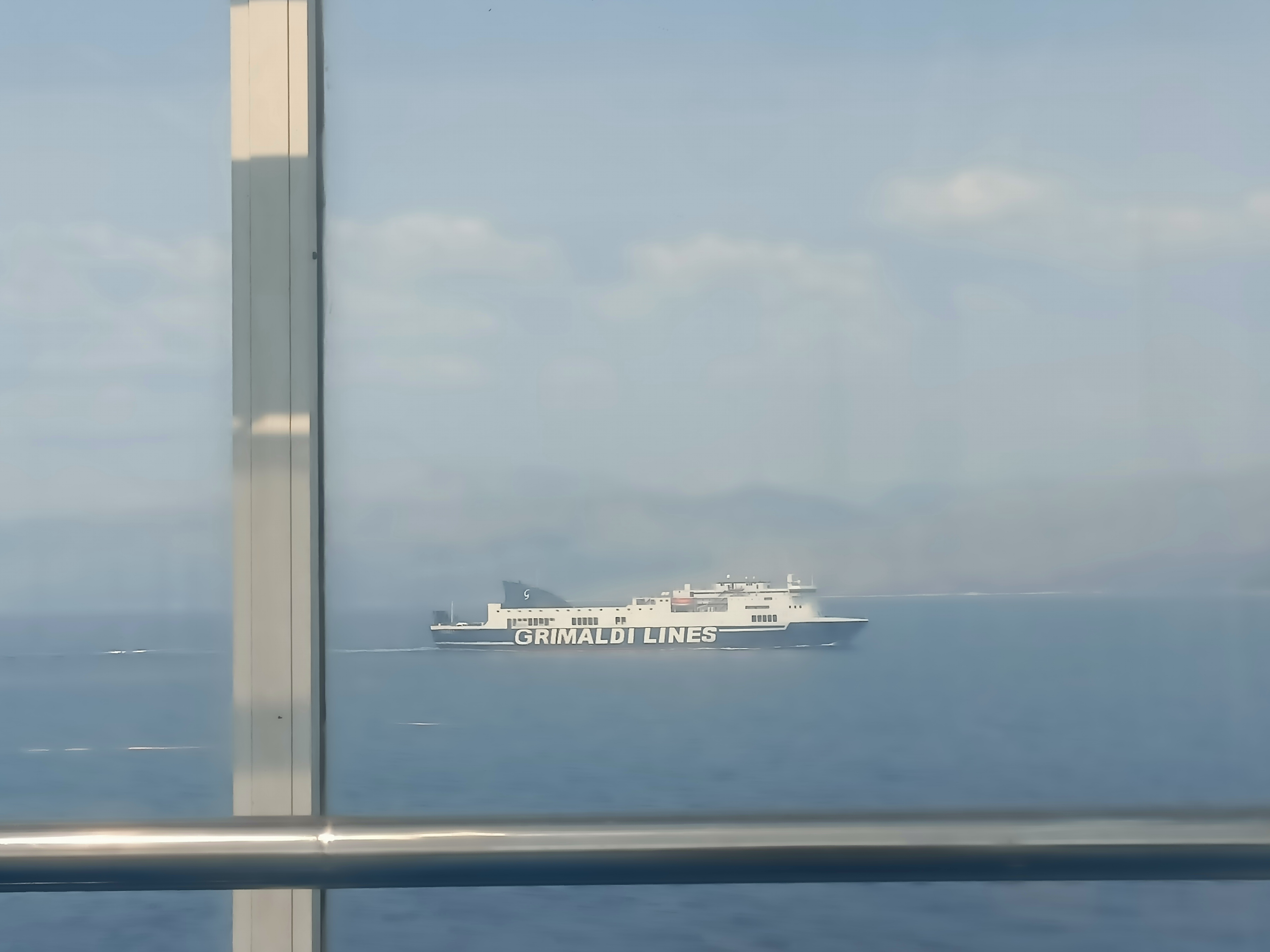 8 heures de traversée de jour, dans le solarium du ferry, jusqu’à Brindisi, dans les Pouilles. Il n’y a pas d’ascenseur dans ce type de ferry, la montée et la descente de la cale au solarium (6 étages) auront été des moments difficiles pour ma cheville, le reste fut plutôt agréable : lecture, sieste, lecture, bière… slow life.