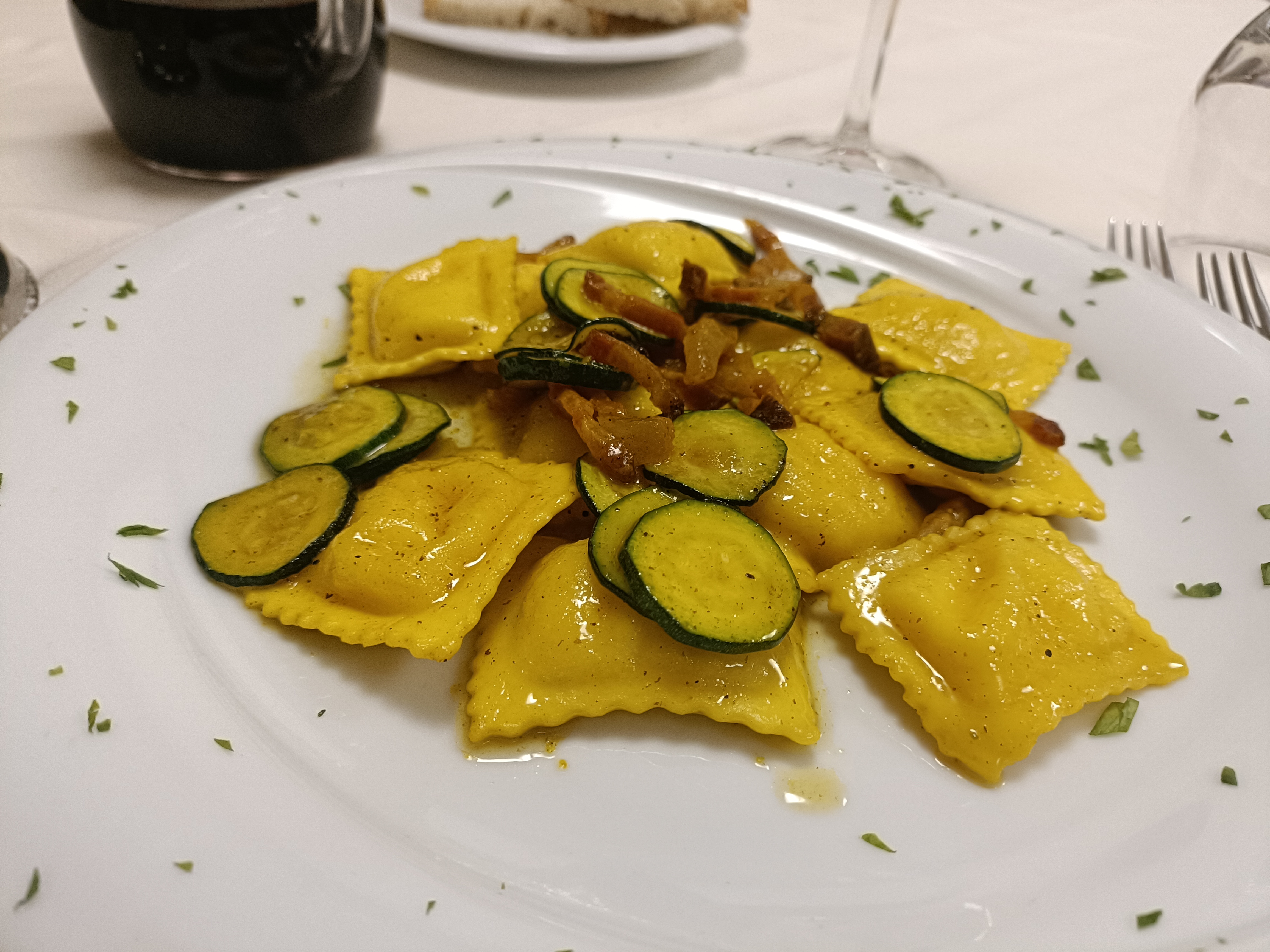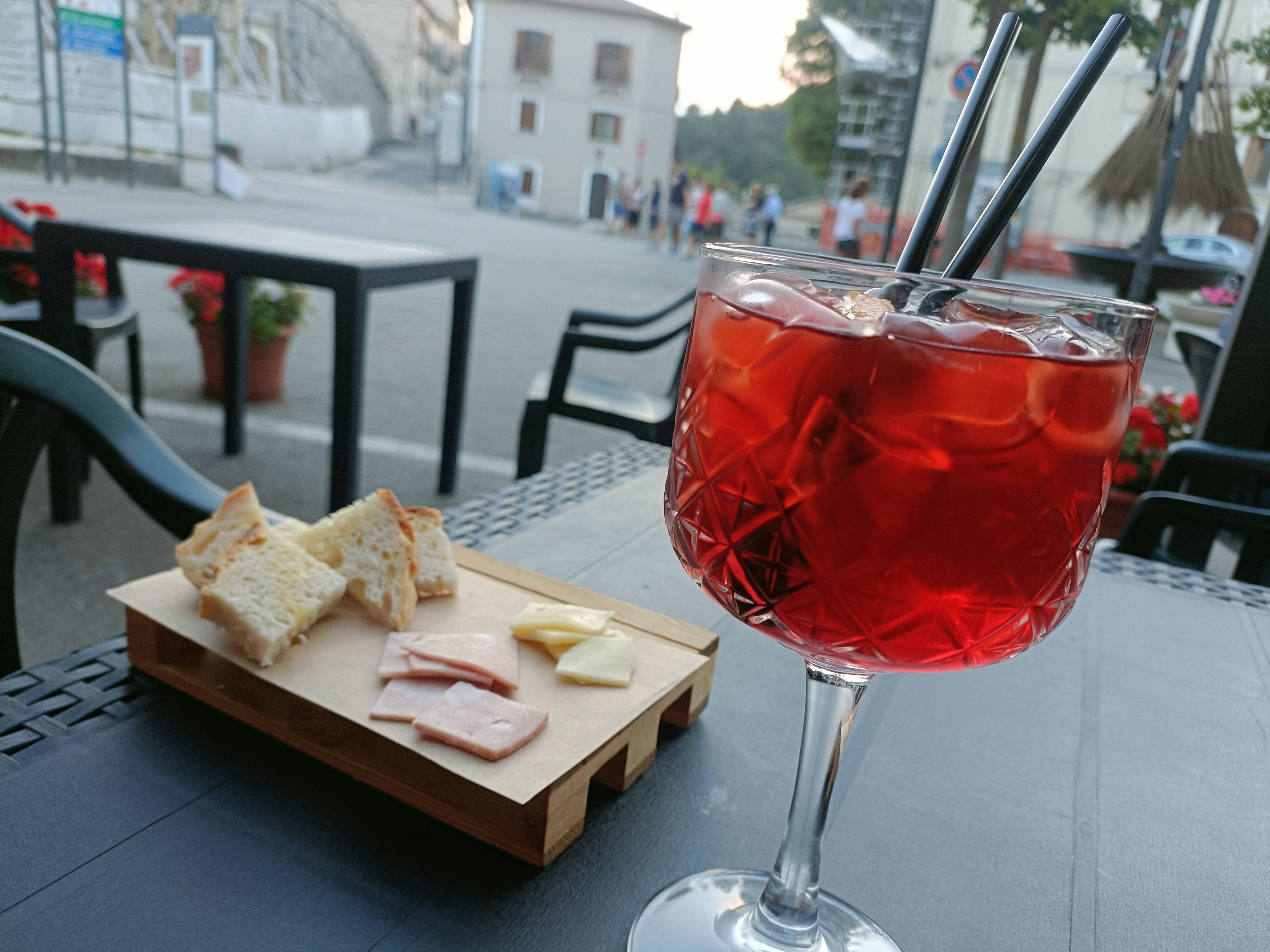 Petit hôtel sur la place centrale du village, houblons locaux, ravioli et agneau du campo.