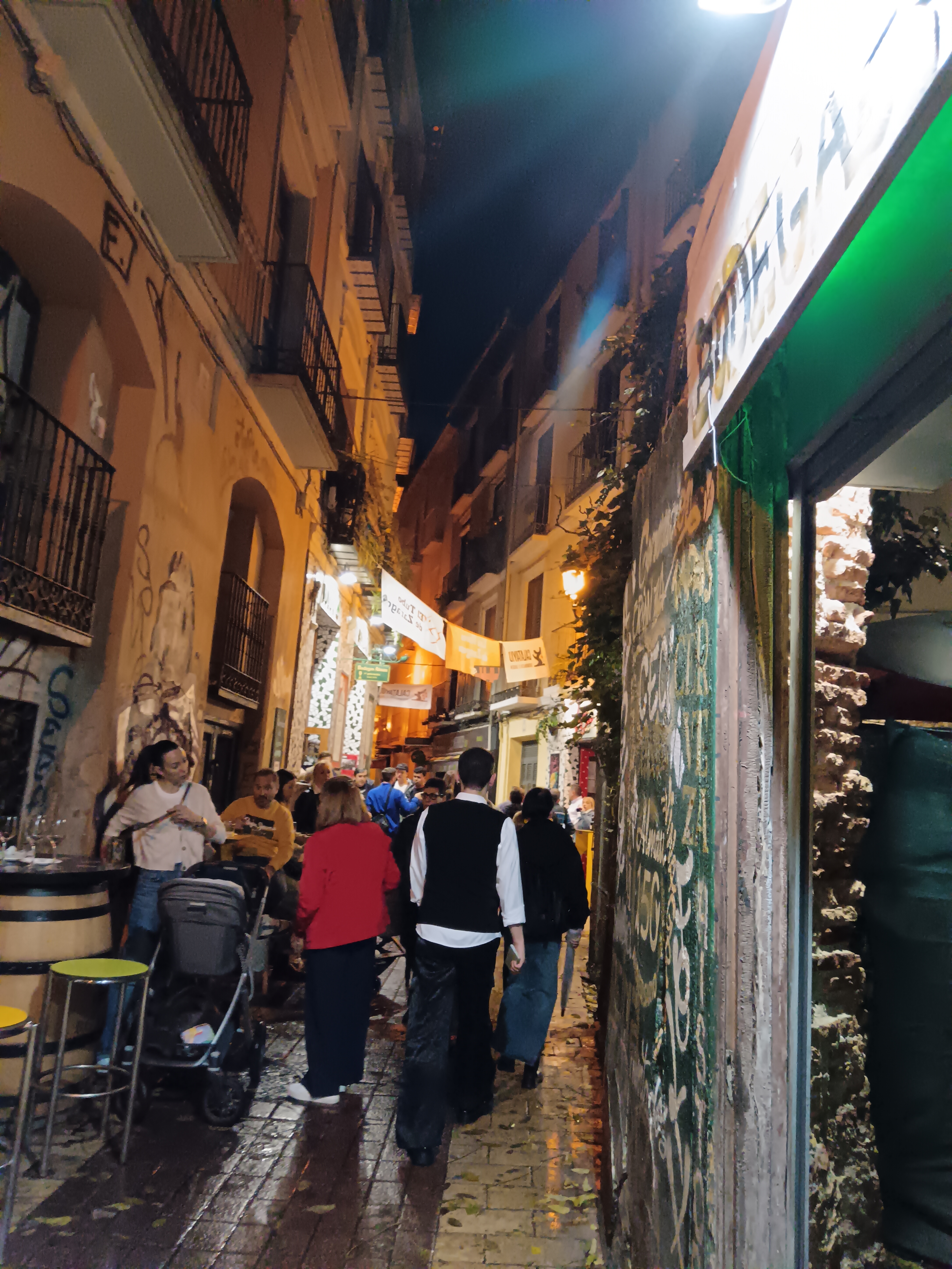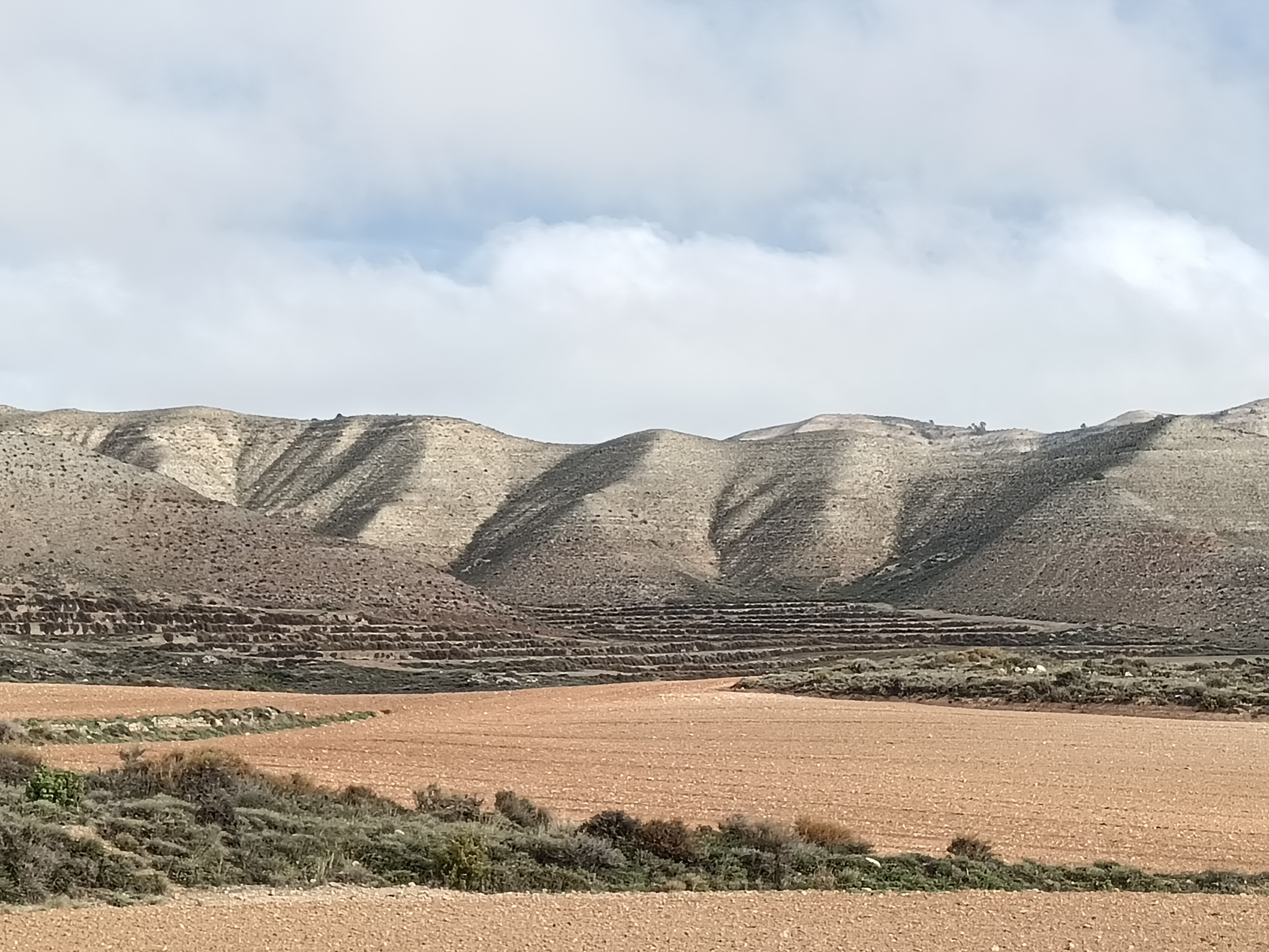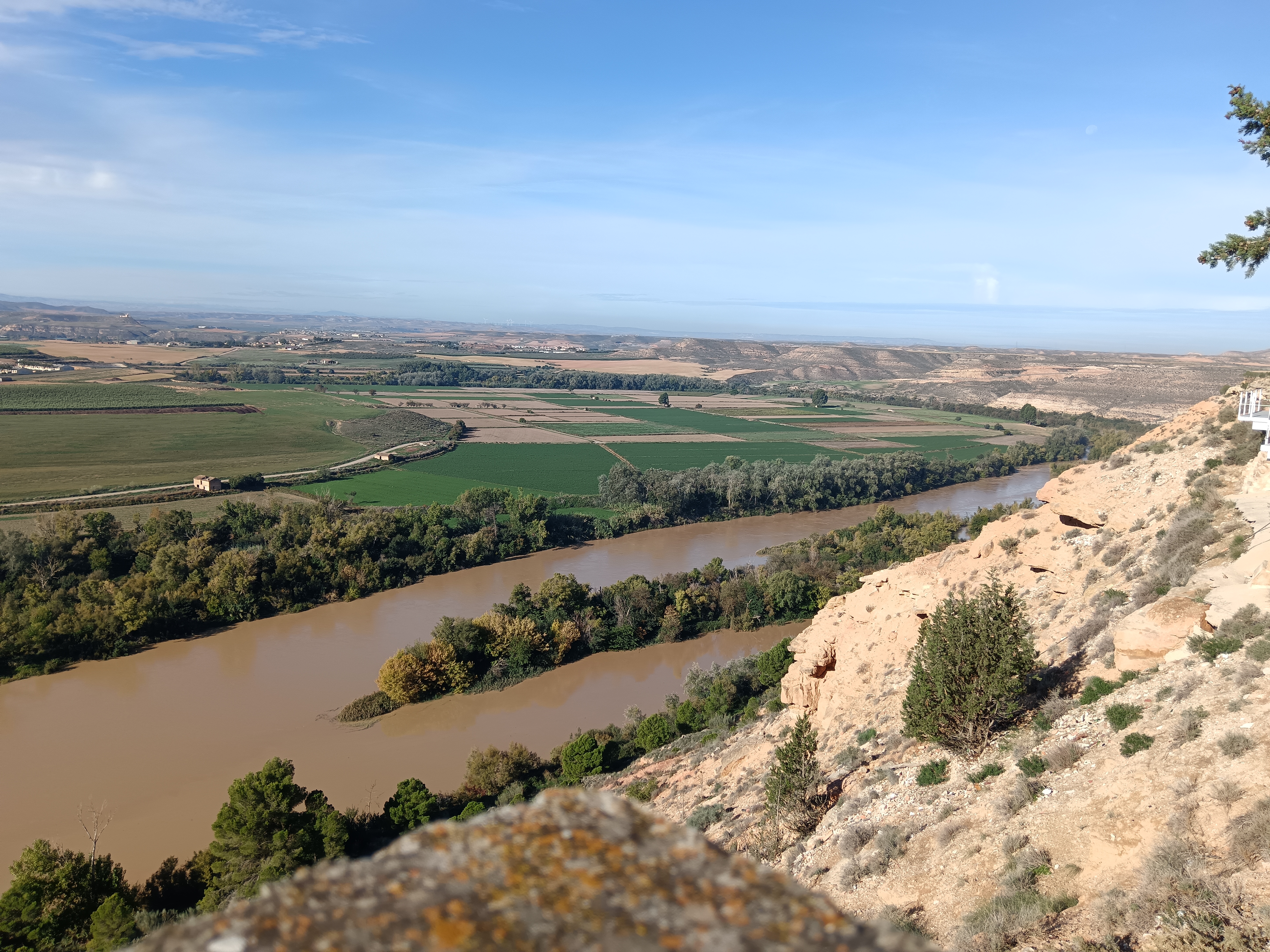 La descente vers Cuenca se fera en deux jours, avec une nuit d’hôtel au centre de Saragosse. Premier jours, temps maussade tout au long du parcours. On rejoint Vielha et son tunnel pour atteindre l’Espagne, avec de très belles couleurs d’automne une fois sorti du tunnel, et jusqu’à la fin de la descente du col de Bonansa. On longe la rivière Isabena jusqu’à Graus, parsemée de jolis vieux ponts romans. Puis c’est la rivière Esera qu’on longe jusqu’à ce que la route plonge dans un beau canyon qui se termine dans la vallée de Basbastro. On rejoint ensuite le désert des Monegros, que l’on serpente par des pistes avec quelques pauses photo au pieds des « Tozales ». Une fois passé Castejon de Monegros, très, très, mais vraiment très gros orage. Rien pour s’abriter. La petite route sur laquelle je roule commence à être inondée à plusieurs endroits, avec un courant latéral. Pas d’autres choix que de s’arrêter sur un monticule, et attendre que ça passe … pendant une heure trente. Du coup, la cinquantaine de kilomètres qui restait à parcourir dans les pistes du sud du désert, à travers ces belles collines/dunes de couleurs grisâtres qui se terminent au bord de l’Ebre, sera remplacée par une route, jusqu’à Saragosse. J’arrive à l’hôtel les os spongieux (hôtel Sauce, près cathédrale, pas cher, je recommande). Tout mon matériel est préservé, sauf mon PC (qui ne voudra redémarrer que 36h plus tard) et ma cigarette électronique, décédée. Soirée à déambuler dans Saragosse, son marché, ouvert tard, sa cathédrale, et le quartier du « Tubo » avec ses rues hyper étroites où j’entrerais dans 4 ou 5 bars, juste pour un pincho et un petit verre de vin (6cl), histoire de tester chaque ambiance.
