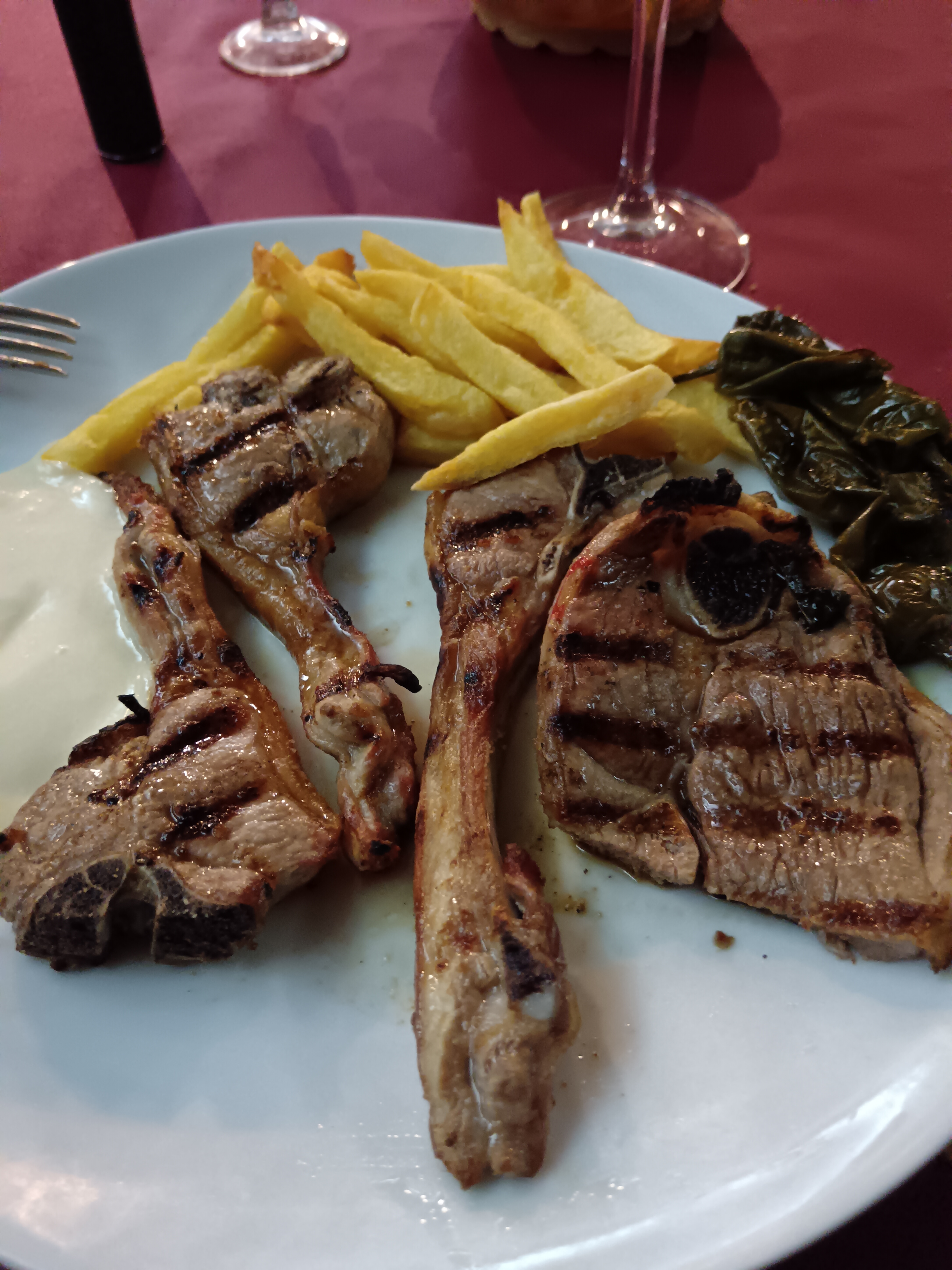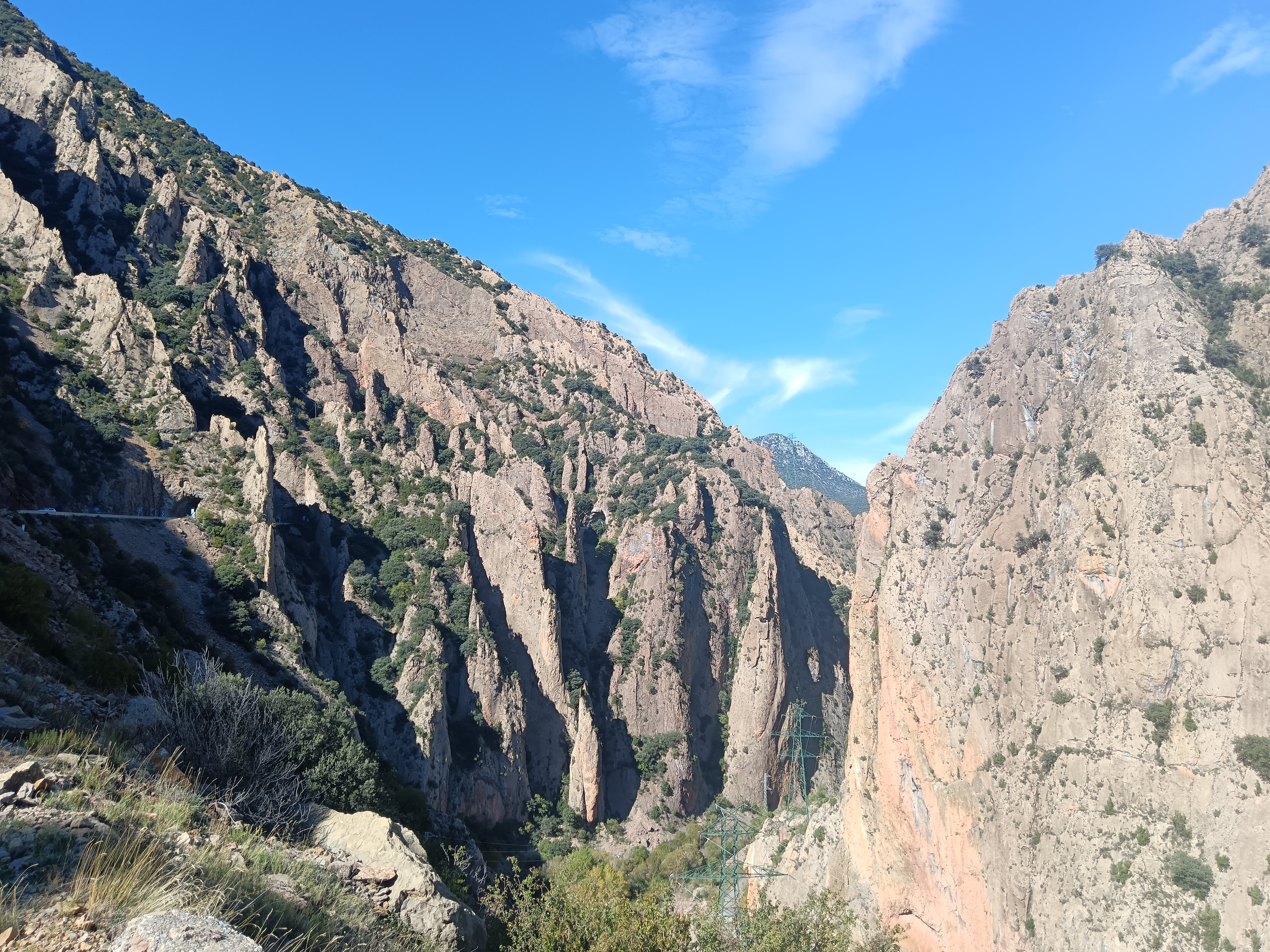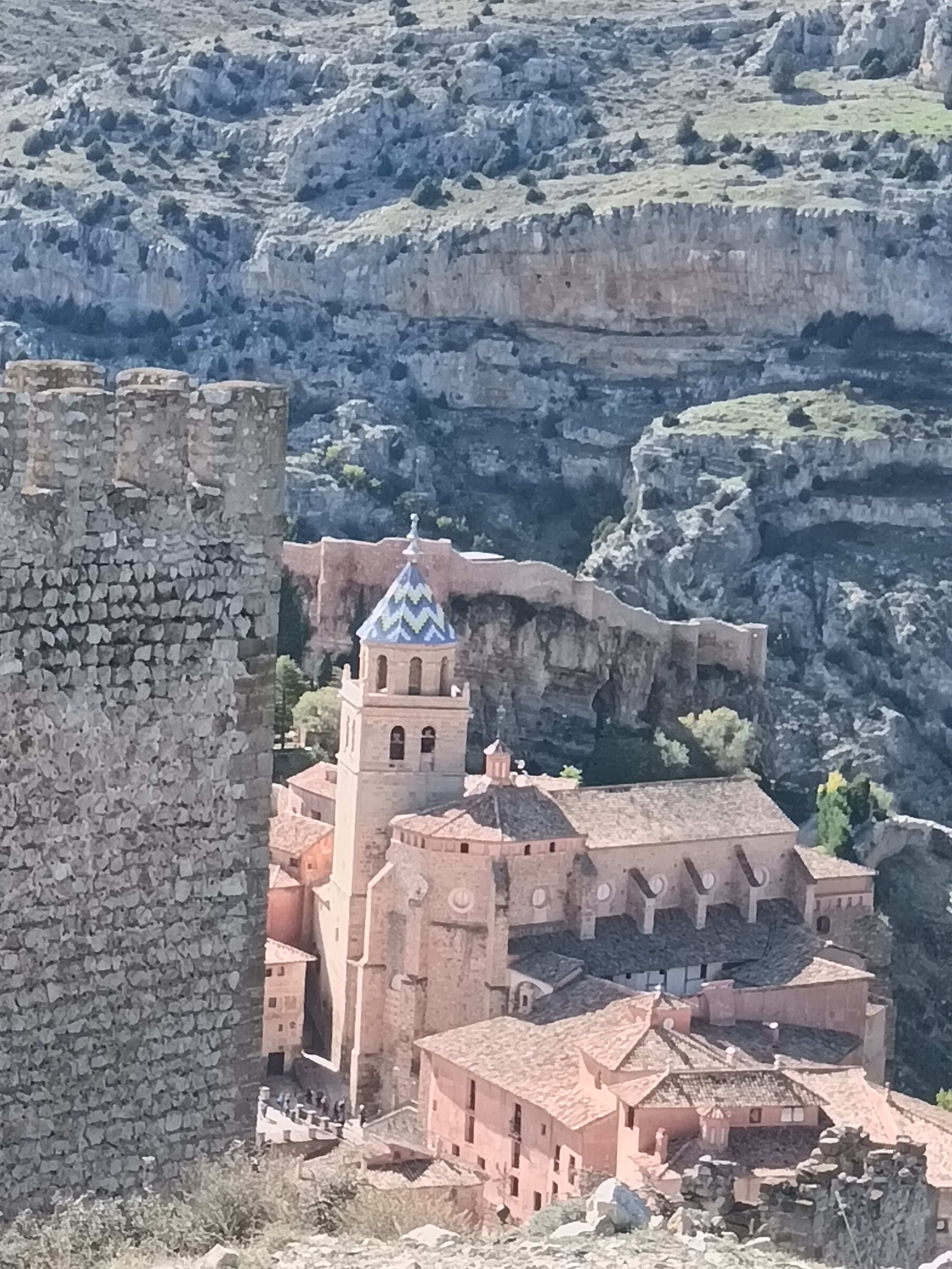 Samedi matin, conférence terminée, c’est le week-end. Je m’offre deux jours de voyage pour rentrer. Matéo annoncée très fraiche, mais ensoleillée. on entame plein est en montant sur les falaises qui surplombe Cuenca. S’en suivent trente kilomètres de pistes en crête, jusqu’à parvenir à un héliport perdu au milieu de nulle part, avec deux hélicos du gouvernement espagnol postés là. Mystère pour moi, à creuser. Je poursuis par des pistes de terre rouge, plusieurs petits cols, avant d’arrivée près de Teruel au village très touristique, et il est vrai très beau, d’Albaraccin, flanqué entre deux falaises ocres. Une centaine de kilomètres de plateaux arides (plus de stations essence, rien à bouffer, j’ai la dalle), et nous voilà dans le Maestrazgo, superbe chaine de montagne à la densité de population qui ferait pâlir la Laponie. Plusieurs pistes, dans des canyons très étroits, assez inaccessibles en voiture. Une centaine de kilomètres ainsi jusqu’au barrage de Castellote, puis une nuit dans la petite ville de Alcorisa et le très typique petit hôtel de Casa de la Fuente, dont le tenancier sera de très bon conseil pour ce qui est de mon alimentation du soir.