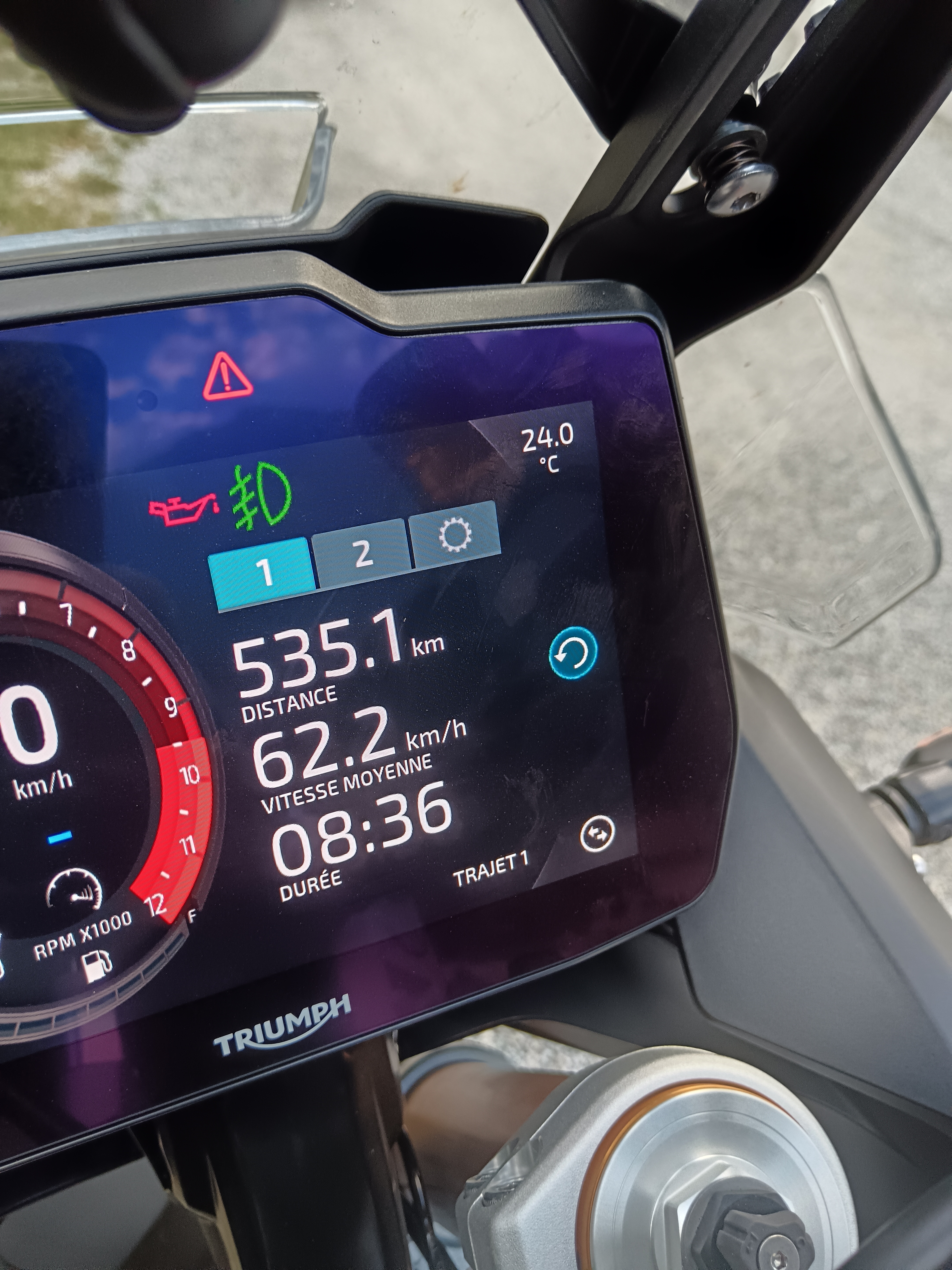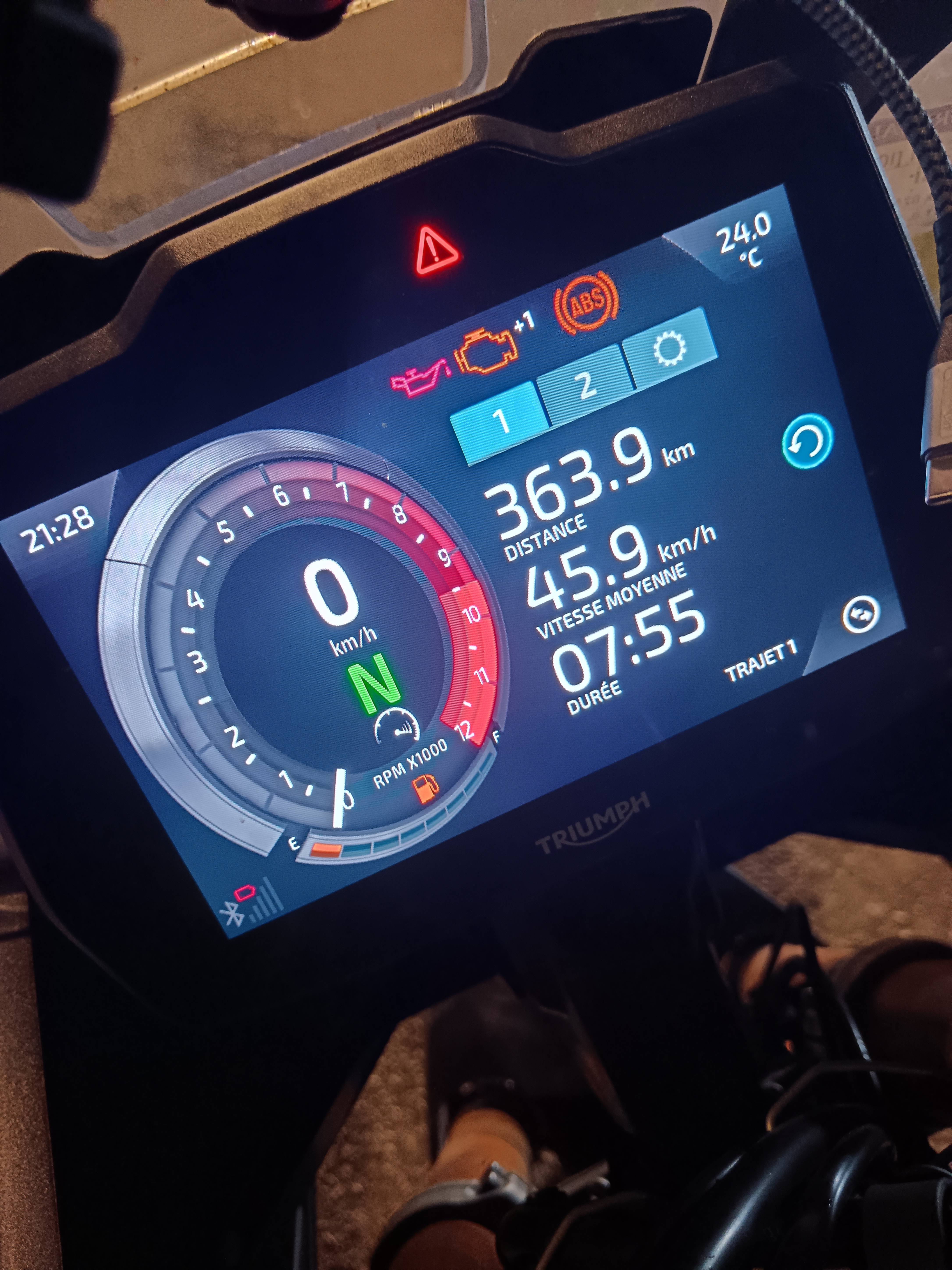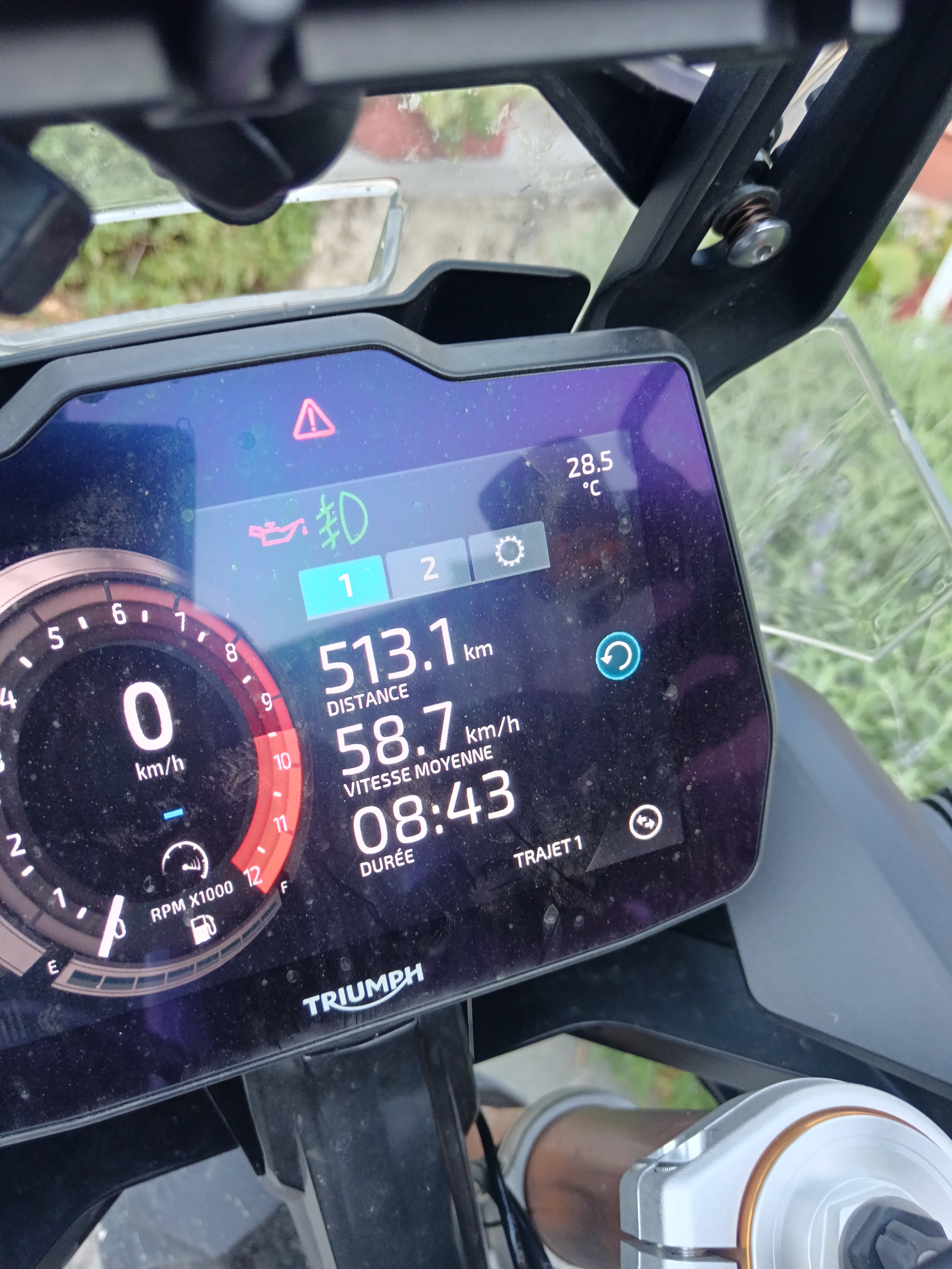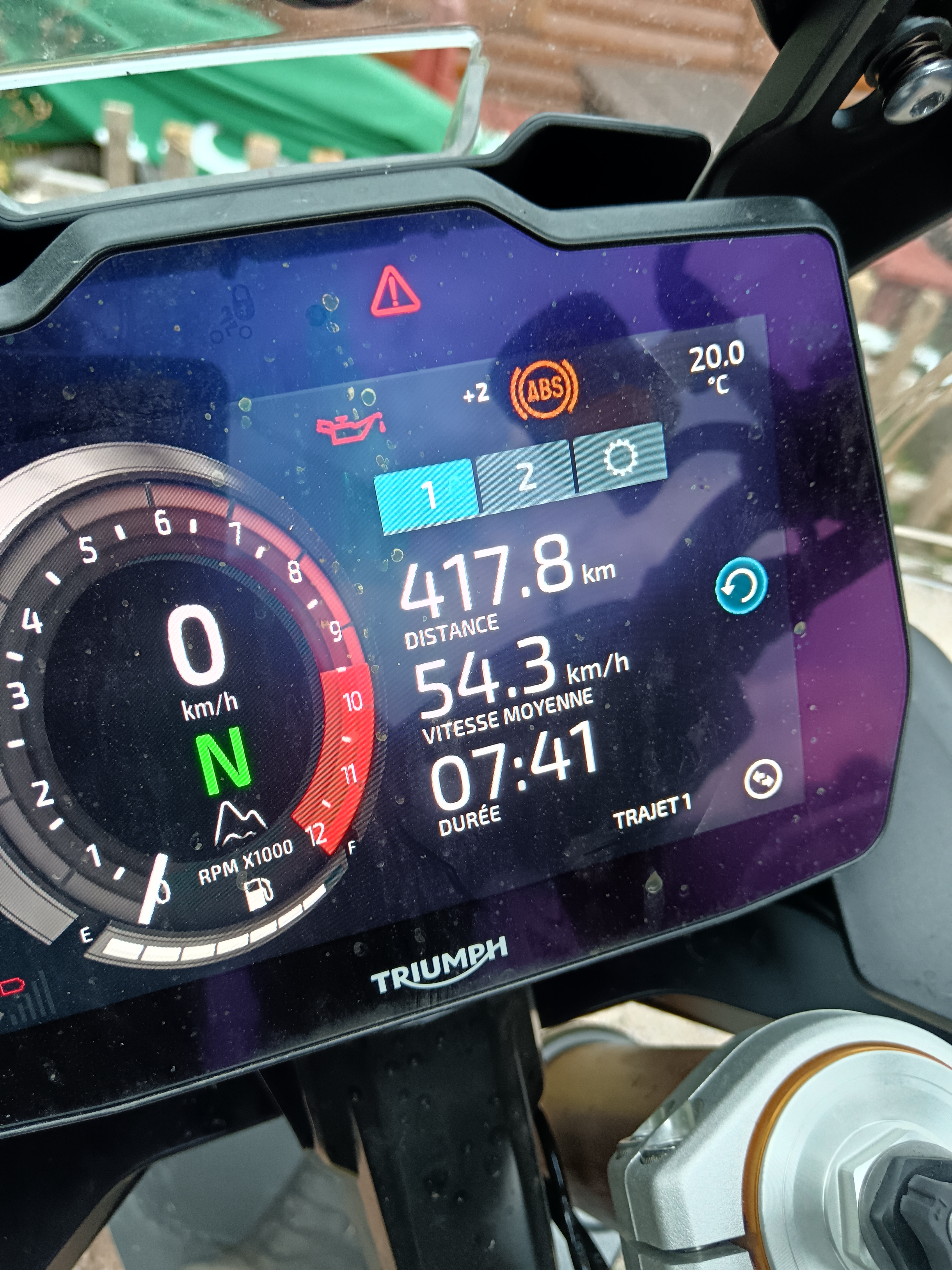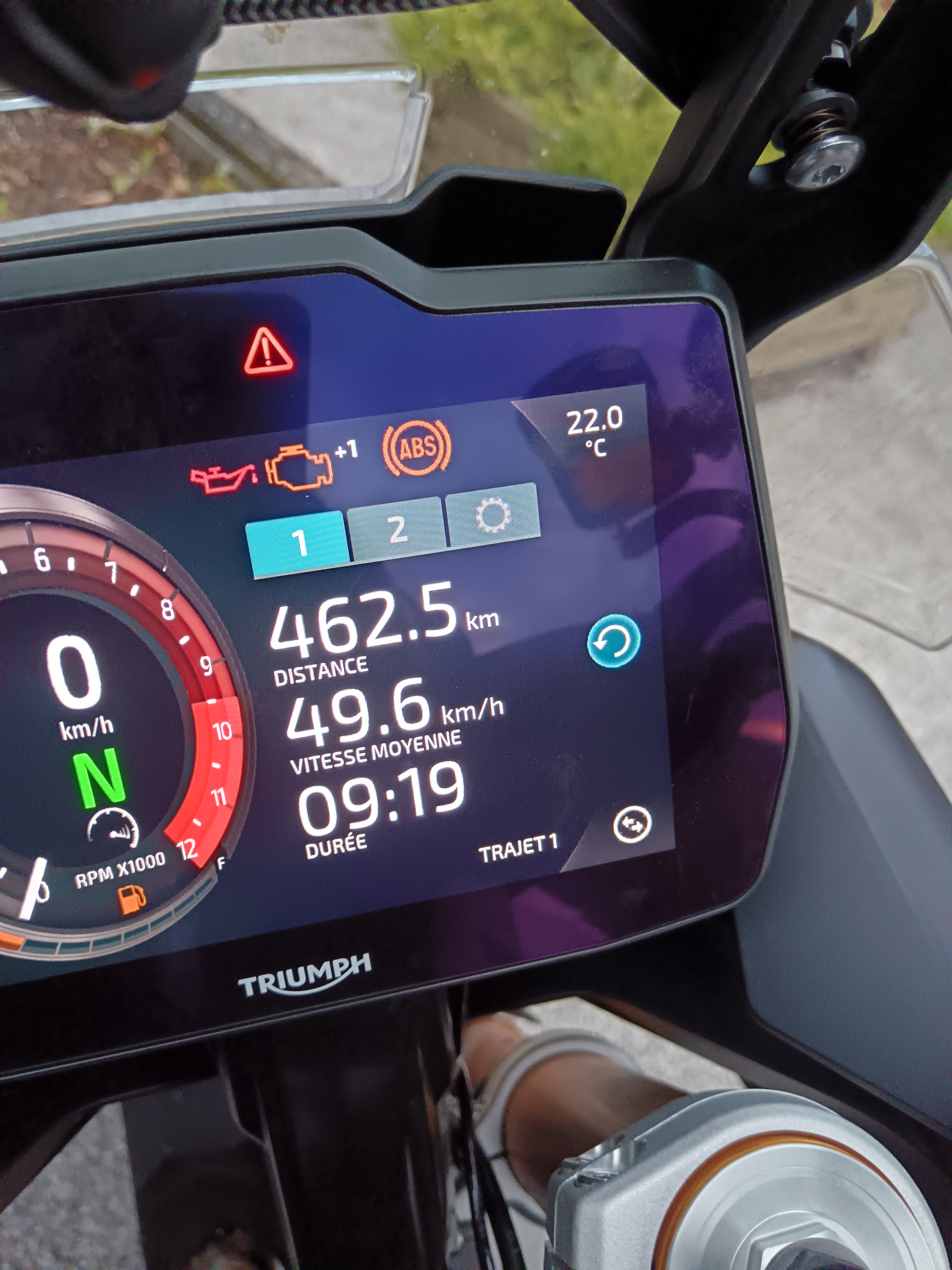La trace a été préparée deux mois durant pendant les soirées, sur MyMaps, puis transférée sur un vieux téléphone de chantier étanche via l’application Osmand, solidement arrimé derrière la bulle de la jeune Brexiteuse. Si bien que parler d’aventure aventureuse serait pur mensonge: il suffit de vérifier de temps en temps que le petit point bleu ne s’écarte pas de la trace rouge. Le reste du temps, il n’y a qu’à contempler sans s’inquiéter, la technologie nous amènera à bon port. D’autres vous diront qu’ils sont des aventuriers, alors même qu’ils importent des traces qu’ils n’ont pas même réalisées. Ceux-là même en général qui fixent un piquet de tomates à leur guidon, affublé d’une (quand c’est pas deux) caméras pour montrer à des inconnus sur YouTube comment ils penchent dans les virages. Aucun artifice de ce type de ma part. Juste rouler, contempler, rouler, contempler.