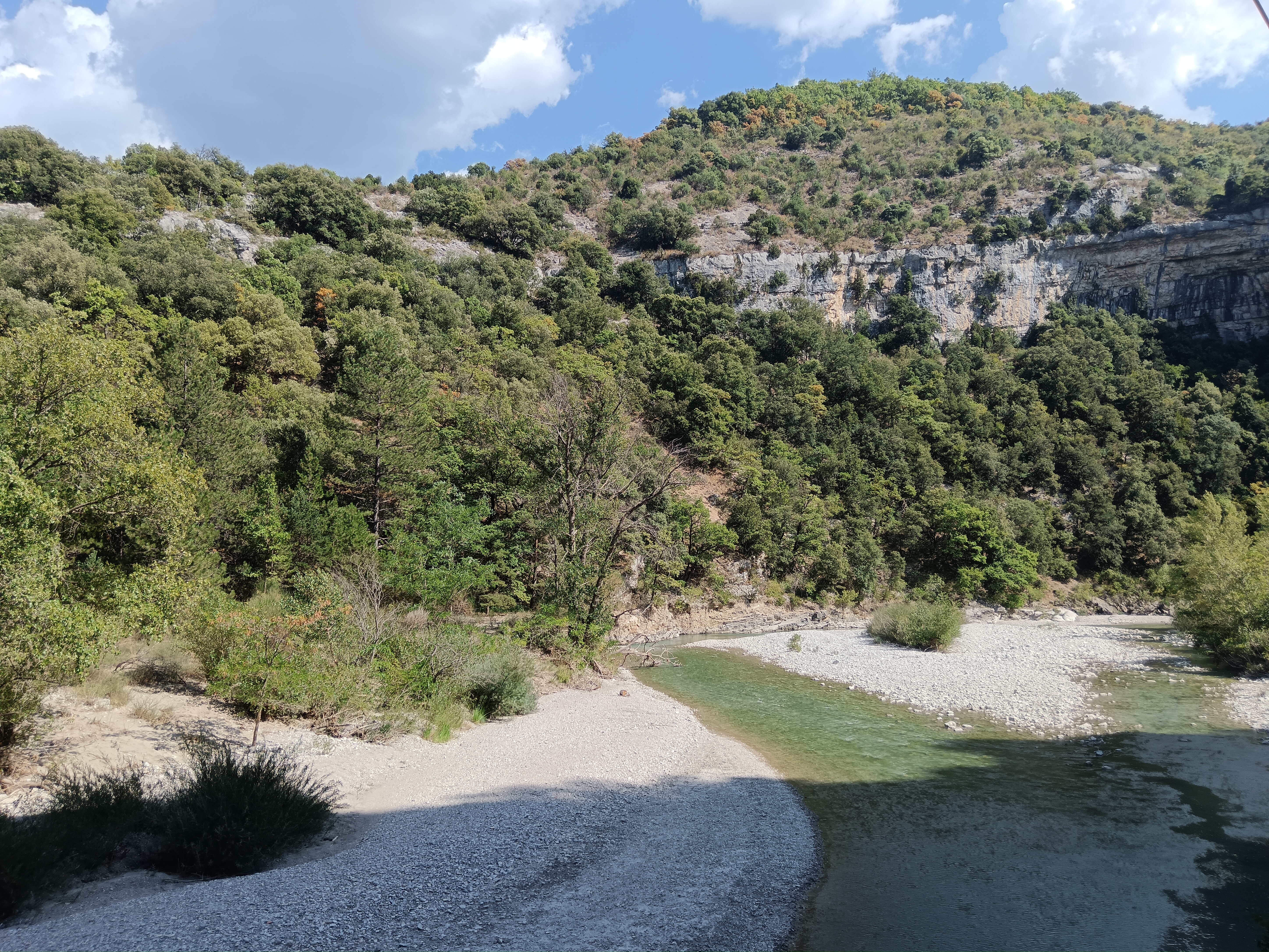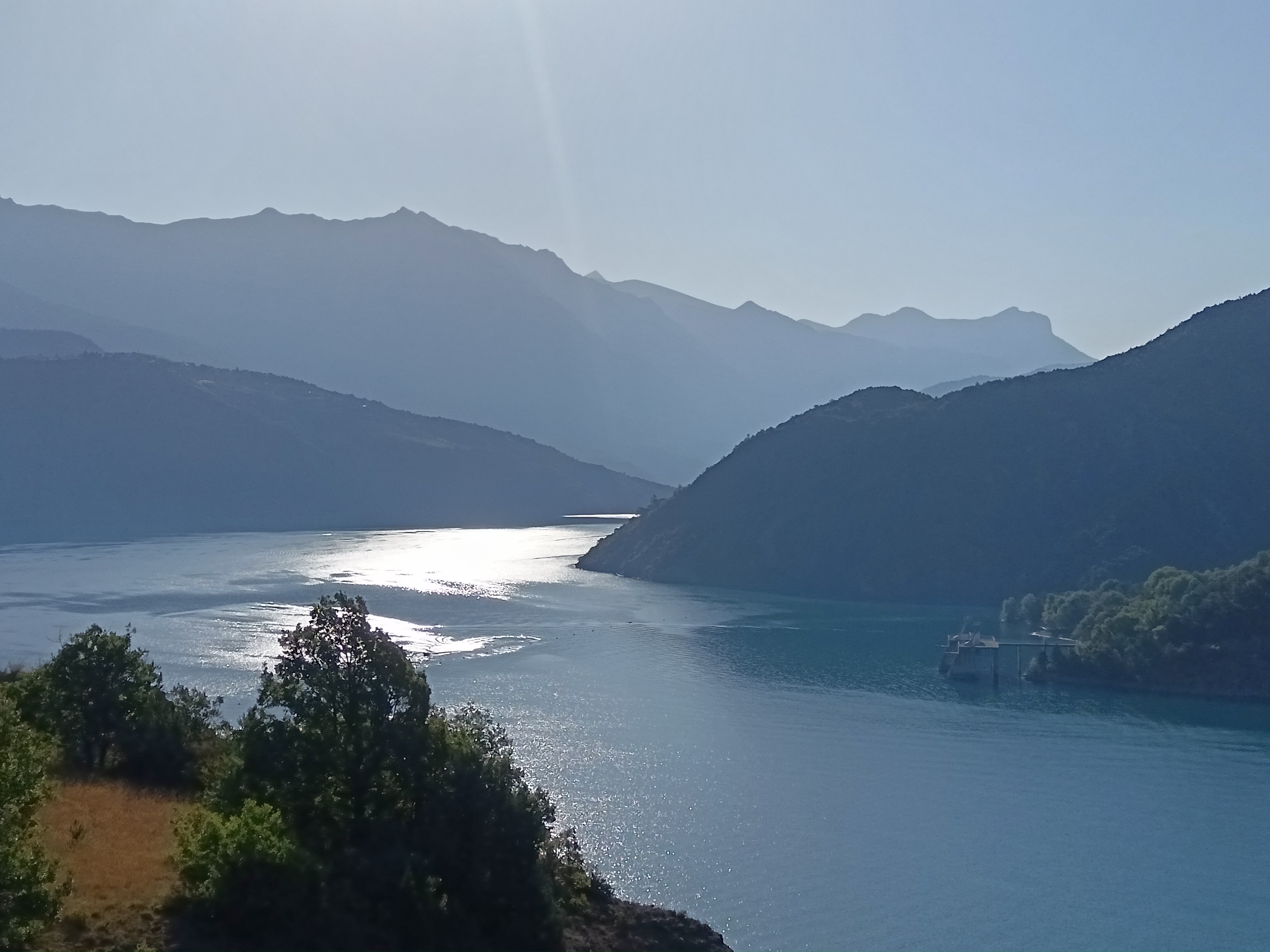 Une journée avec une seule ambition: cap vers l’est, par des routes secondaires uniquement, pour rejoindre la Durance et le lac de Serre-Ponçon. Quelques arrêts agréables cependant, dans les caves du Roquefort, puis dans les Cevennes à Ganges, l’occasion de tester andouillettes et IPA locales. La traversée des Barronnies provençales le long de la rivière Aigues est très agréable. La traversée latérale de la vallée du Rhône, elle, est toujours un difficile moment (chaleur et traffic dense). Ah, j’oubliais: une panne sèche dans les Cévennes. Je voulais vérifier que la jauge à essence de la nouvelle Brexiteuse était étalonnée comme celle de la précédente (c’est à dire continuer 30km après qu’elle indique « fin »). La réponse est non. Merci au jeune apprenti en 205 junior de m’avoir tiré 5km jusqu’au premier pompiste. Quand tu revendiques avoir bien préparé ton voyage et pensé à tout, et que tu nous sors une panne sèche dès le premier jour, avoue que t’es pas super rassurant comme gars !