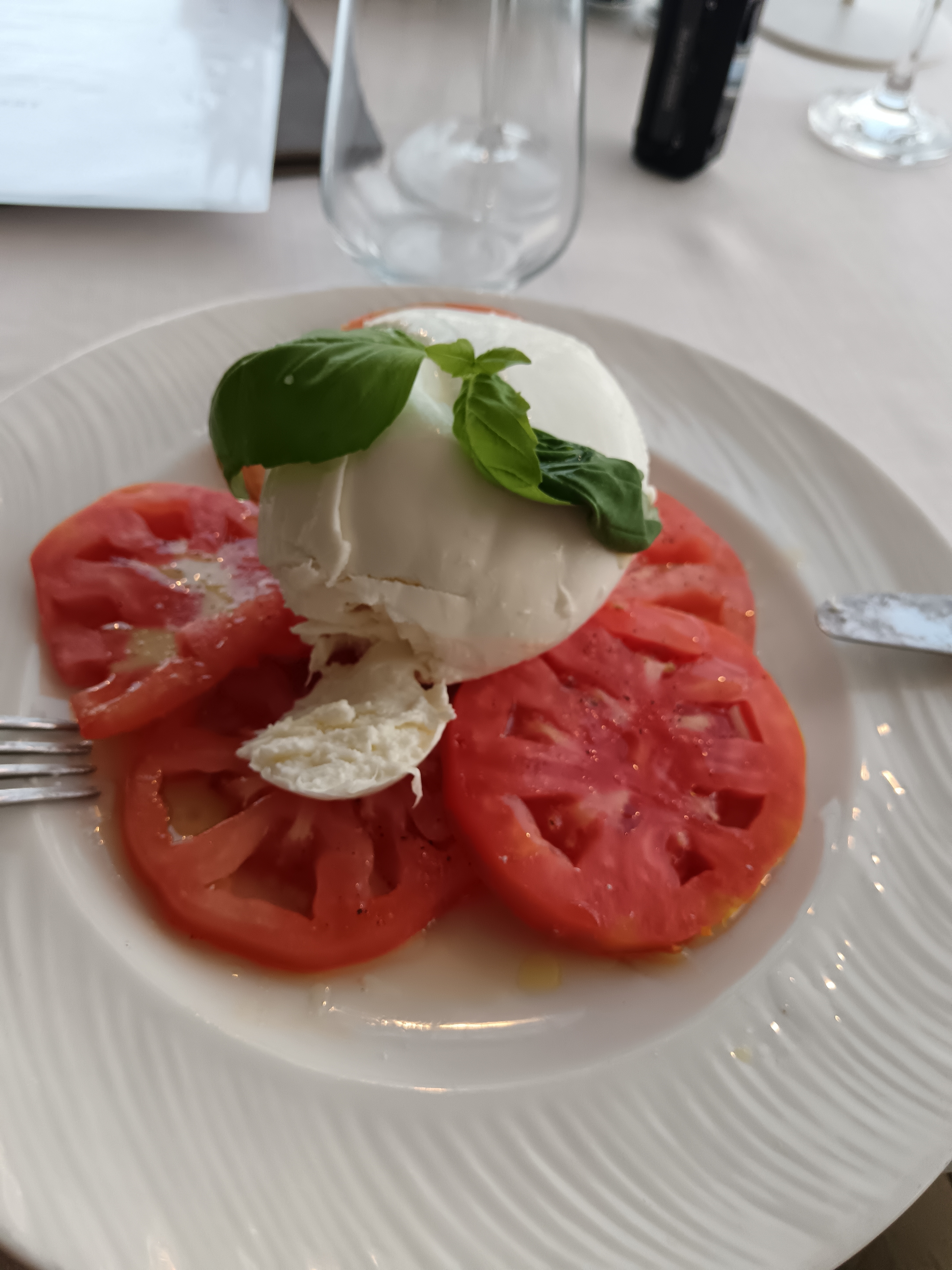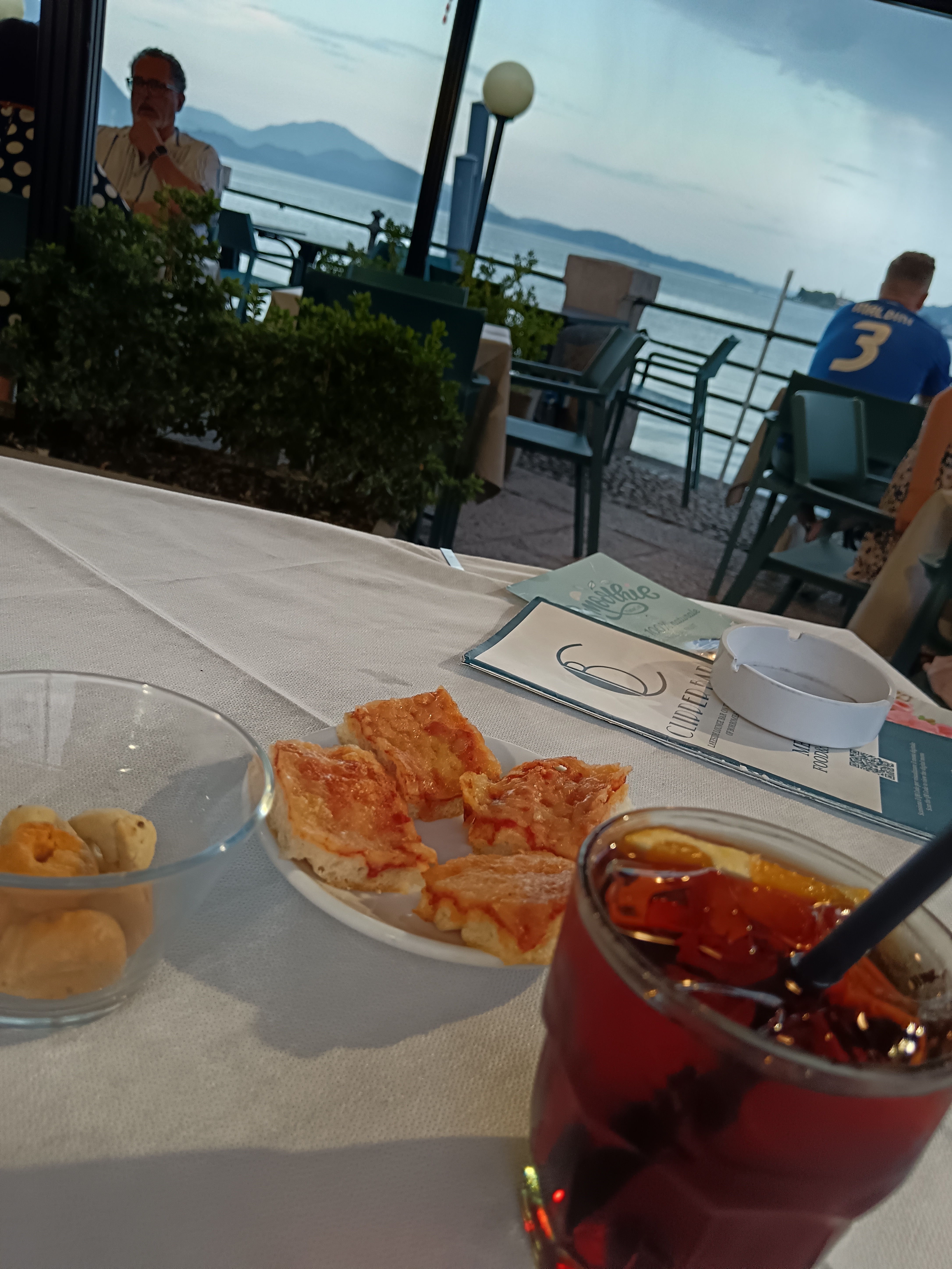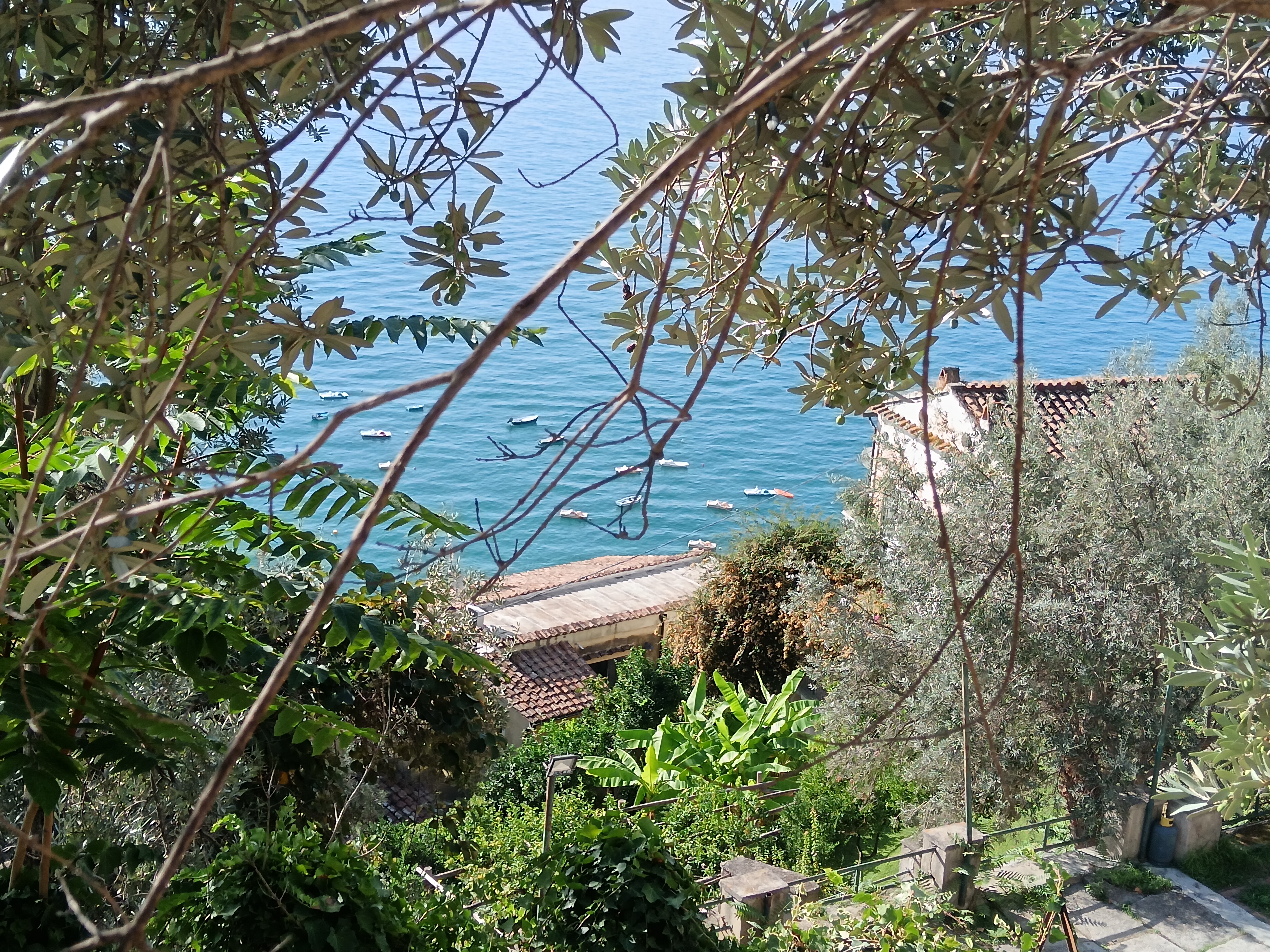 Je quitte Cinqueterre et rejoins, pour la première fois de tout le voyage, une autoroute. Cette incroyable autoroute jour/nuit/tunnels/viaducs/vent/pas vent, épuisante à moto, et qui longe toute la côte ligurienne. Cela dure deux ou trois heures jusqu’à Vintimiglia, où je décide d’upgrader mon hôtel, pour bénéficier d’une plage privée accessible par un sentier bordé de murets, avec vue sur les montagnes, et d’un restaurant les pieds dans l’eau, histoire de célébrer la fin approchante du voyage avec un combo spritz/burrata