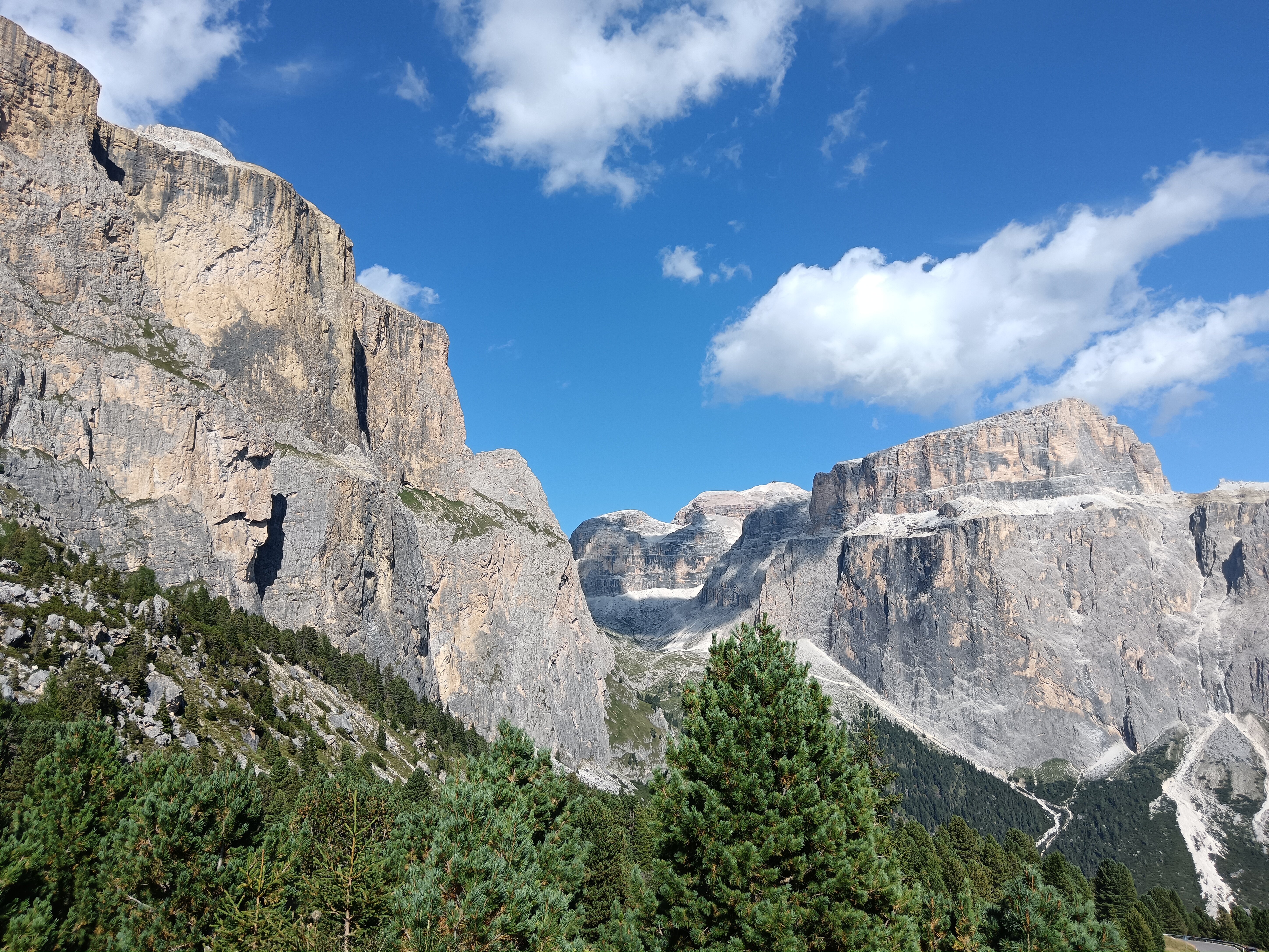 On entre ensuite dans le parc des Dolomites. 4ième passage pour moi depuis 2015, et, enfin, du soleil. Jusqu’à maintenant, je n’avais connu les Dolomites que sous l’enfer des orages et de la pluie, alors que cette chaine de montagne n’a d’intérêt que la découpe de ses sommets rocheux, particulièrement observables du haut des cols de Selva, Gardena et Falzarego. On redescend ensuite sur Cortina d’Ampezzo, qui compte autant de propriétaires de Ferrari et Lamborghini que de paysans dans l’Aveyron, pour vite s’échapper vers les montagnes de la Vénétie Julienne, plus près de la frontière slovène. Une région pleine de charme, une excellente gastronomie et pléthore de brasseries artisanales. Bref, l’endroit idéal pour une soirée de récupération.