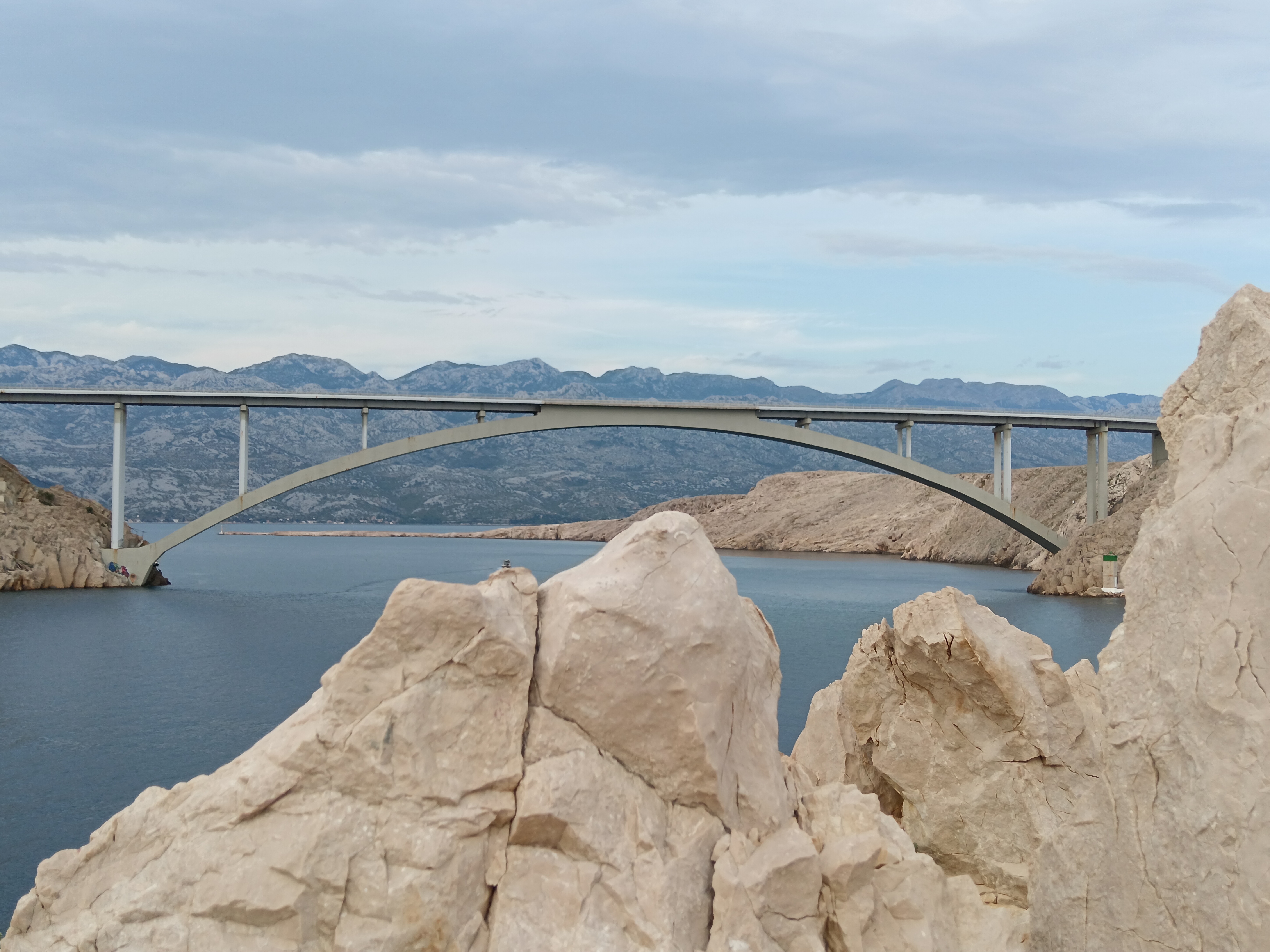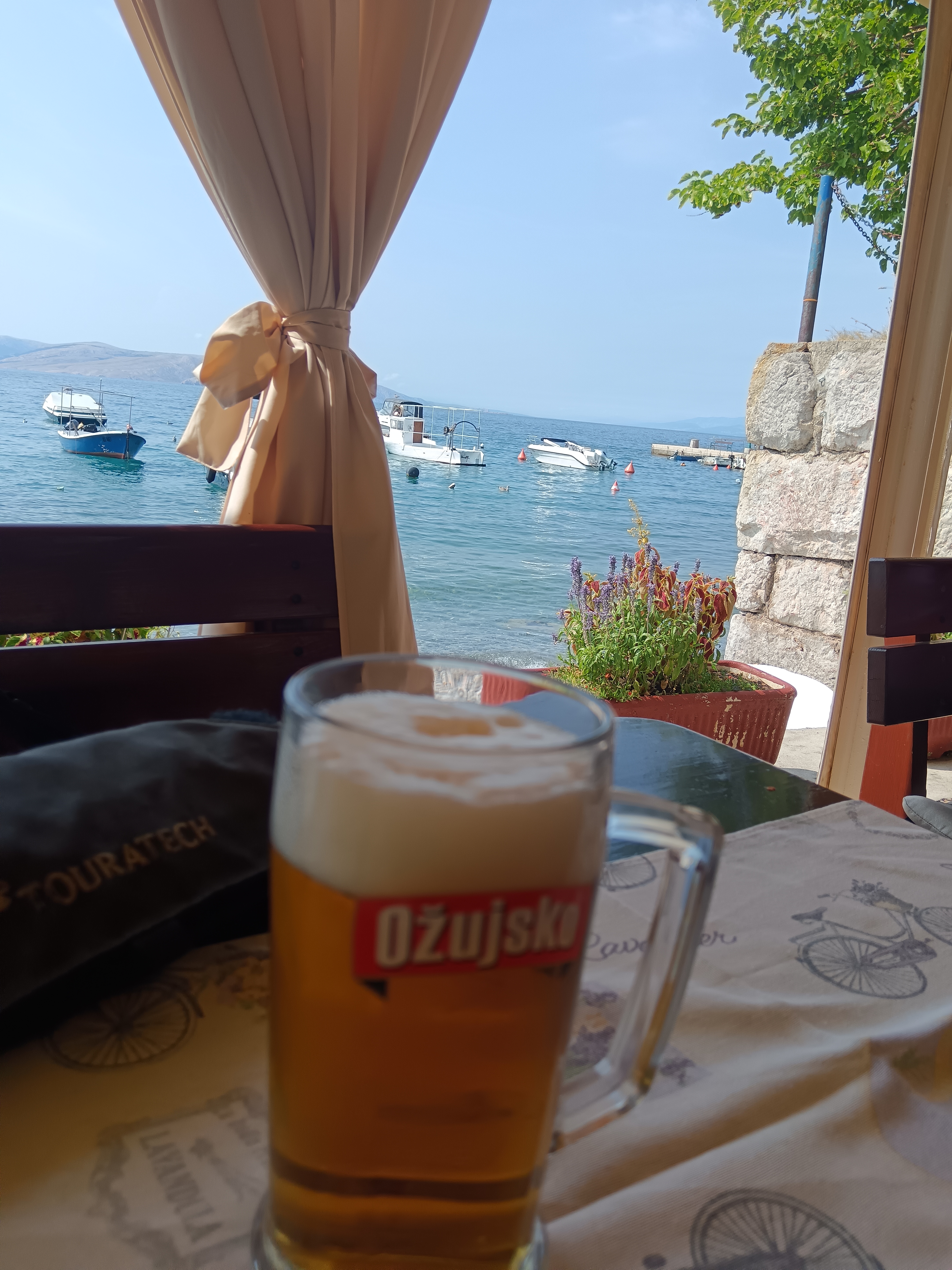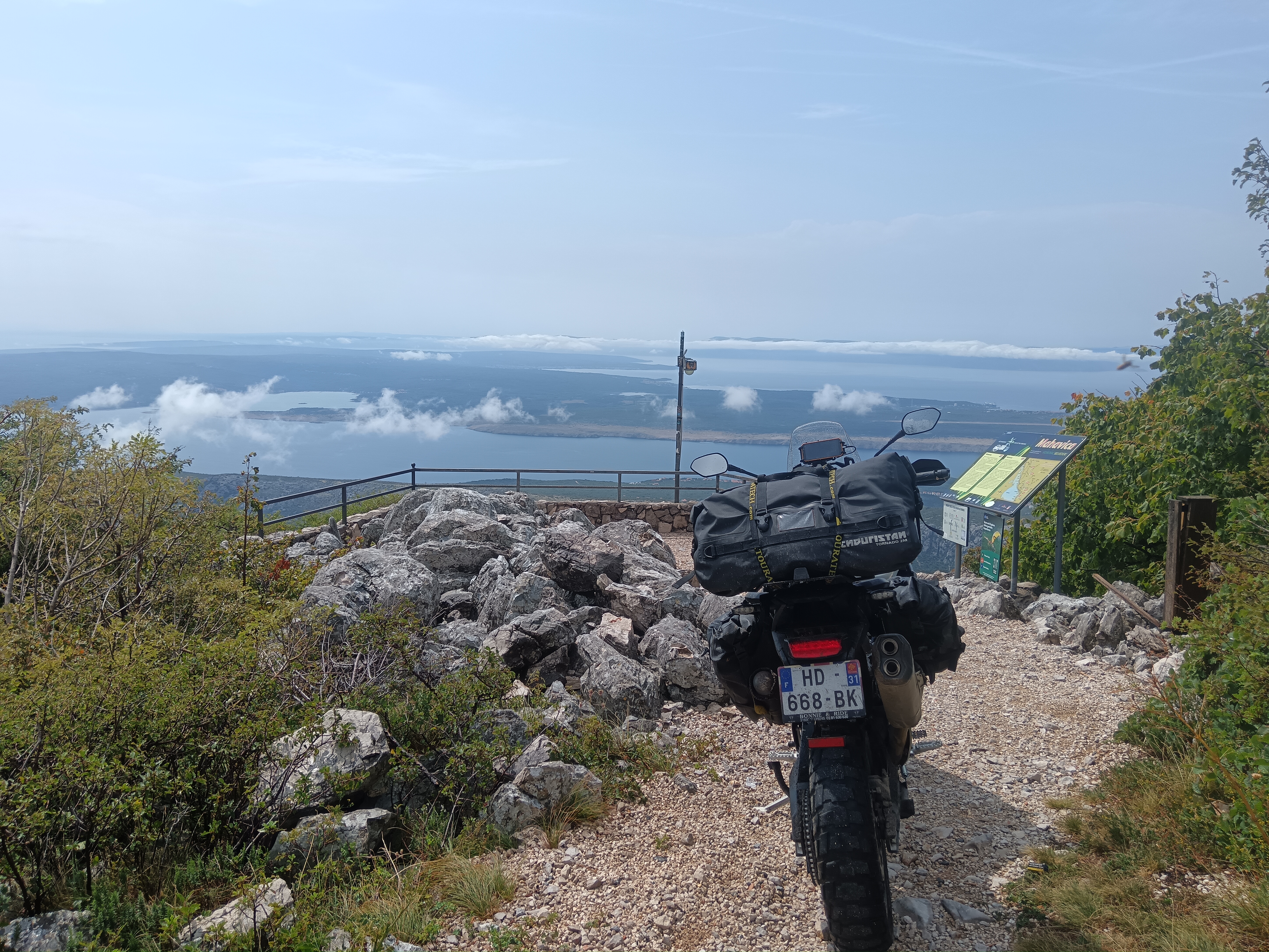 Le soleil revient à l’approche des côtes du nord de la Croatie, que je longerais non par la route, mais par des pistes de crêtes, jusqu’au ferry menant vers l’ile de Pag, une centaine de kilomètres plus au sud. 15 minutes de ferry, et l’on se retrouve au milieu d’étendues arides, à la pierre blanche. Bien sûr, vous vous doutez bien, votre serviteur avait préalablement repéré comment s’engager dans ce no man’s land, se balader à travers ces paysages loin des axes touristiques, et accéder à des criques sauvages. La journée se termine dans une petite cité balnéaire tout au sud de l’ile (presqu’ile en fait si l’on considère la connection par un pont plus au sud). Baignade, produits de la mer en terrasse, dodo. Demain, ca va être plus physique, le linesman a prévu du très costaud.