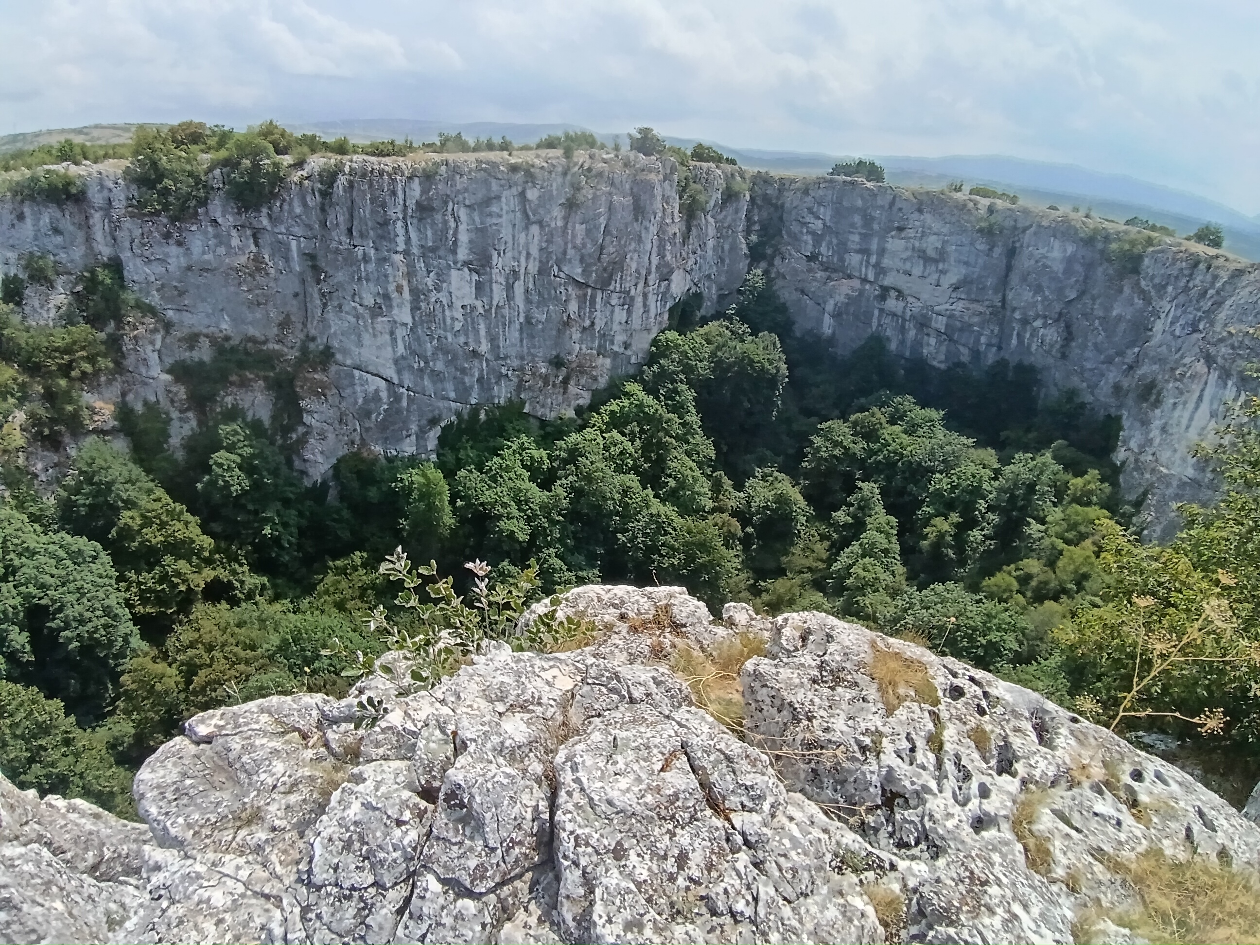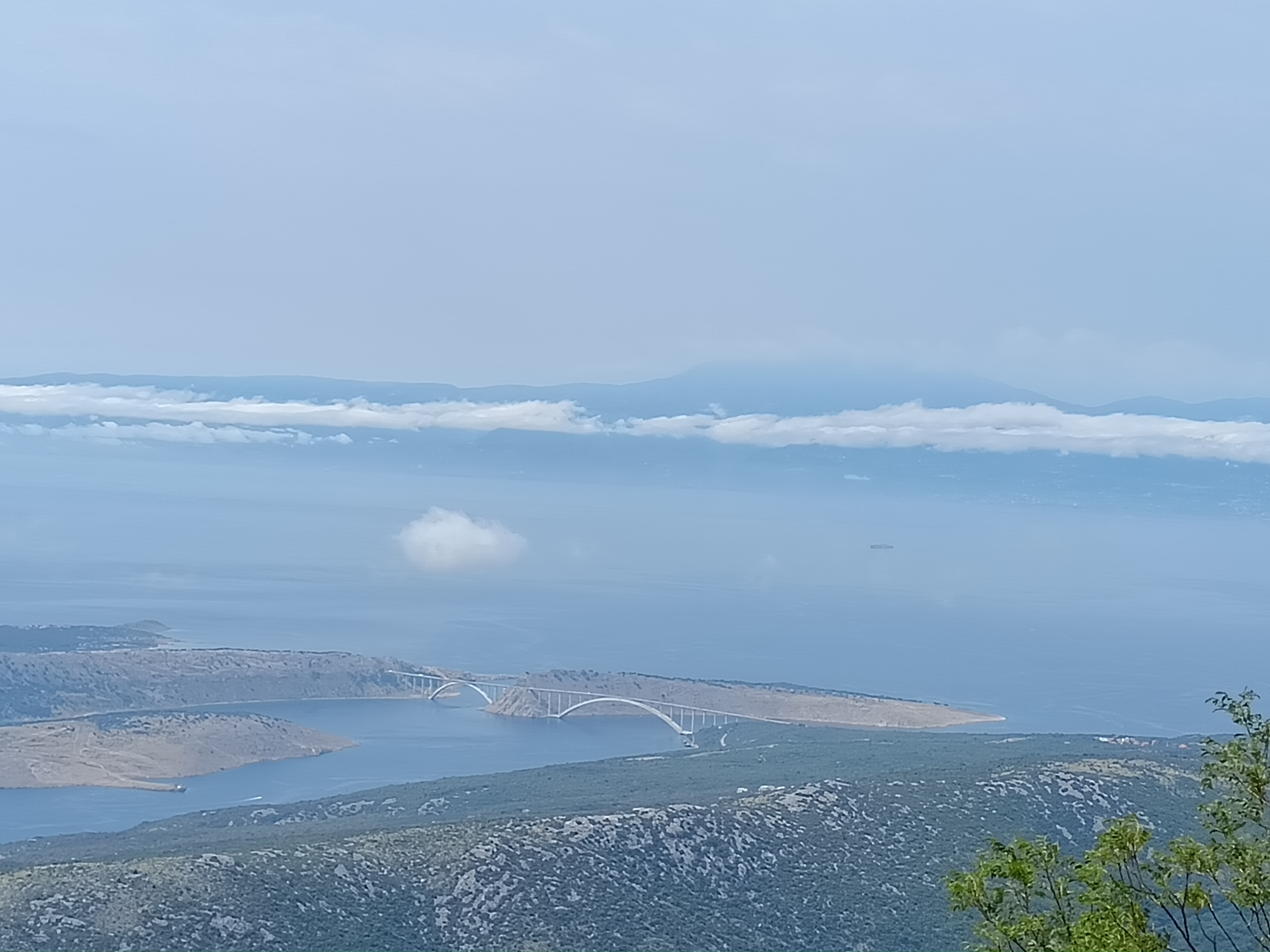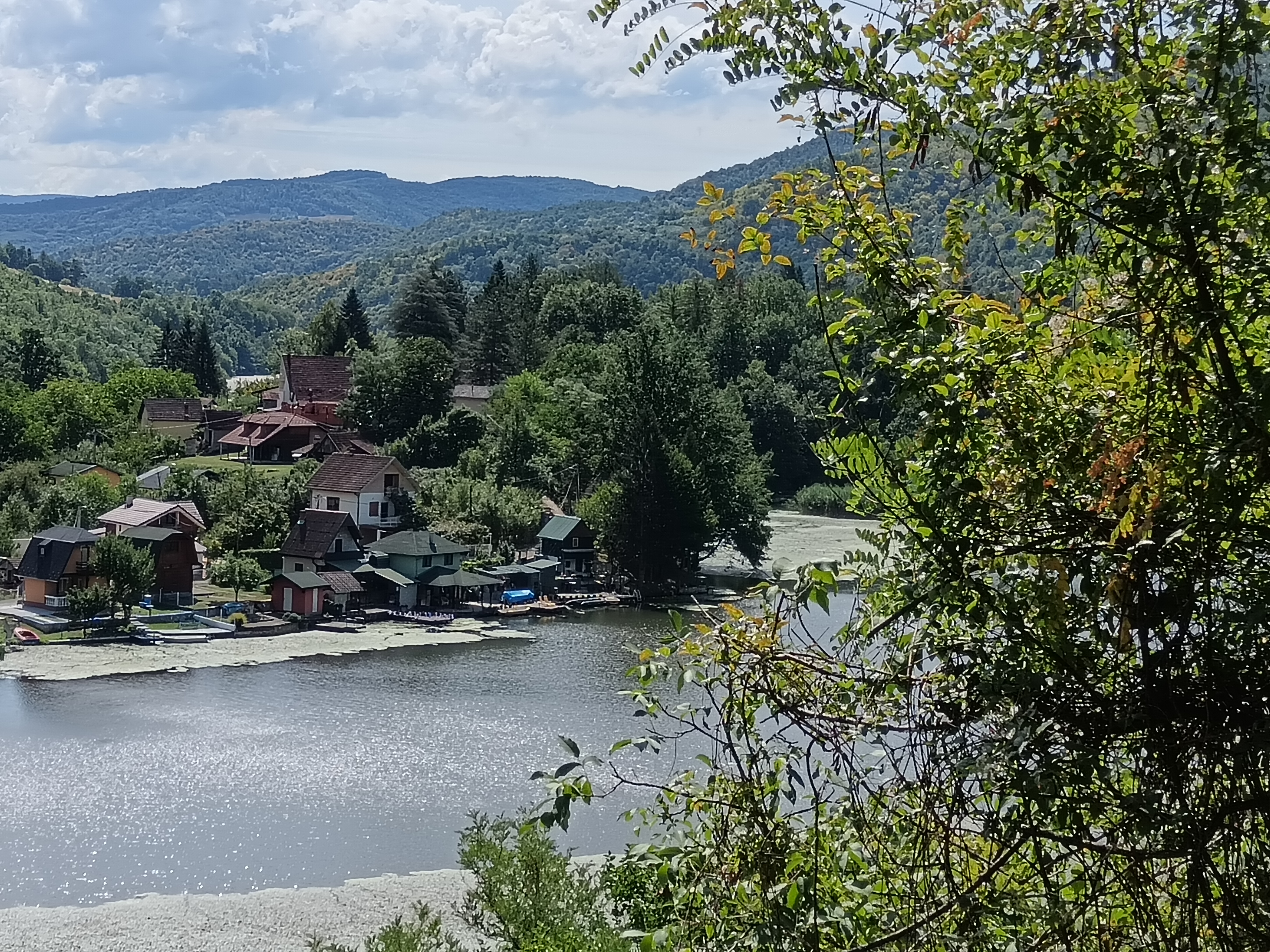 Le jour des contrastes, entre pluie diluvienne et soleil brulant, entre denses forêts et iles arides, entre vert et bleu. La journée débute par une centaine de kilomètres où l’on traverse plusieurs petits villages reliés par des pistes forestières, pour la plupart faciles et assez rapides, où l’on se surprend à provoquer quelques glissades. Puis, parvenu près de la frontière croate, le long de la rivière Cabranka, des trombes d’eau sans fin. Je continue malgré tout, car rien ne permet de s’abriter, mais cela devient dangereux, si bien que je finis par m’arrêter sous un viaduc d’autoroute, près d’une heure, scrutant l’évolution des nuages sur mon appli météo.
