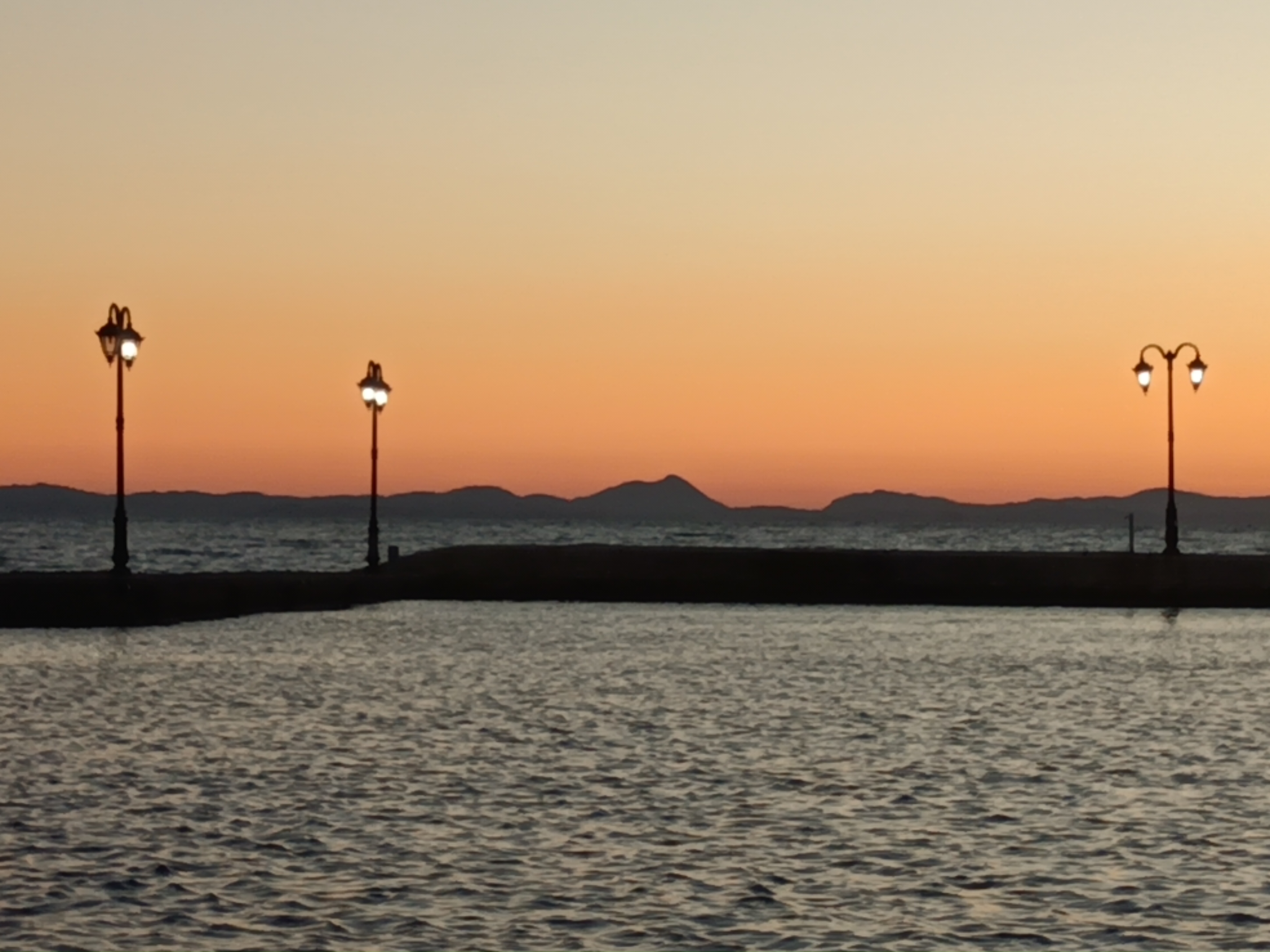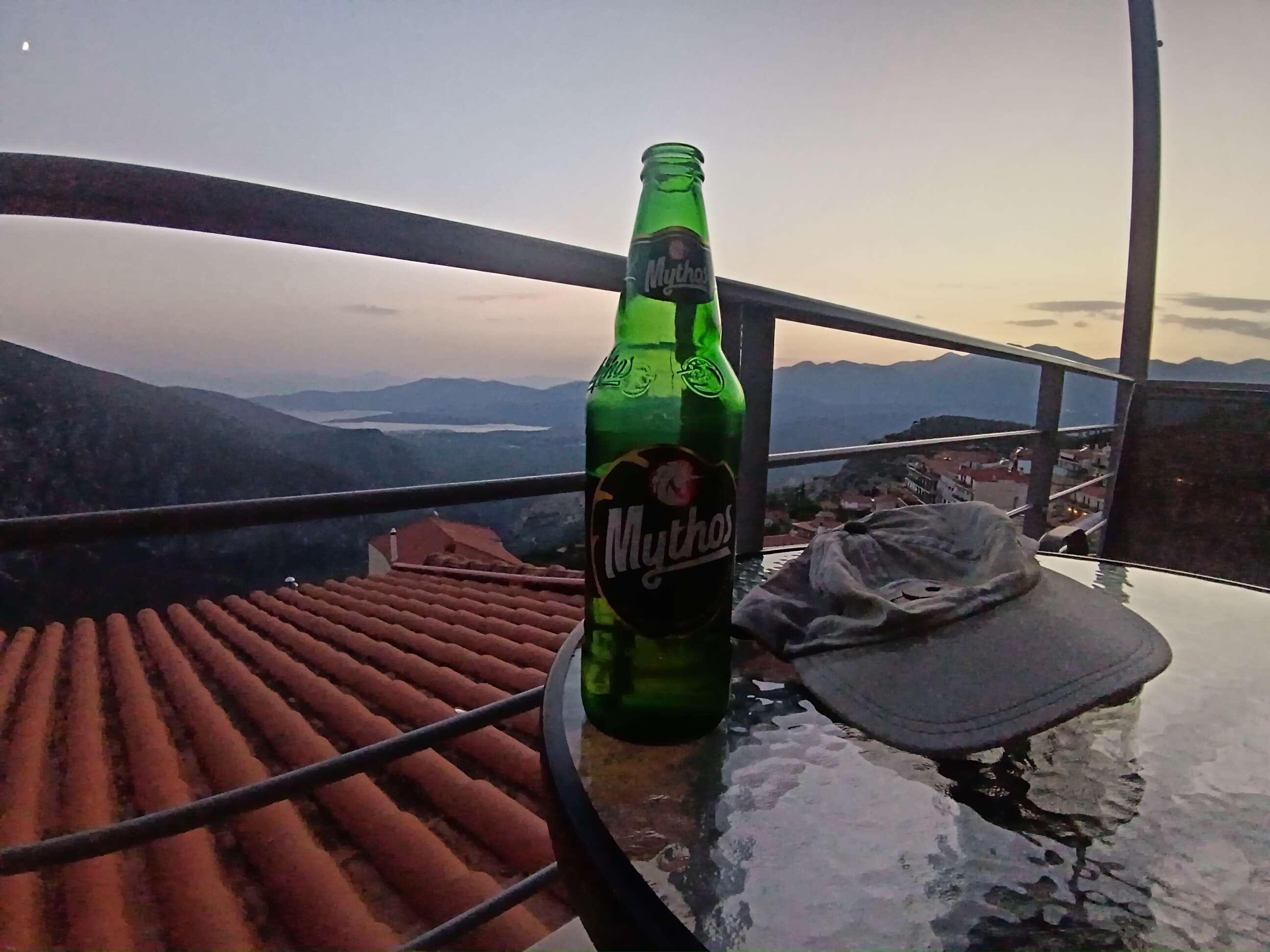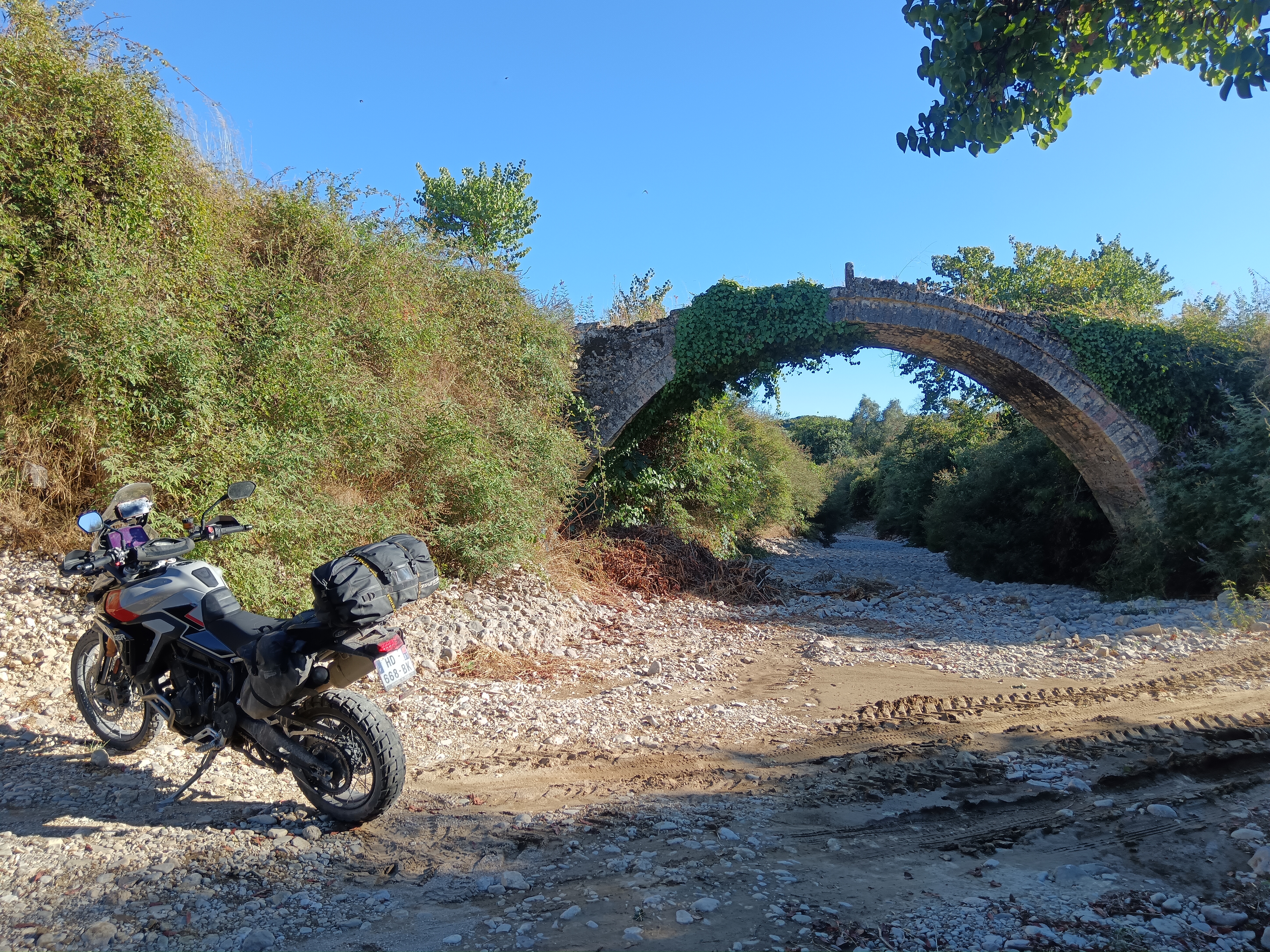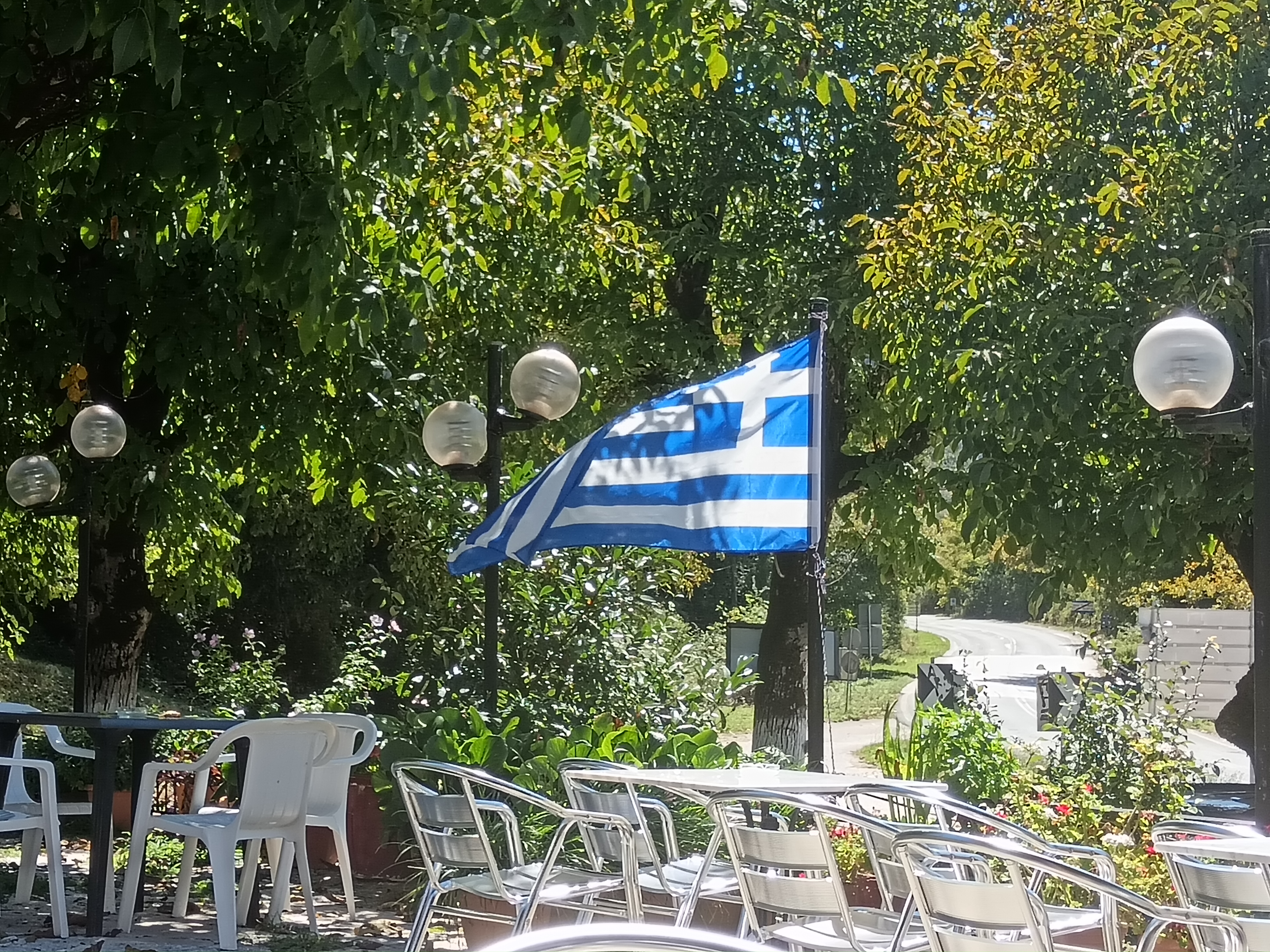 Dernier jour en Grèce, un rafiot m’attend au port de Igoumenitsa ce soir à minuit. Cela me laisse le temps de revenir dans les terres montagneuses à la recherche d’échappées paysagères. Même si le port est à l’ouest, je pars vers le nord pour 200km de montagnes, succession de canyons, de vieux ponts génois, de villages perchés, dont un fera l’objet d’un arrêt « dernière truite locale dans le gosier », le tout sur des routes en très mauvais état, souvent parsemés de blocs de roches. Pour tout dire, j’adore. Un arrêt au très beau monastère de Giromeri, avant de parvenir au nord du port de Igoumenitsa, à Sagiada, près de la frontière albanaise. Sagiada est un petit village de pêcheurs faisant face à Corfu. Je m’y pose, me baigne en attendant l’heure du Ouzo et du coucher de soleil, sur la terrasse du pêcheur qui fait office de restaurateur. Une daurade et un rouget commandés, sortis du bateau amaré en face de moi, le soleil se couchant sur Corfu, sirotant mon Ouzo. La Brexiteuse siestant non loin derrière moi sous un palmier, ou un olivier, je ne sais plus. J’ai connu pire contexte.