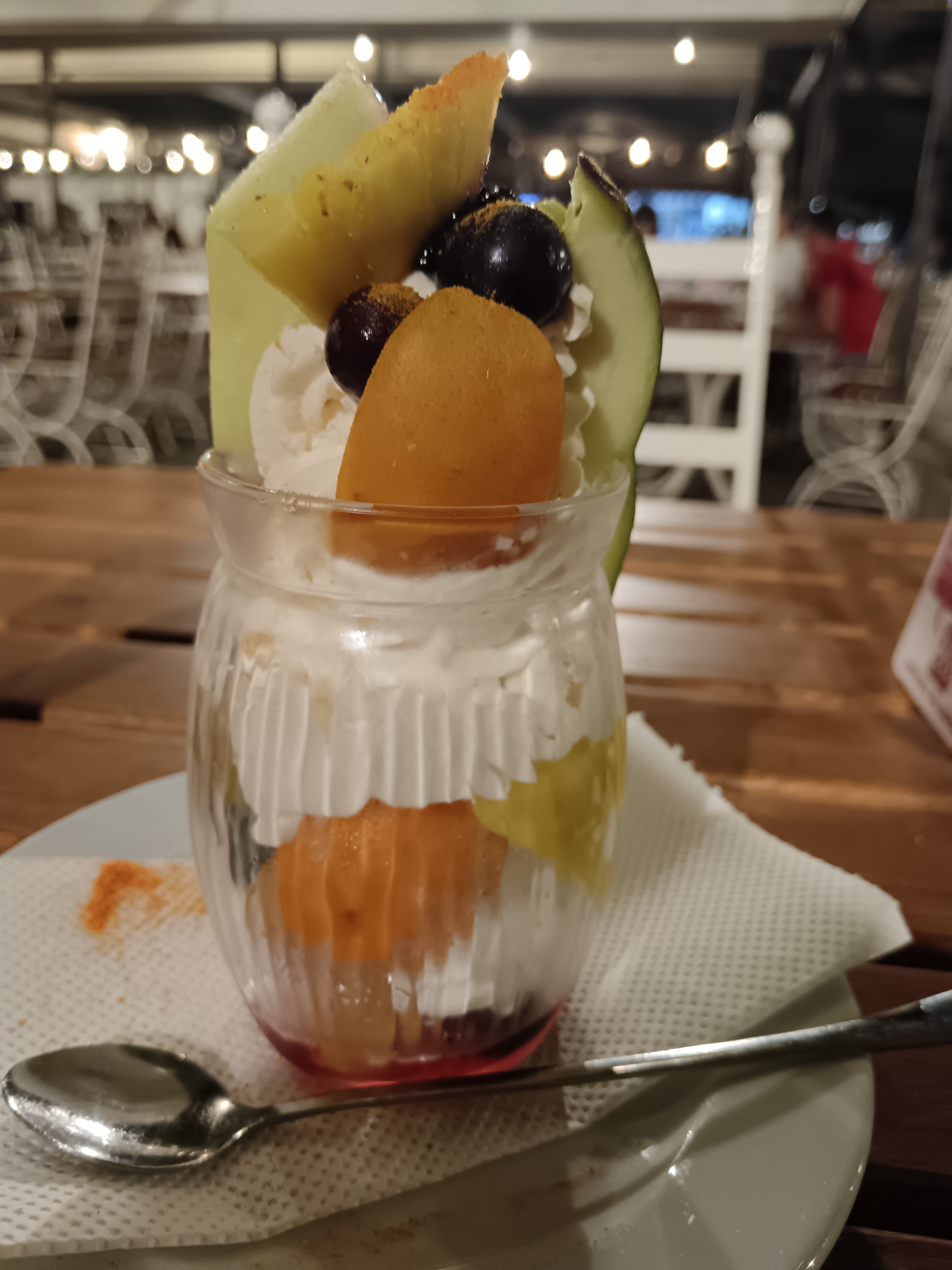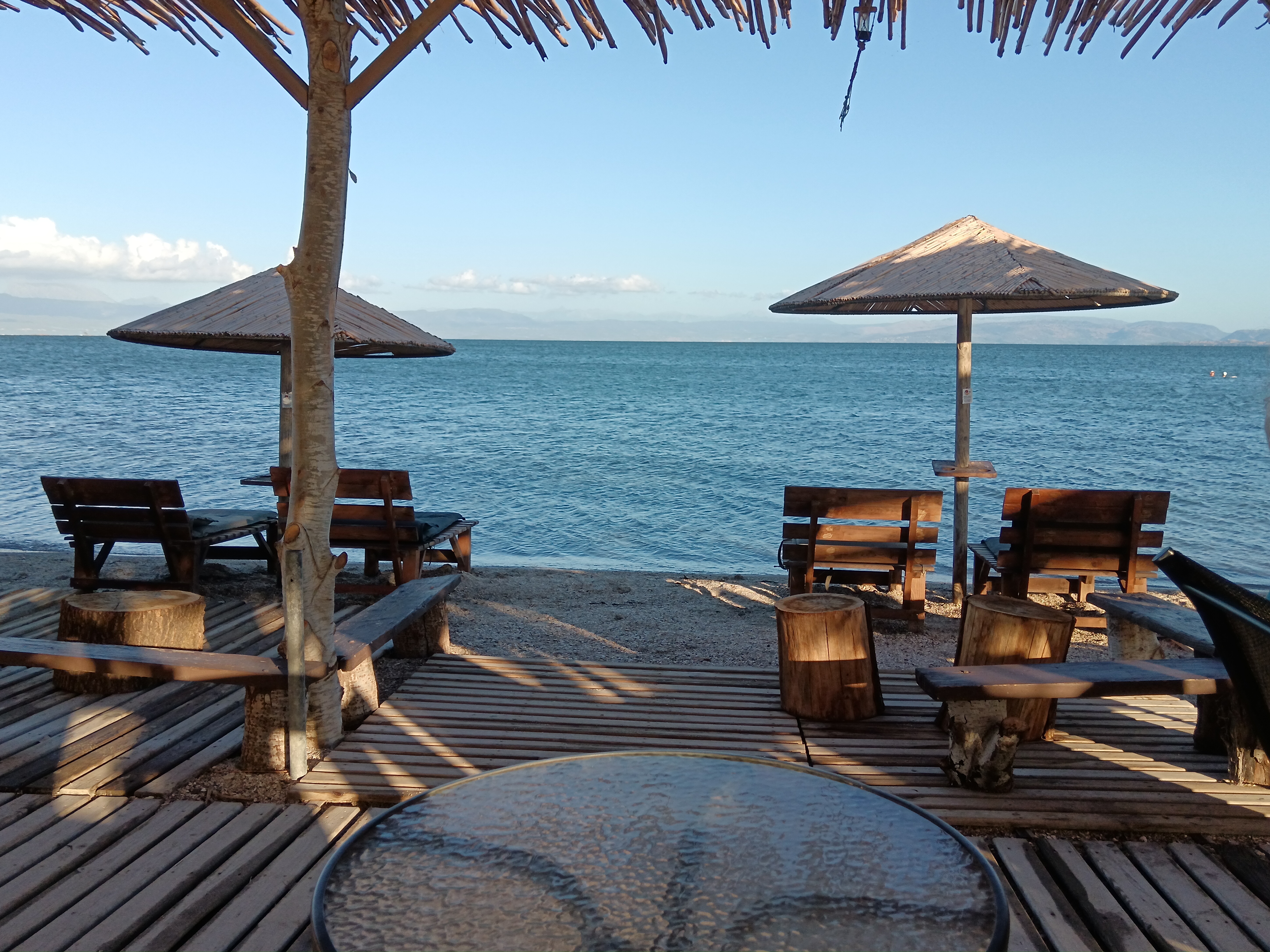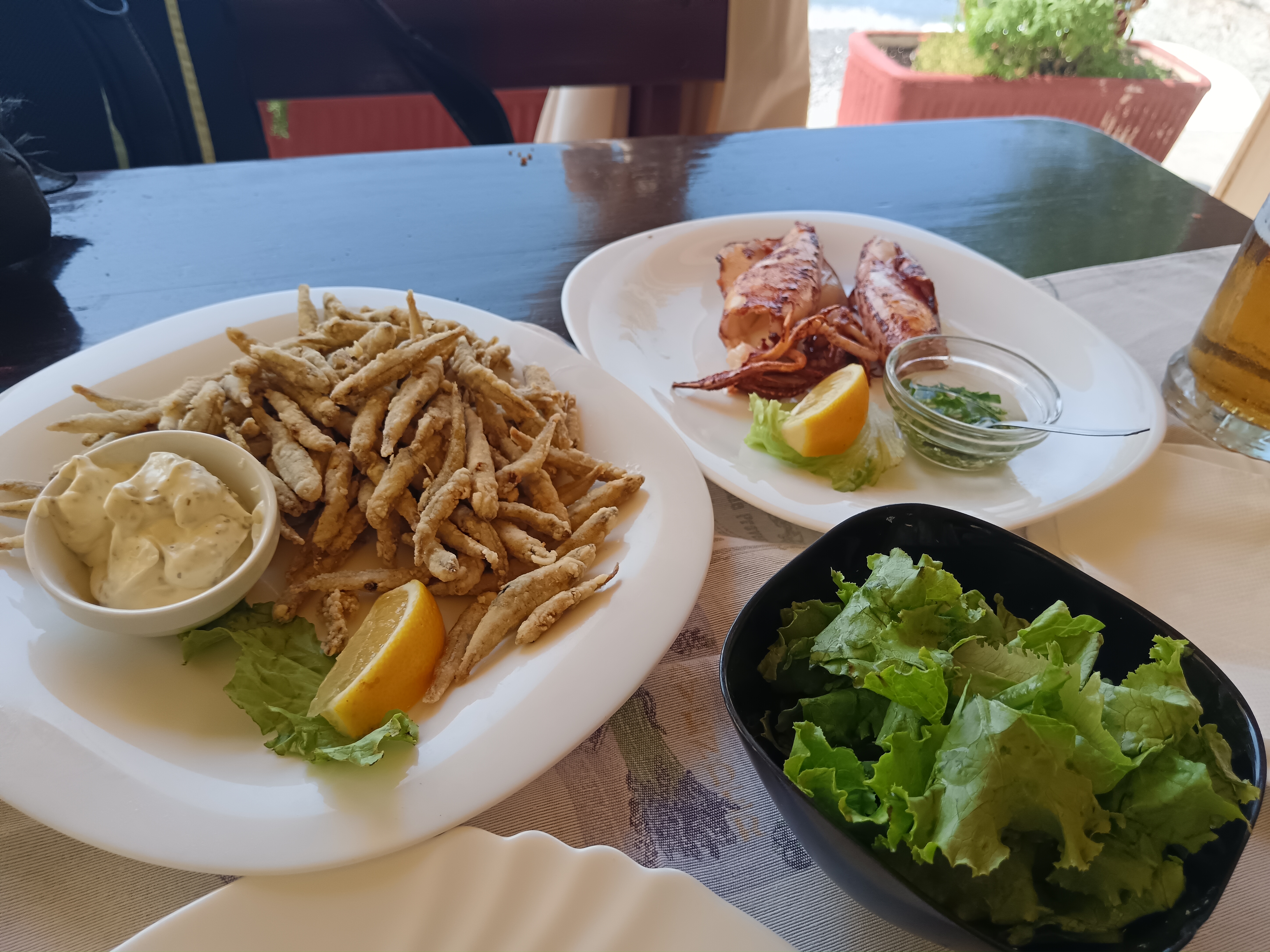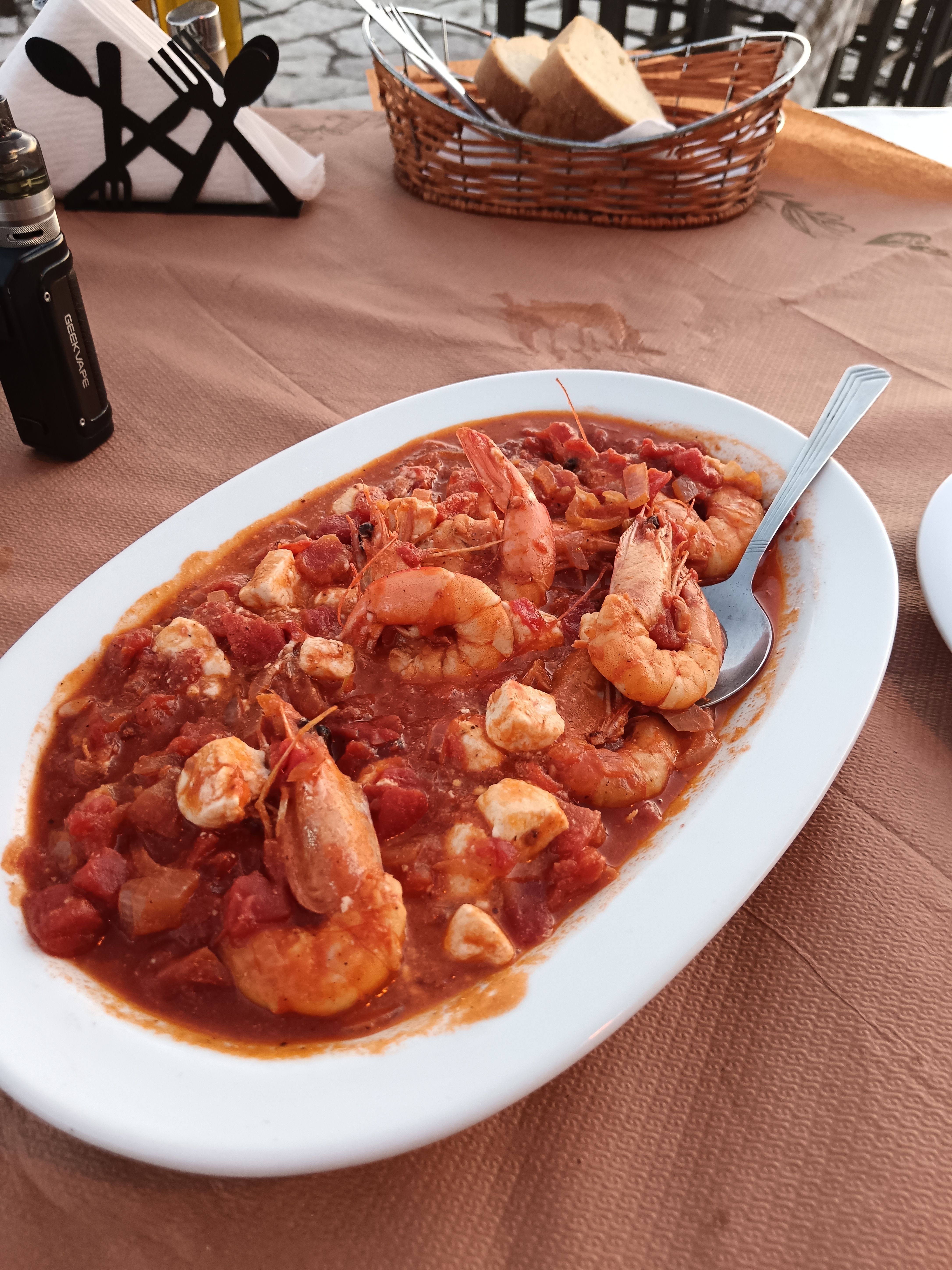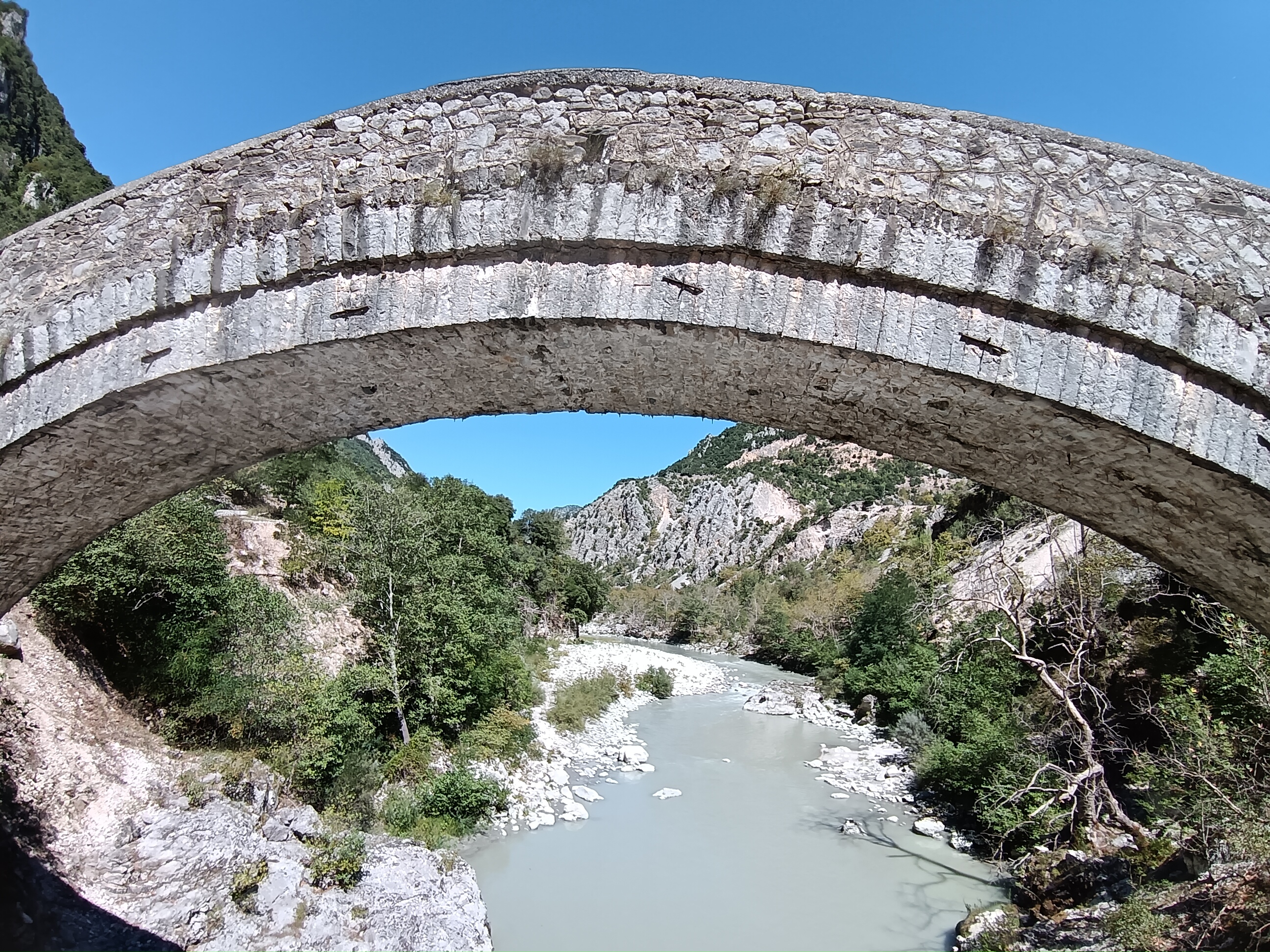 Dernier jour en Grèce, un rafiot m’attend au port de Igoumenitsa ce soir à minuit. Cela me laisse le temps de revenir dans les terres montagneuses à la recherche d’échappées paysagères. Même si le port est à l’ouest, je pars vers le nord pour 200km de montagnes, succession de canyons, de vieux ponts génois, de villages perchés, dont un fera l’objet d’un arrêt « dernière truite locale dans le gosier », le tout sur des routes en très mauvais état, souvent parsemés de blocs de roches. Pour tout dire, j’adore. Un arrêt au très beau monastère de Giromeri, avant de parvenir au nord du port de Igoumenitsa, à Sagiada, près de la frontière albanaise. Sagiada est un petit village de pêcheurs faisant face à Corfu. Je m’y pose, me baigne en attendant l’heure du Ouzo et du coucher de soleil, sur la terrasse du pêcheur qui fait office de restaurateur. Une daurade et un rouget commandés, sortis du bateau amaré en face de moi, le soleil se couchant sur Corfu, sirotant mon Ouzo. La Brexiteuse siestant non loin derrière moi sous un palmier, ou un olivier, je ne sais plus. J’ai connu pire contexte.