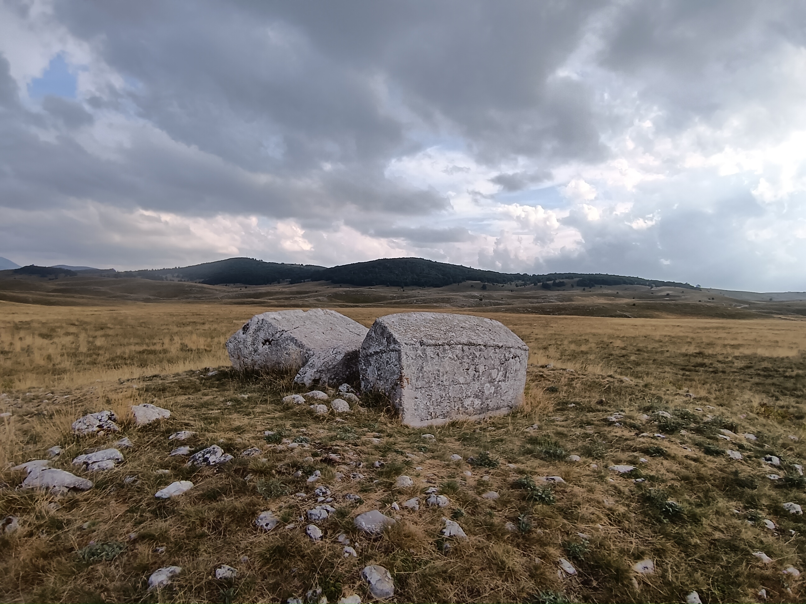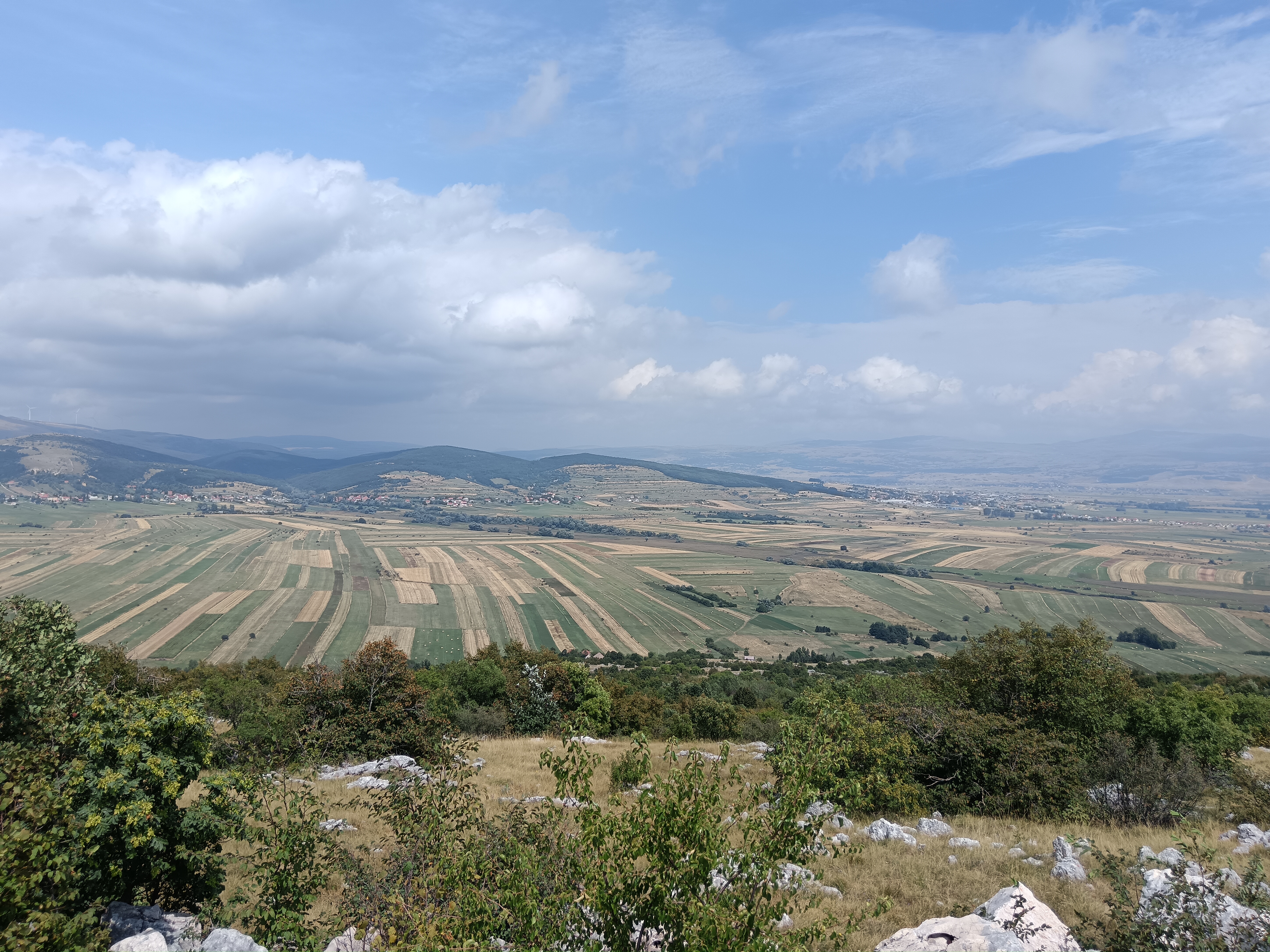 Je n’ai plus qu’à me laisser glisser quelques kilomètres sur le plateau, au milieu de nécropoles, jusqu’au village, pour rejoindre ma cabane, et gouter cette étrange galette bosniaque (fromage frais épinards) dont j’ai perdu le nom.