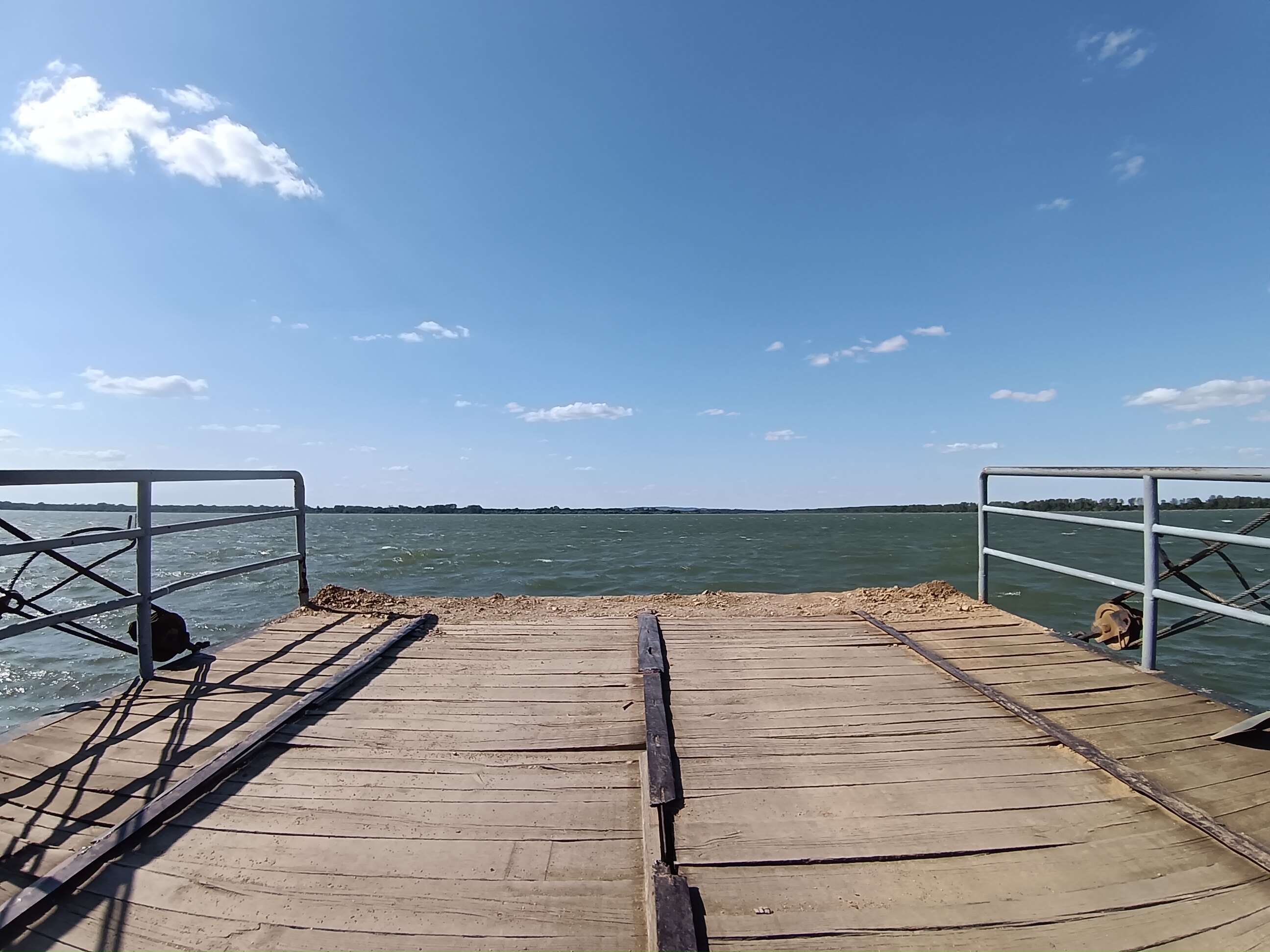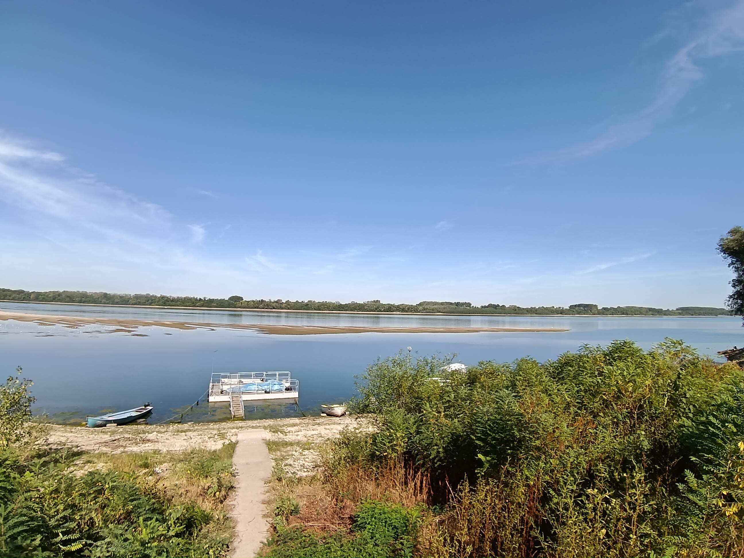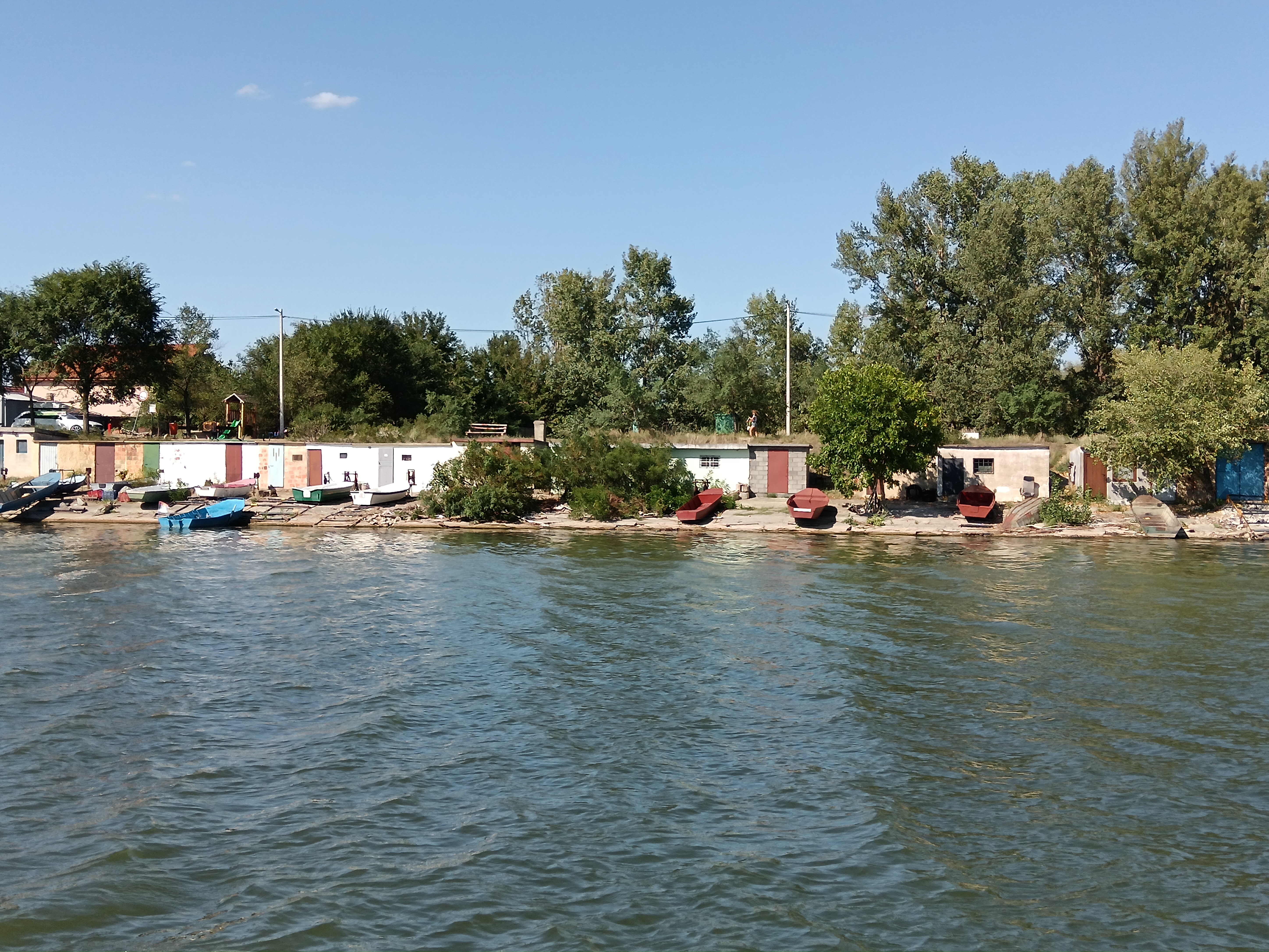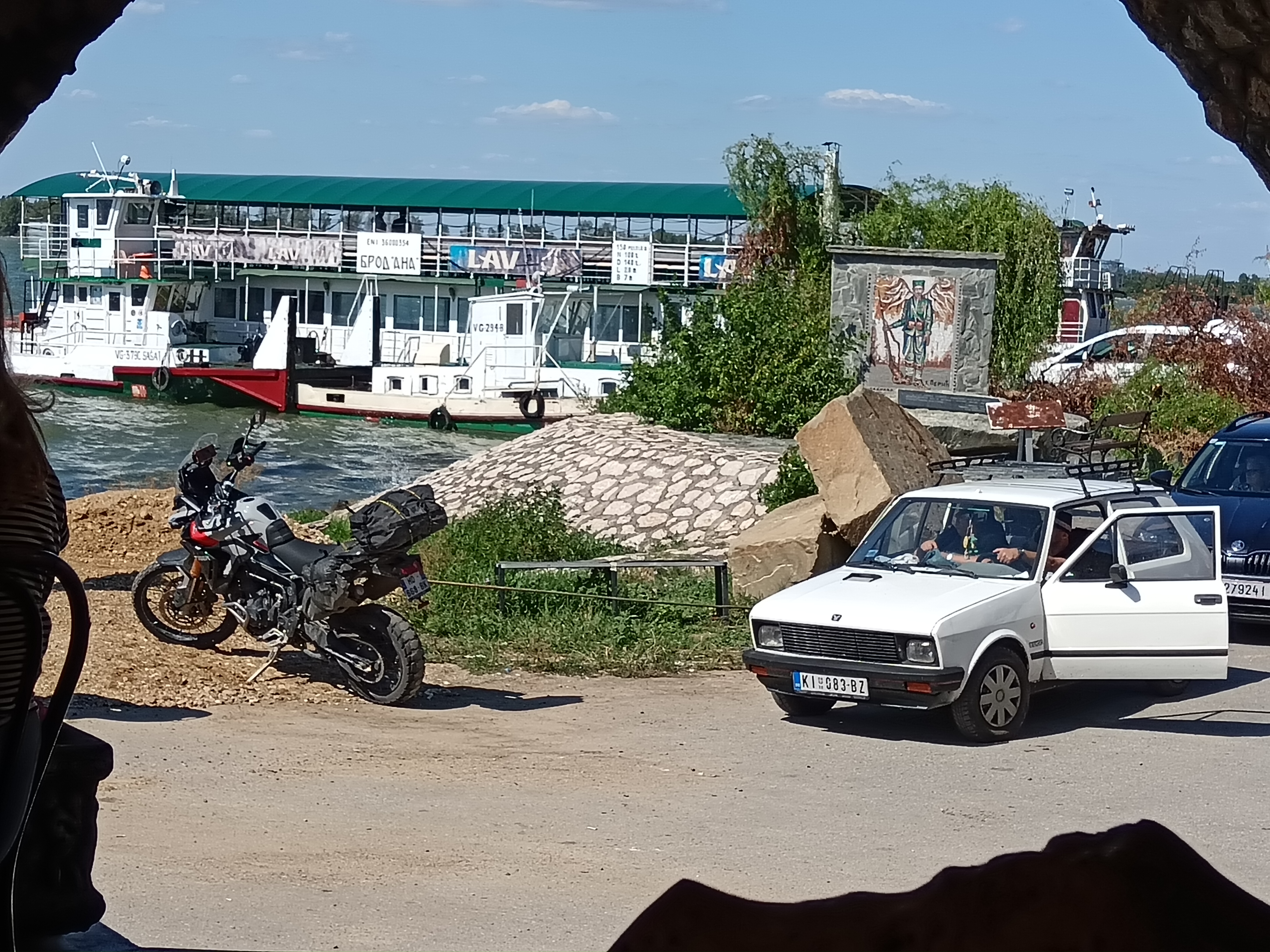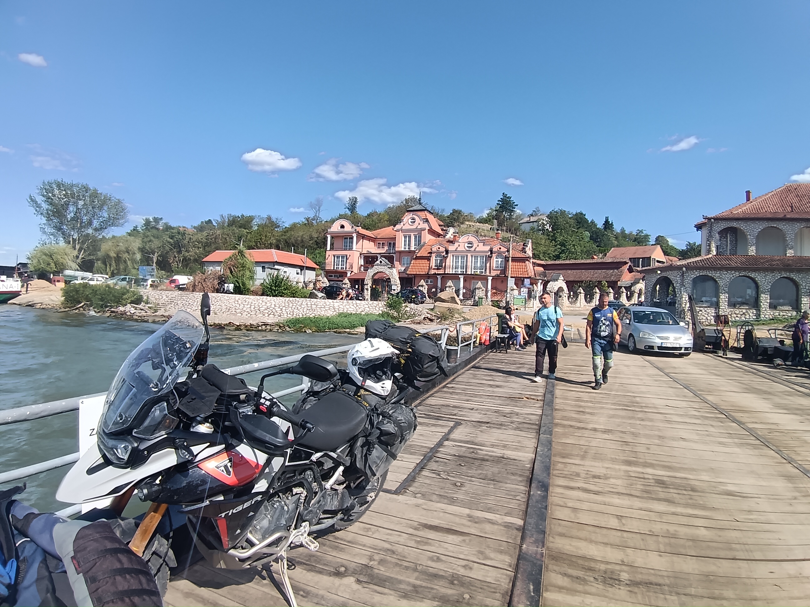 Je mets fin au suspense et je vous l’annonce: je ne croiserai plus le chemin d’une seule goute de pluie jusqu’à la fin du voyage, qui n’en est encore qu’à ses débuts (même si quelques messages commencent à me parvenir, « tiens, au fait, tu seras là pour la rentrée? »). C’est donc tout sourire et sous le soleil, mais un peu claqué quand même par la journée précédente, que je repars à l’aube. Que du bitume aujourd’hui. J’ai mis une grosse claque au buffet du petit dej, car j’ai prévu une pause dejeuner sur les rives du Danube vers 16h selon mon algorithme prédictif pas artificiel, soit le temps de traverser toute la Serbie du sud-ouest au nord-est. Pas le temps donc de discuter passing shots avec Djoko. Pour autant, pas d’autoroutes, mais des routes de campagnes, et des arrêts photos de chapelles et jolis villages reculés. Une pause plus longue dans le méandre de la rivière Zapadna Morava où je quitte la route pour emprunter les tunnels obscures d’une voie de chemin de fer abandonnée, et contempler les tapis de nénuphars entre chacun d’eux. Au bout de 320km un peu express malgré tout, j’arrive dans le petit village de Ram, au bord du Danube, d’où, toutes les heures, un barge en bois toute déglinguée permet de traverser le Danube, pour rejoindre une quinzaine de kilomètres plus haut la frontière Roumaine la plus au sud-ouest du pays. Me reste donc 40 minutes pour apprécier houblons et poissons locaux, avant d’embarquer sur ce tas de bois, où le premier qui demandera où sont consignes de sécurité, certification ISO et gilets de sauvetage se verra jeté par dessus bord. La traversée, une vingtaine de minutes, était magique.