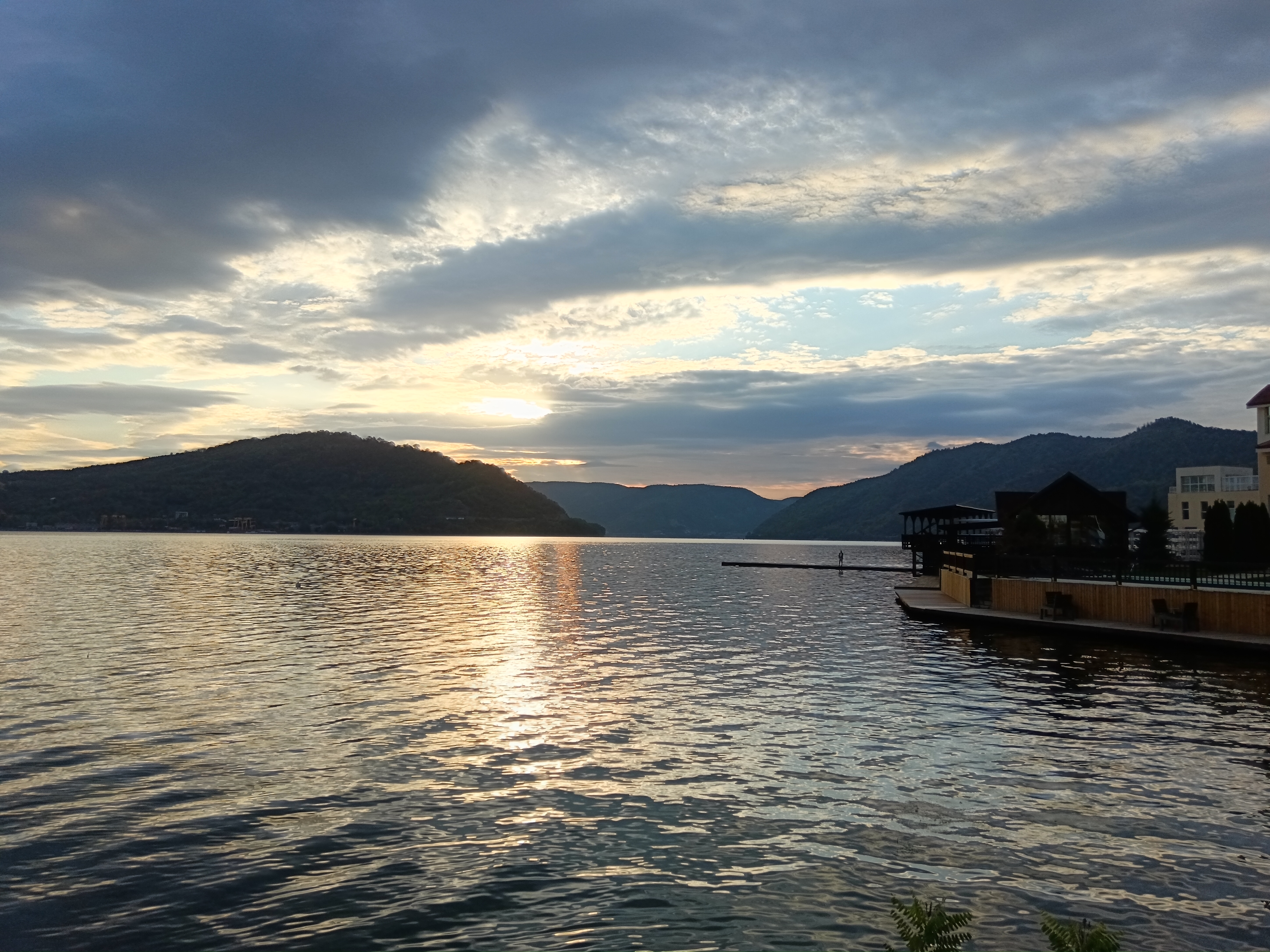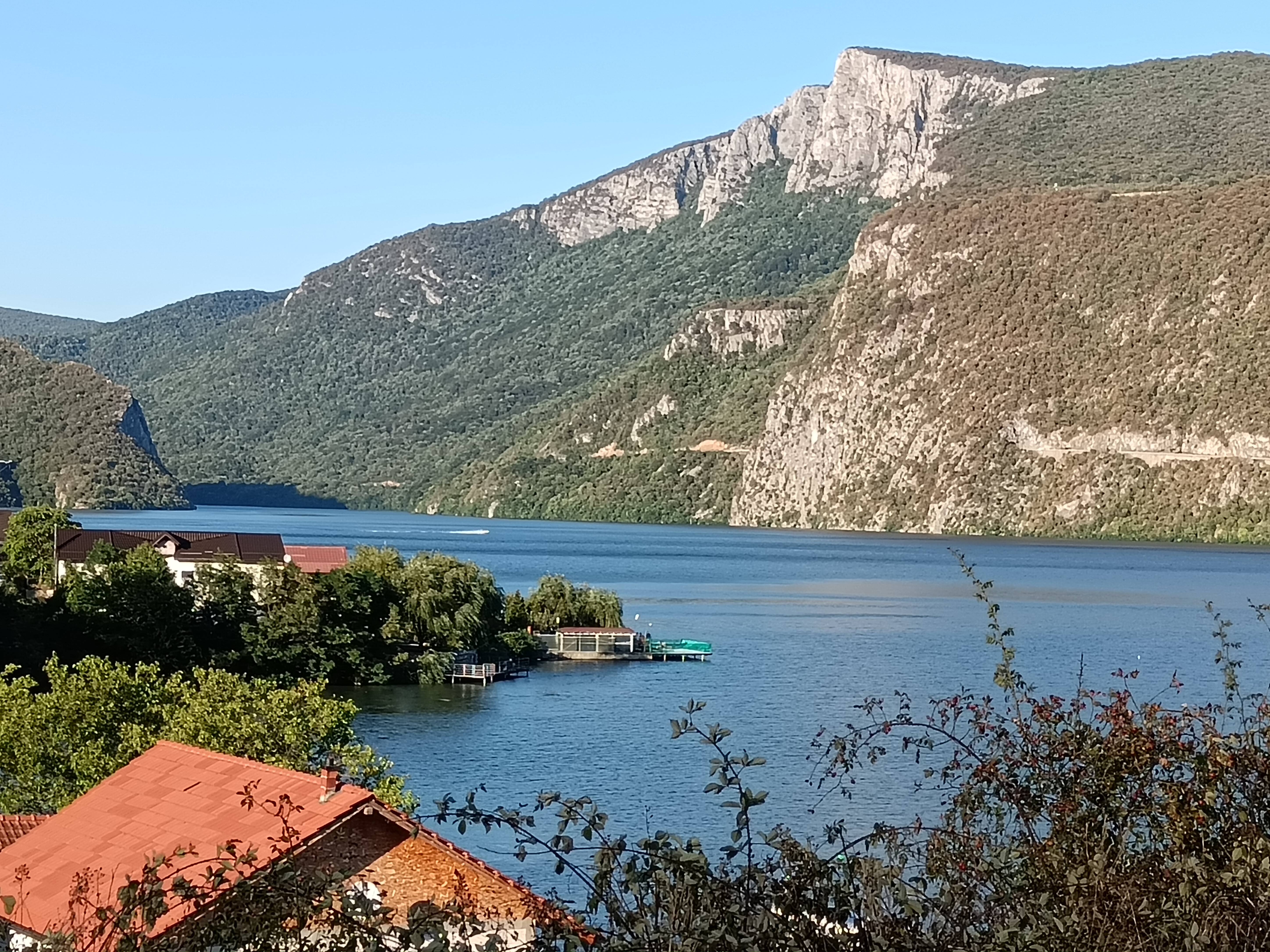 Nous voilà donc en Roumanie, où il me reste 150km intégralement le long du fleuve, dans sa partie la plus sauvage et montagneuse, tirant un trait ondulé à travers la partie ouest des Carpates. L’heure tourne et comme souvent je n’avais pas anticipé le changement de fuseau horaire, mais le houblon attendra. Car tout au long du fleuve, des arrêts s’imposent, le plus impressionnant: le « Chipul lui Decebal », une incroyable sculpture à même la falaise, à la gloire d’un roi de « je sais plus quand mais c’était il y a longtemps ». On arrive à Orsova, hôtel au bord de l’eau, au pied d’un magnifique monastère, dont je n’ai pas pris le temps de comprendre les raisons de sa modernité. Literie vue sur Danube, joues de porc, houblon, tanins, dodo.