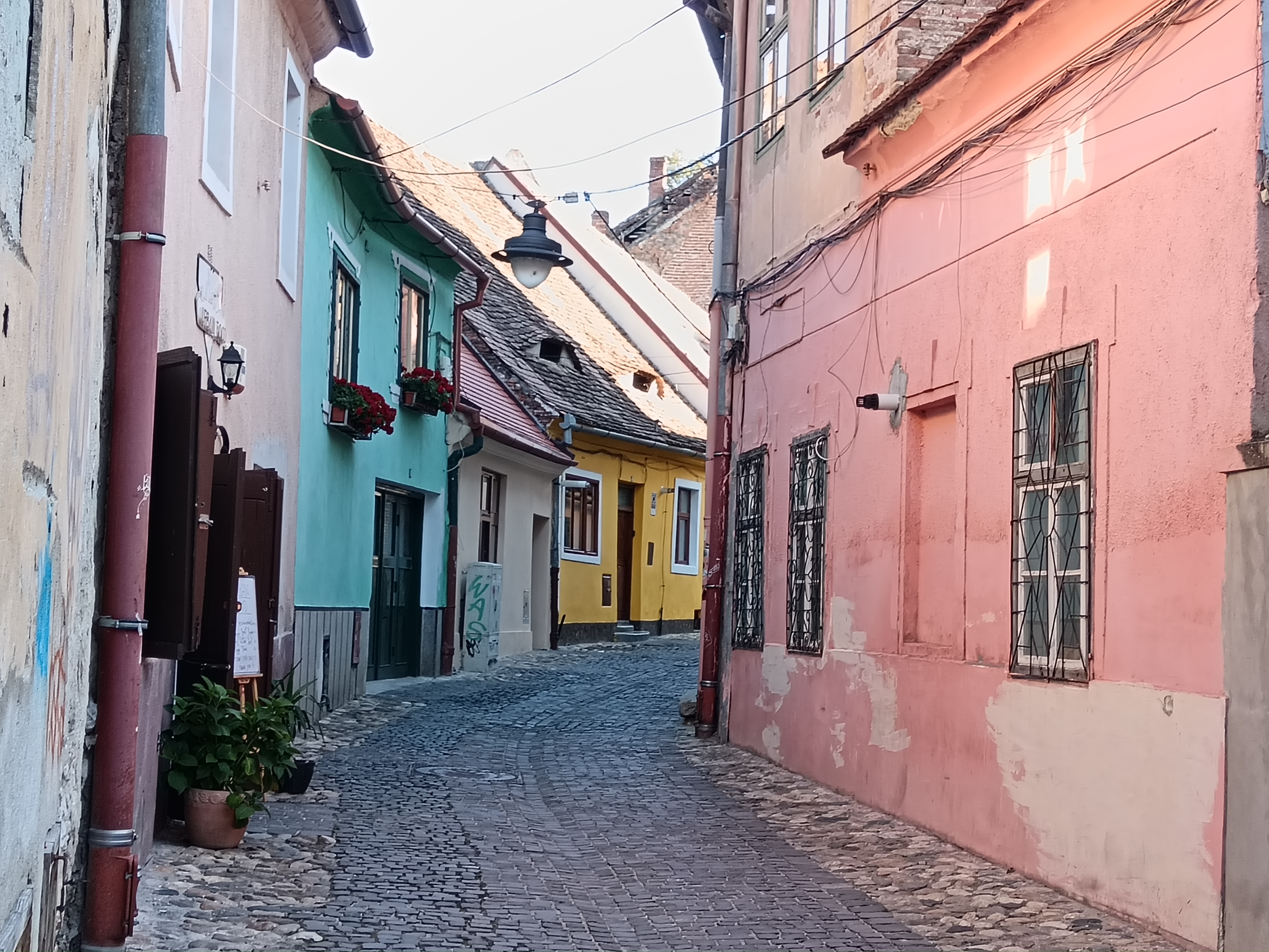 On rejoint la ville médiévale de Sibiu, relativement tôt en fin de journée. Suffisamment de temps donc pour visiter cette ville moyenne, très belle sans être envahie par les touristes. Destination très recommandable, en particulier pour la qualité de la nourriture et de quelques vins locaux, alors que généralement la Roumanie n’est pas une grande destination culinaire. Excellente nuit chez Gabriela, qui a insisté pour que je mette la moto devant la porte de ma chambre.