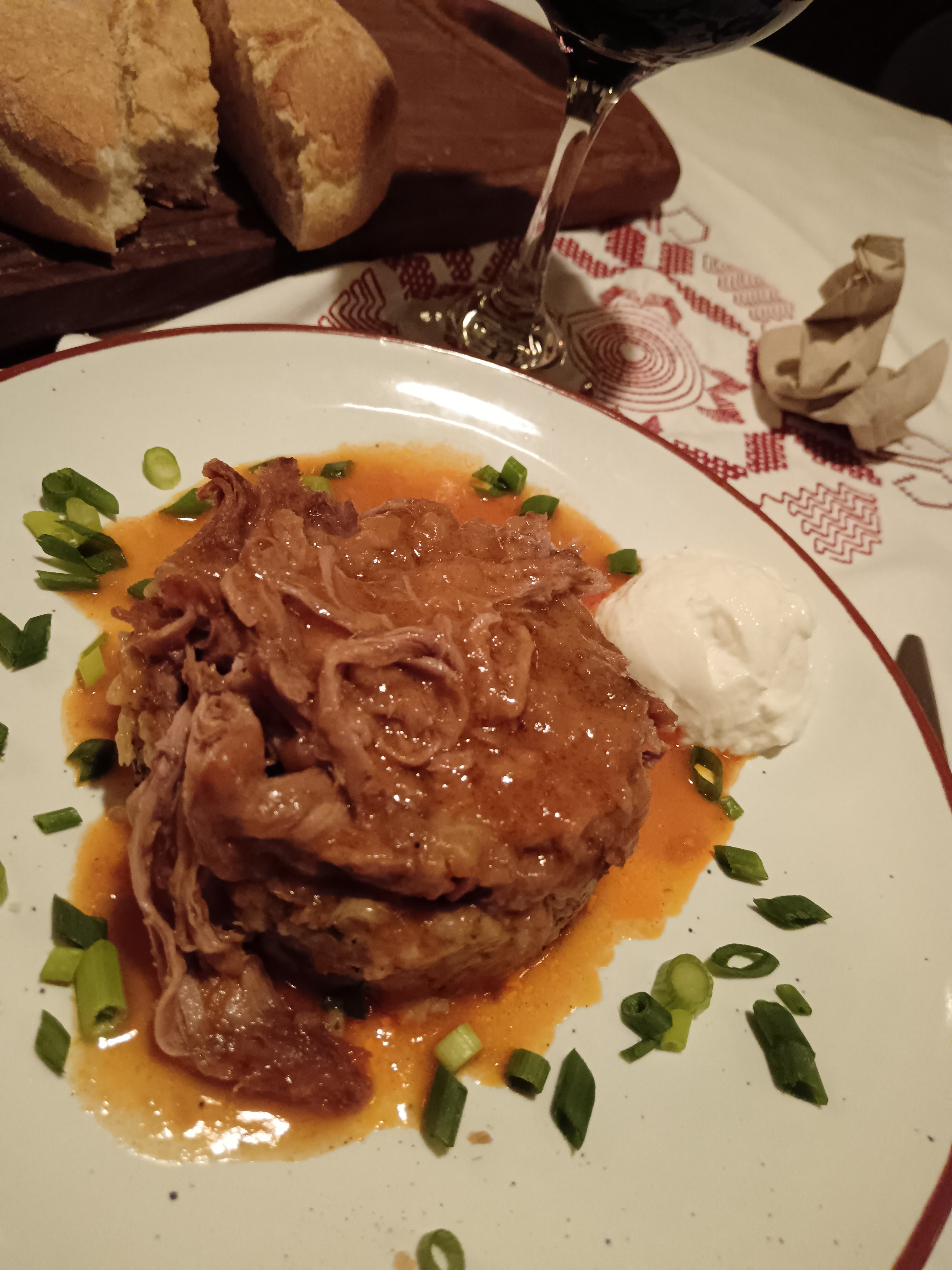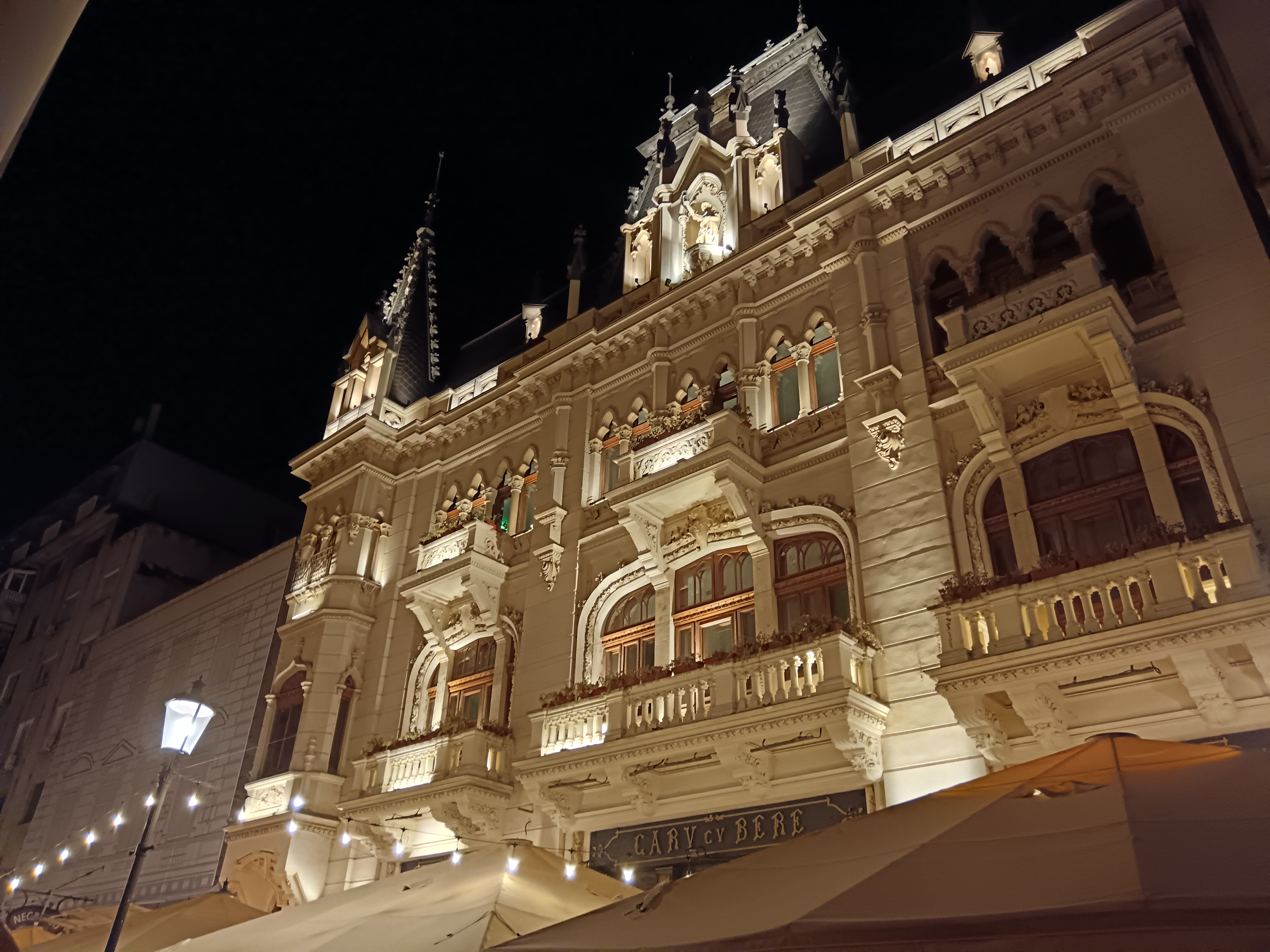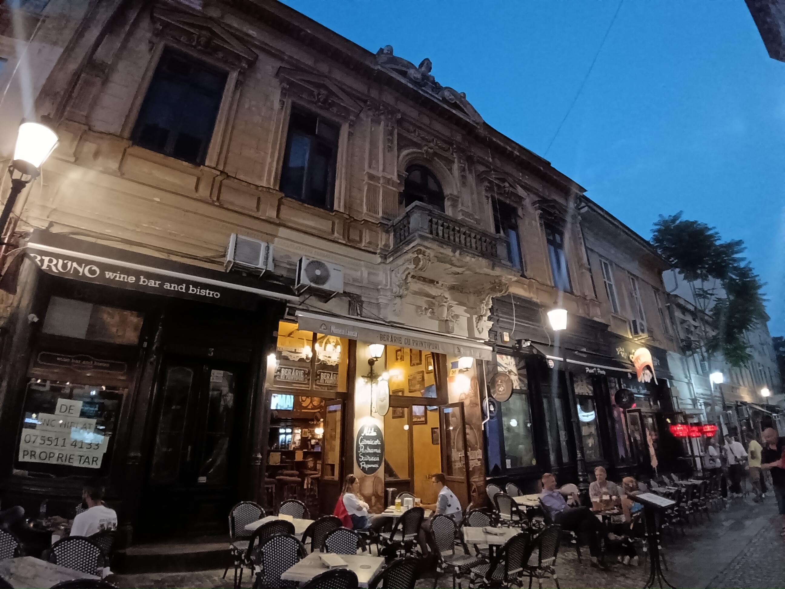 Soirée de déambulation dans le cœur historique de la ville pendant deux ou trois heures, avant de tester brasseurs locaux et nationaux, puis spécialités culinaires, dans le célèbre et immense restaurant Hanu’ lui Manuc, institution historique de la ville. Probablement pas la meilleure offre culinaire de la ville, mais à ne pas manquer pour le folklore animé, à l’intérieur dans des décors boisés magnifiques, comme à l’extérieur dans un immense cloitre arboré.