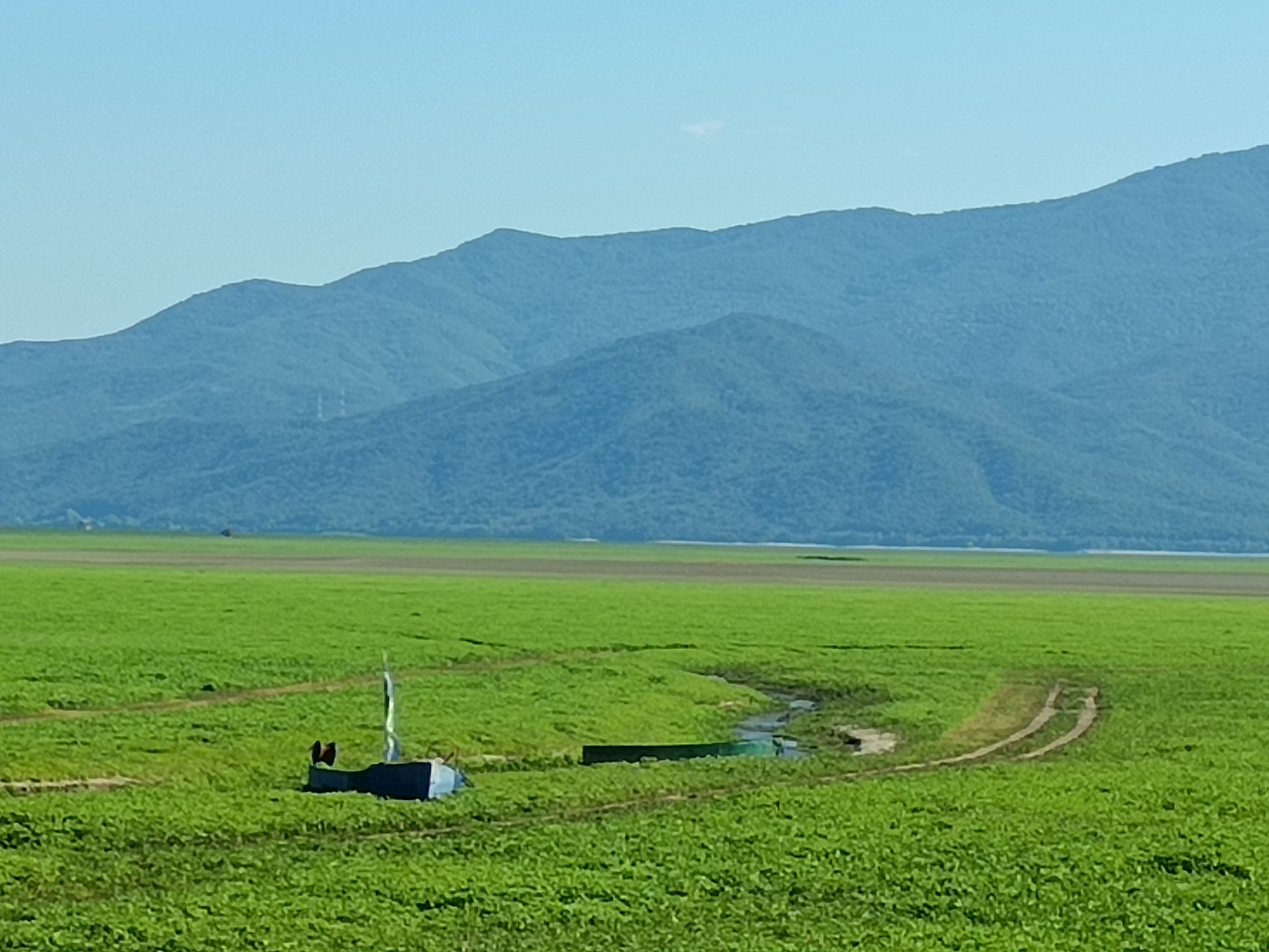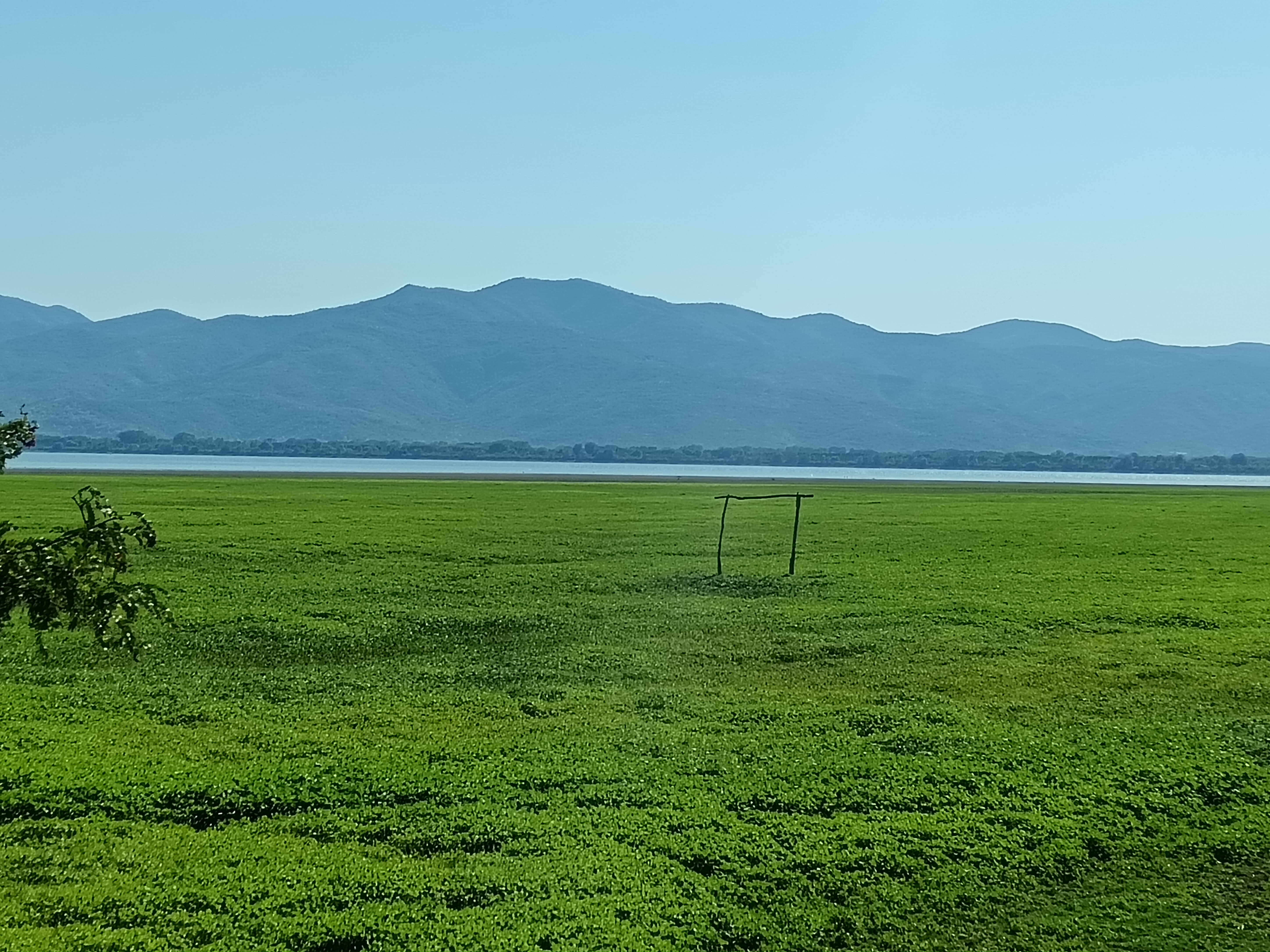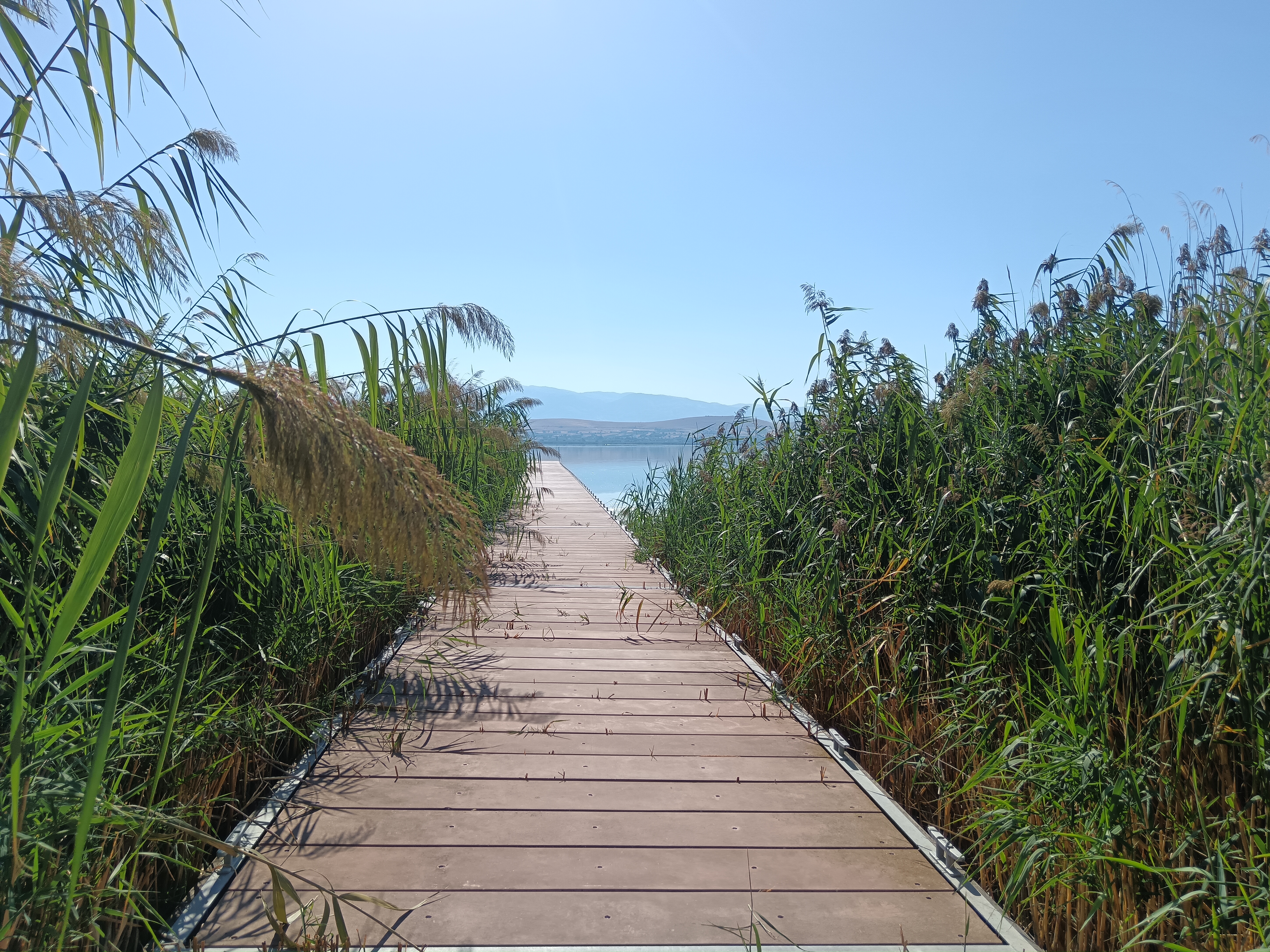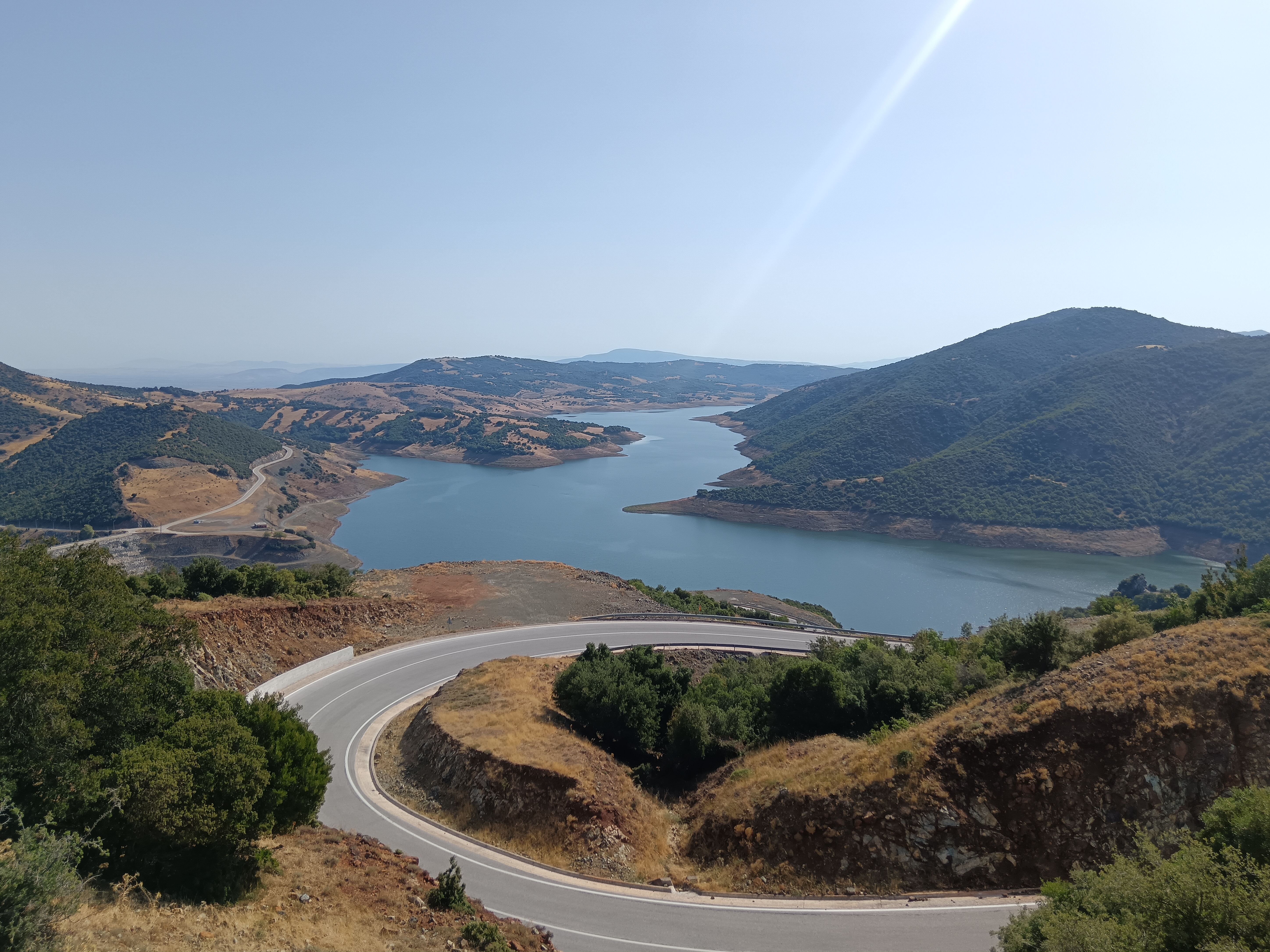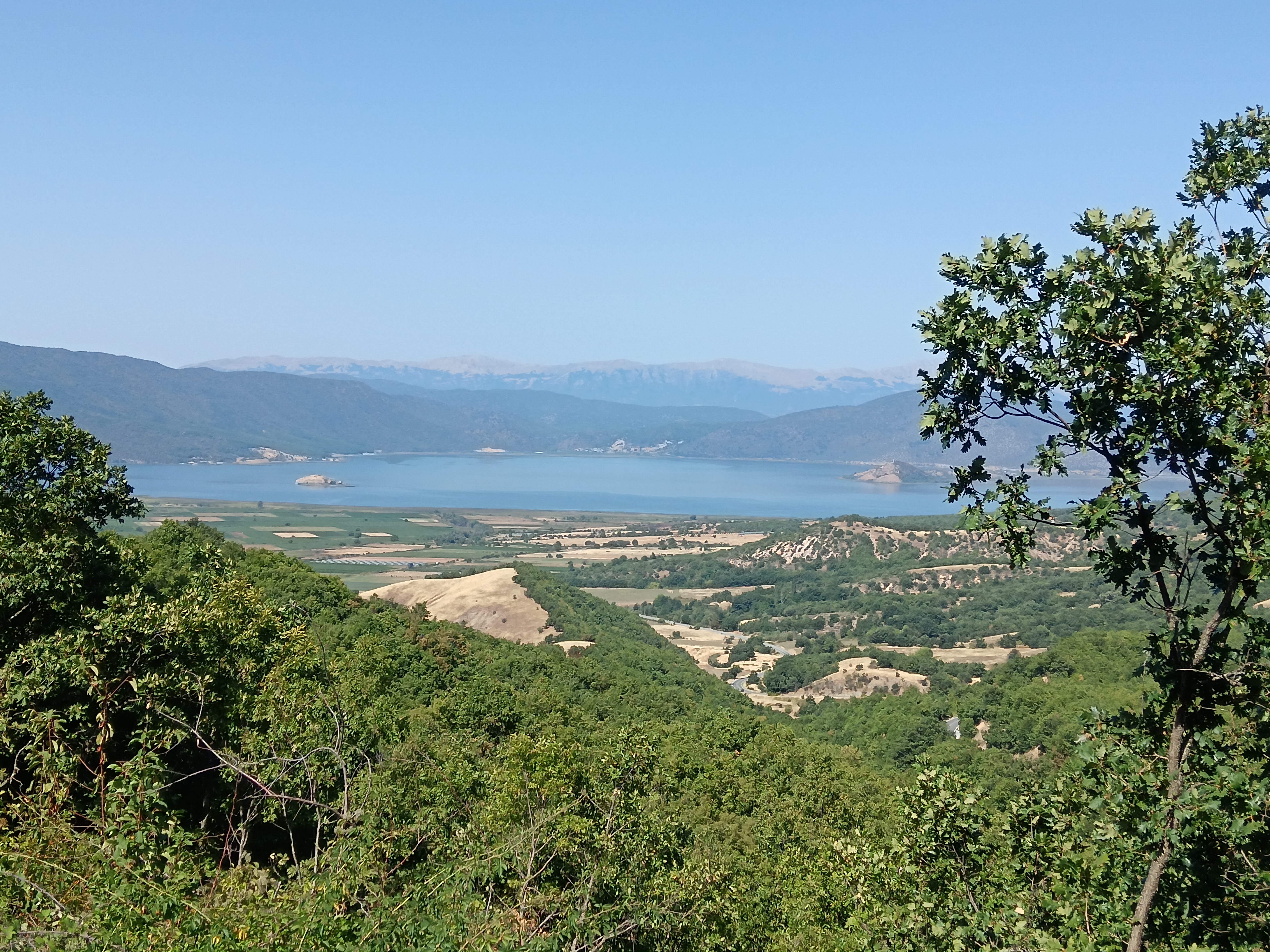 C’est la mi-journée, on accède à la frontière grecque au bout d’une heure trente suite à la traversée d’un dernier long col routier bulgare. Nous sommes à une heure de Thessalonique ou de la Mer de Thrace plein sud par l’autoroute. Mais tel n’est pas mon choix. Passé la frontière, cap plein ouest le long de la chaine de montagne de Radomir qui sépare la Bulgarie et Macédoine d’un côté au nord, et la Grèce au sud. On longe toute la réserve naturelle du lac de Kerkini où flamants roses et pélicans côtoient des troupeaux d’impressionnants bovins noirs, dont la couleur contraste avec le vert des abords de cet immense étang.