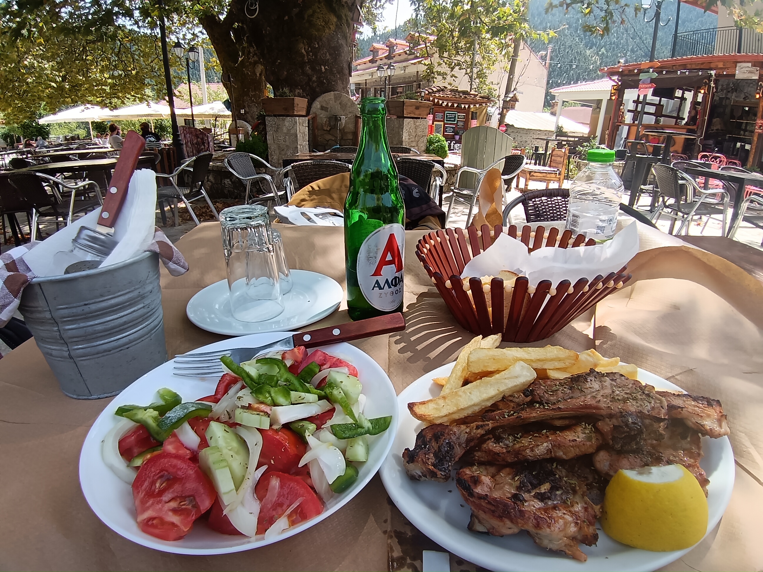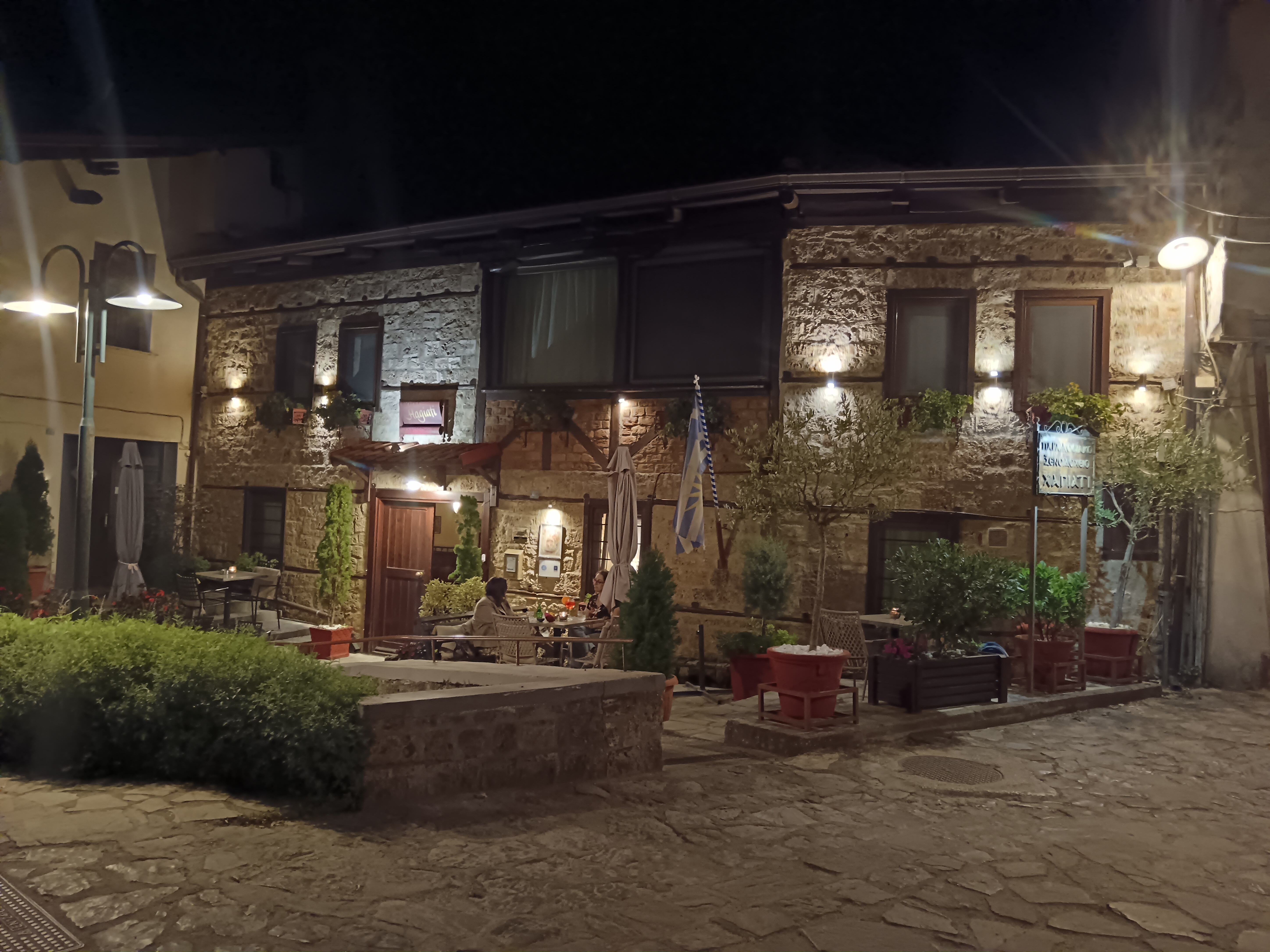 Encore un centaine de kilomètres alors que le soleil est déjà bien bas, pour rejoindre Edessa, une petite ville à flanc de falaise, percée d’une impressionnante cascade en pleine ville, cascade au-dessus de laquelle je dormirais dans une authentique demeure, non sans préalablement explorer de quelles spécialités se garnissaient les assiettes dans la région.