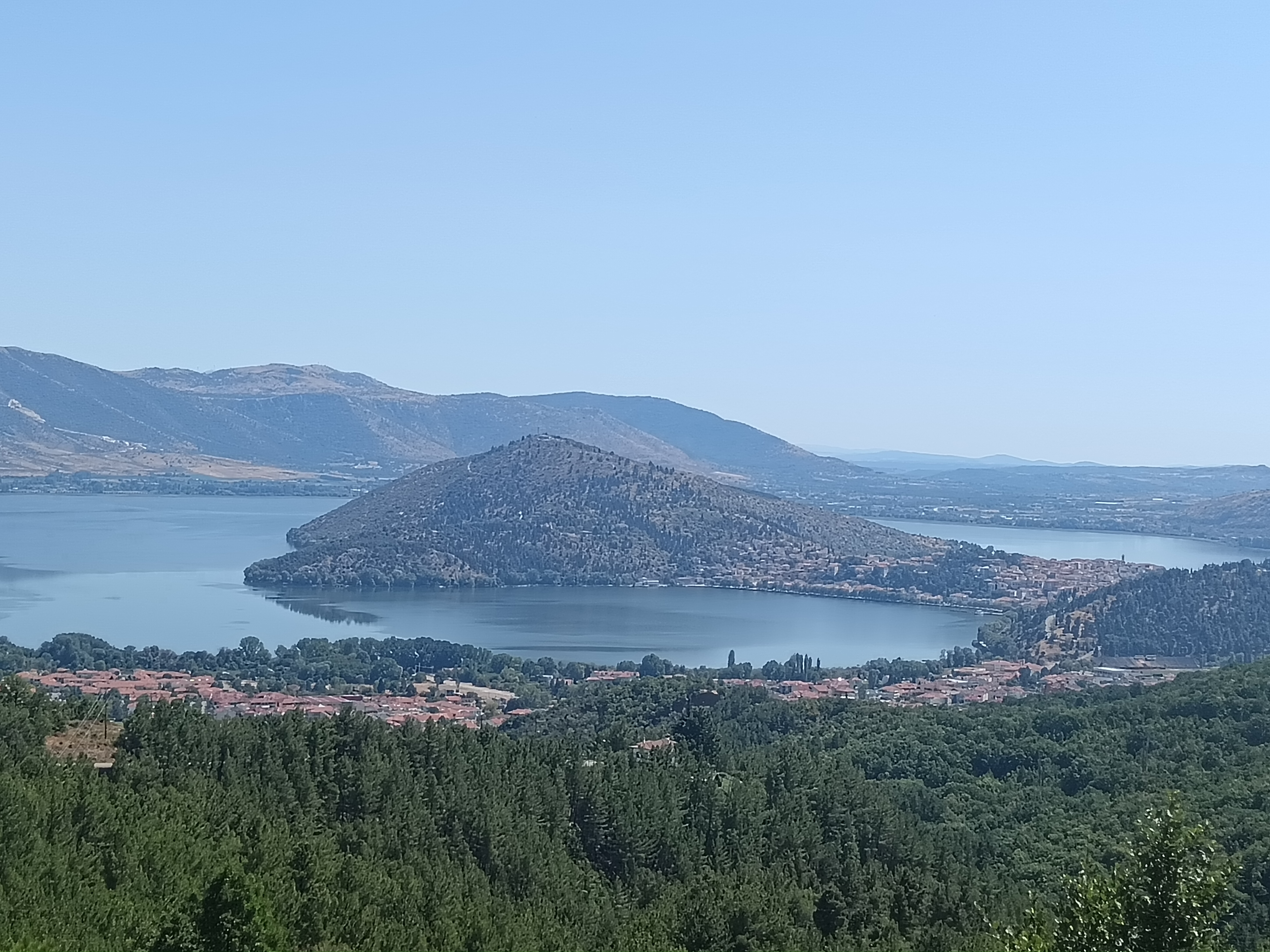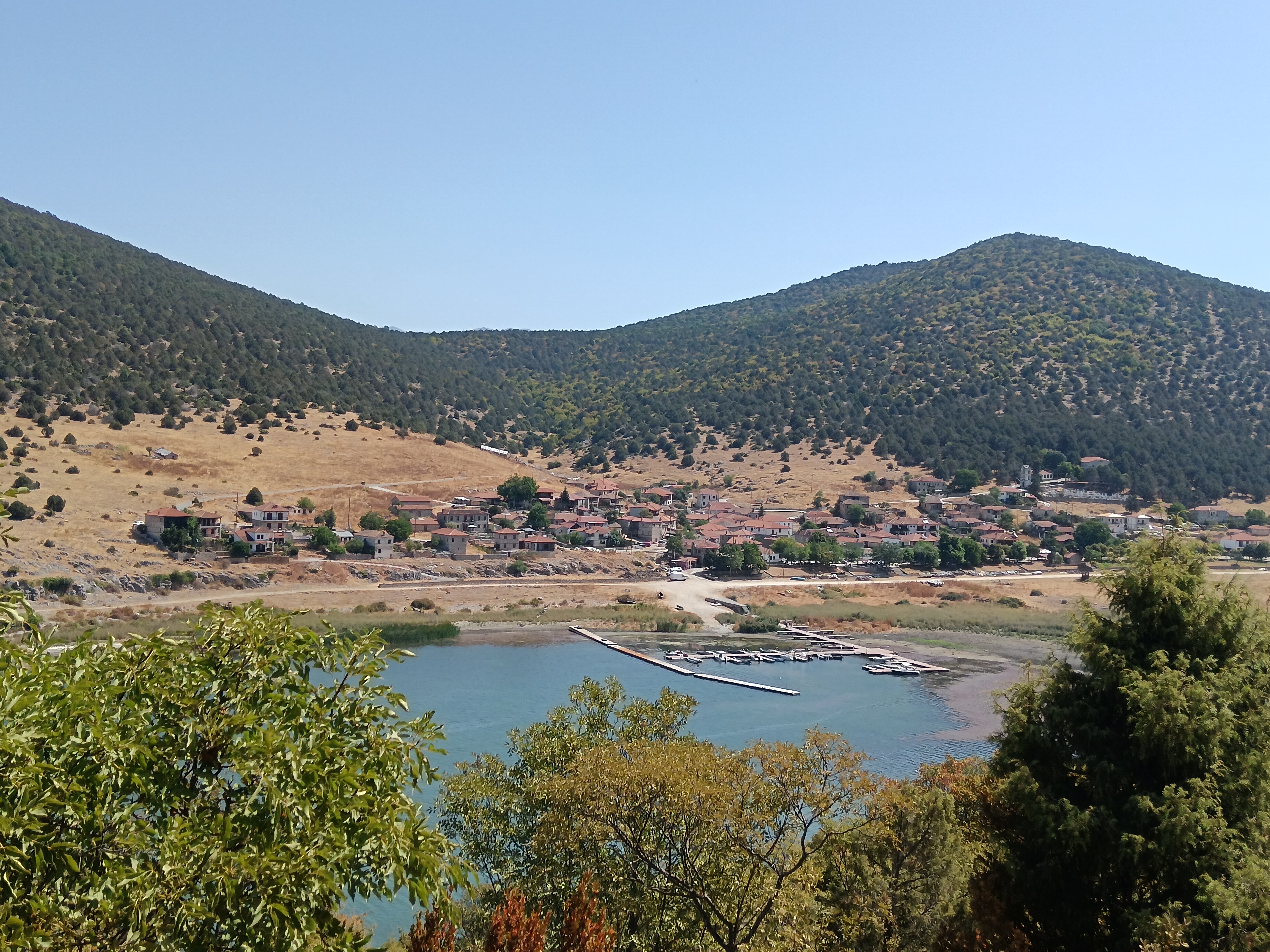 Shooté dès tôt le matin à la feta, on poursuit vers l’ouest, pour une journée « grands lacs », vers la montagne de Voras, à plus de 2000m, après avoir remonté toute une longue vallée d’oliviers. Superbe point de vue sur les lacs naturels de Vegorítida et Petron, très proches l’un de l’autre et pourtant de couleurs si distinctes vus de si haut. On poursuit pour se diriger plus à l’ouest encore, là où Macédoine, Grèce et Albanie se rencontrent au milieu de l’eau, dans le lac de Prespa, mon préféré depuis mes premières incursions dans cette région en 2017. Une sorte de mer intérieure, comme l’est son proche voisin le lac d’Ohrid. On explore les abords du lac par des pistes caillouteuses, desquelles on aperçoit des pêcheurs et des petites chapelles troglodytes uniquement accessibles en bateau. L’occasion de gouter encore une fois la truite endémique de ces deux lacs, cuisinée par des restaurateurs pêcheurs, évidemment comme toujours en Grèce, cerné par des chats, mais aussi ici par quelques poules libres en pleine nature. Des touristes par ici ? Très peu. Loin de tout aéroport, en plein centre des balkans, pas d’autoroutes à moins de 200km. Un paradis.