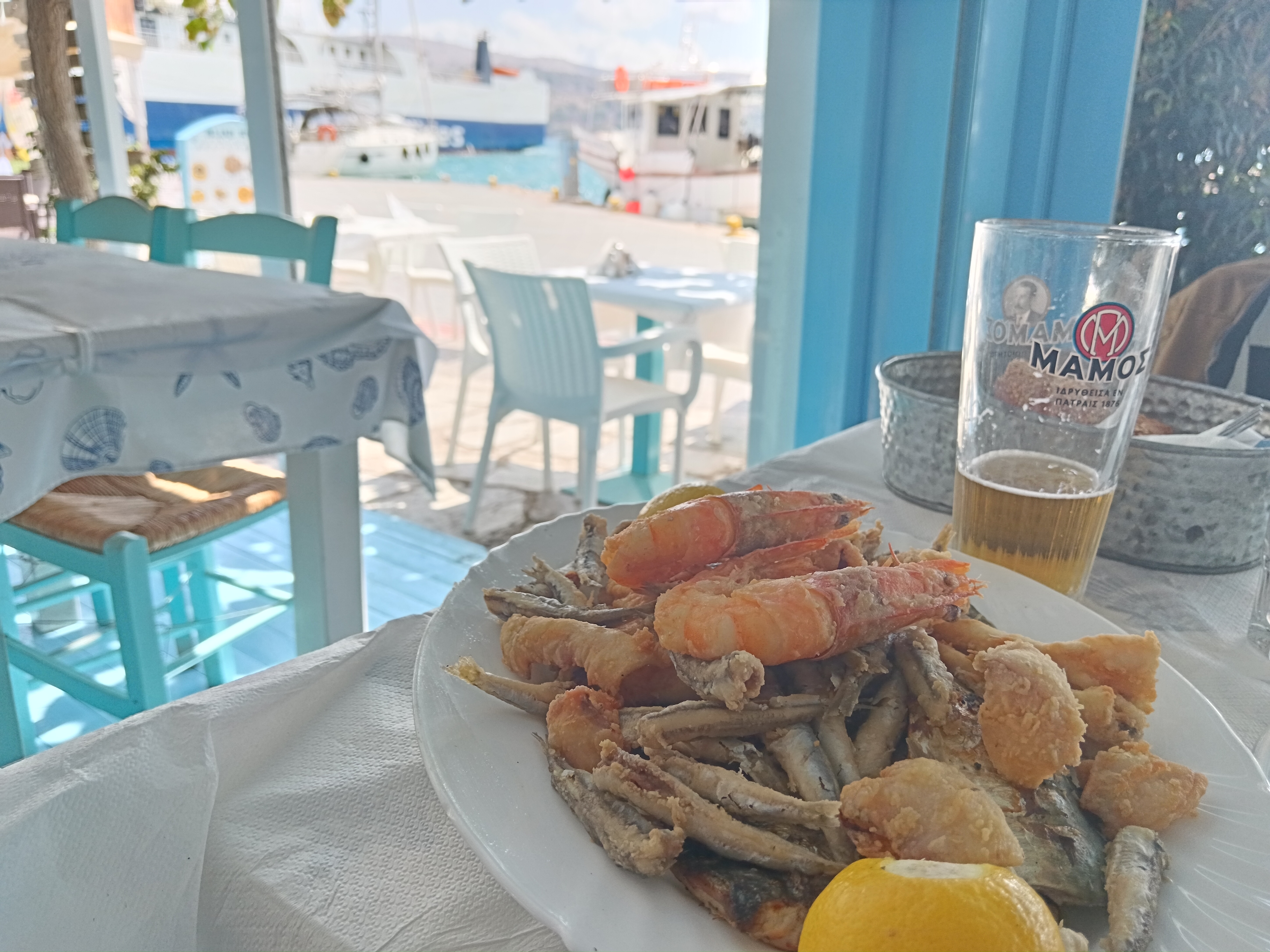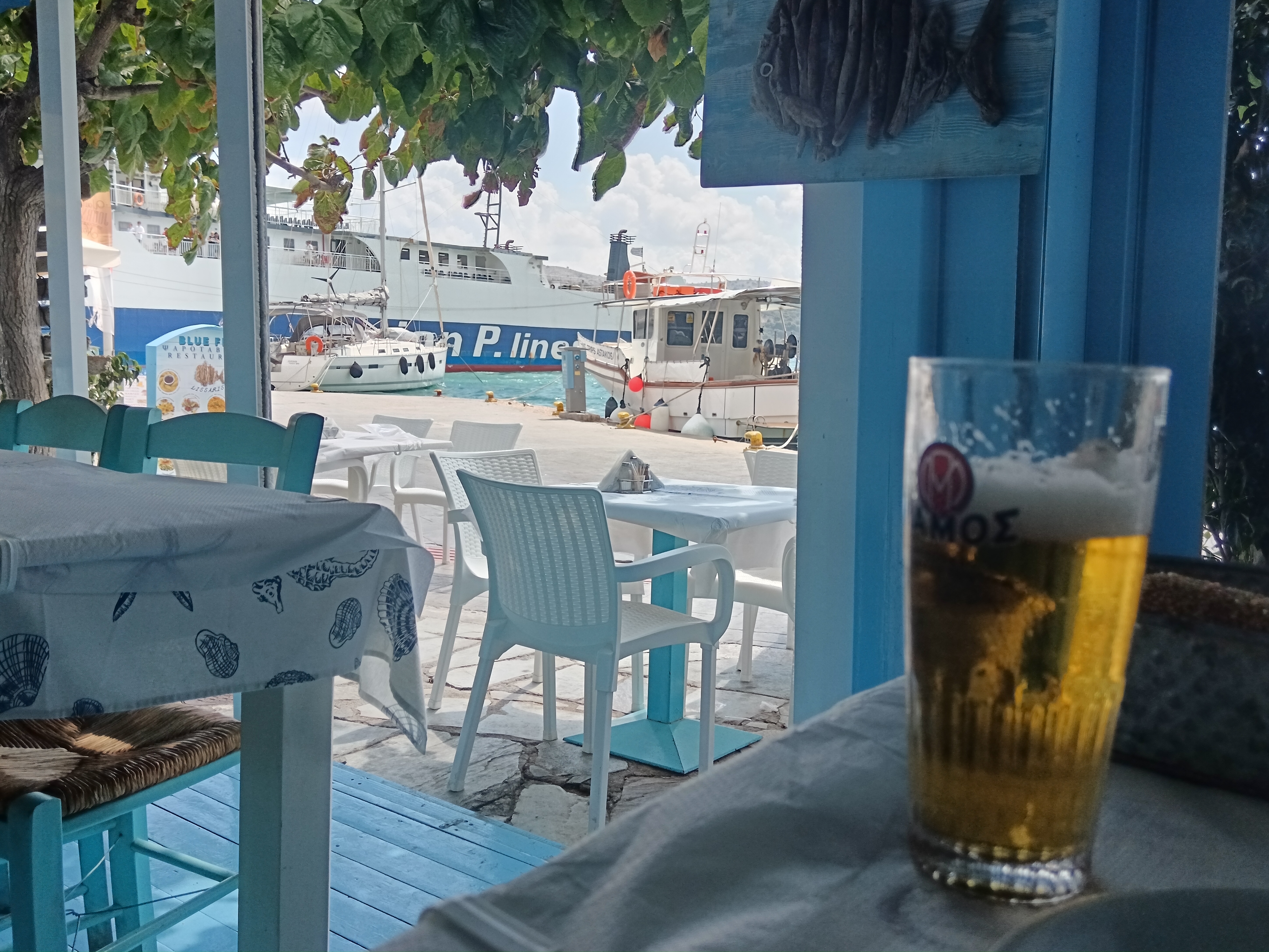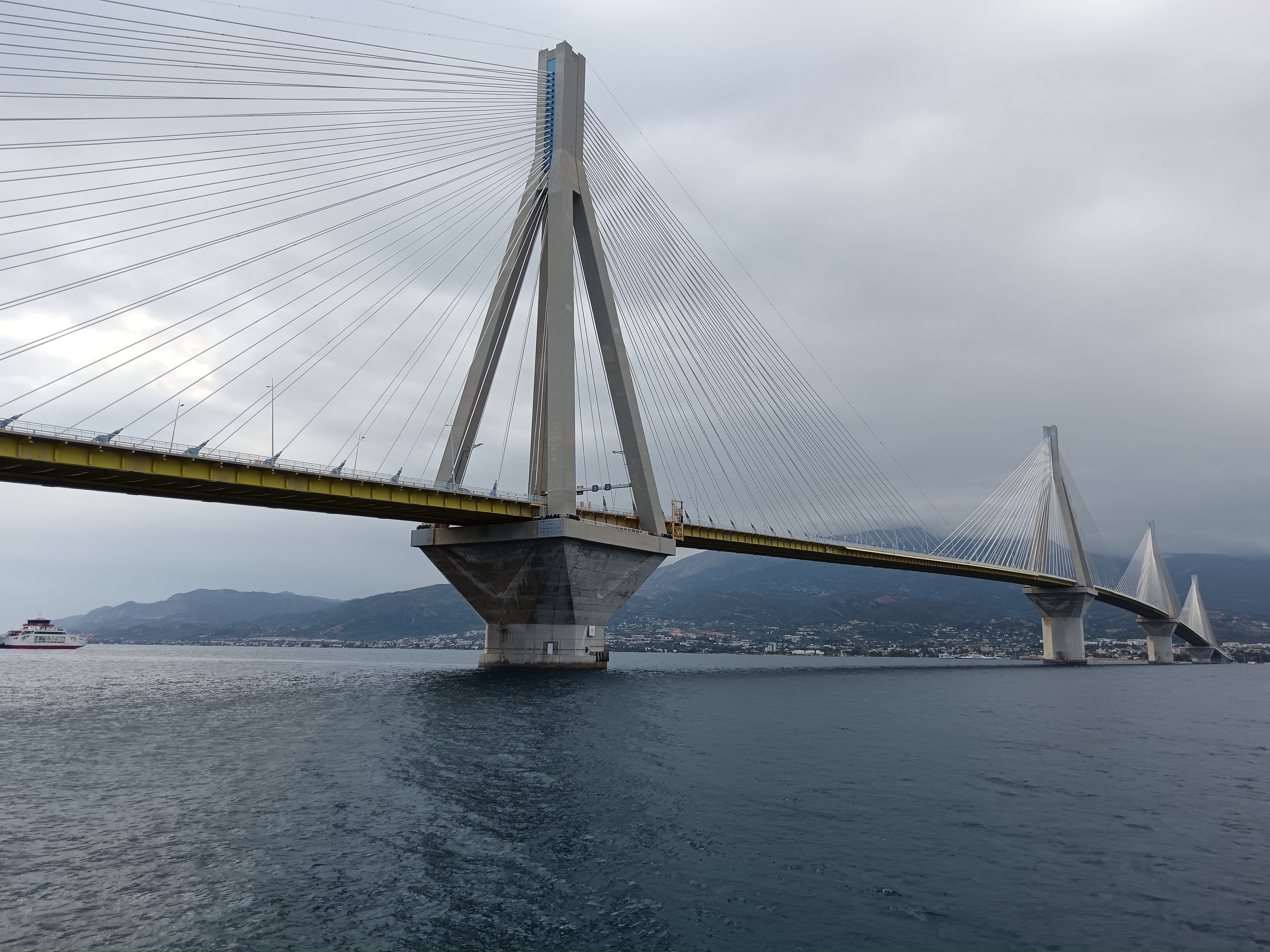 Une journée sur le thème du bleu. Cap vers l’ouest, alors que nous sommes le plus au sud du périple, le long du golfe de Corinthe. On roule le long de la mer, entre dans de petits villages de pêcheurs, jusqu’à l’impressionnant pont qui permet de connecter les deux rives du golfe au niveau de la ville de Patras. Mais nous préférons poursuivre encore vers l’ouest, la partie sud de la Grèce sera pour un prochain périple. On parvient dans une sorte de Camargue grecque au niveau de l’étonnante ville de Aitoliko, cernée par les eaux, et dont le point culminant doit se situer à 5cm. On retrouve plus loin le paysage montagneux avec une route de corniche durant environ une centaine de kilomètres remontant vers le nord le long de la mer ionienne. Arrêt déjeuner circuit court au port du village de Astakos. Depuis le départ 17 jours plus tôt, une seule baignade, en Croatie. Faute, erreur, à corriger. J’ai repéré en amont du voyage trois ou quatre endroits que j’imagine peu fréquentés. J’en teste un, 3 personnes. Photos et je repars. J’en teste un autre, en empruntant une piste descendante durant trois kilomètres, peu recommandable en voiture ordinaire. Mer turquoise, cailloux blancs, des iles en face (sinon, ça serait pas une baignade en Grèce). Seul (on est déjà le 31 aout). Deux heures de baignade et bronzette.