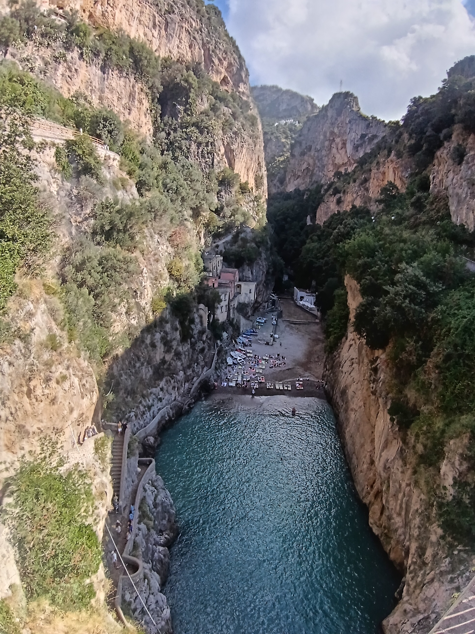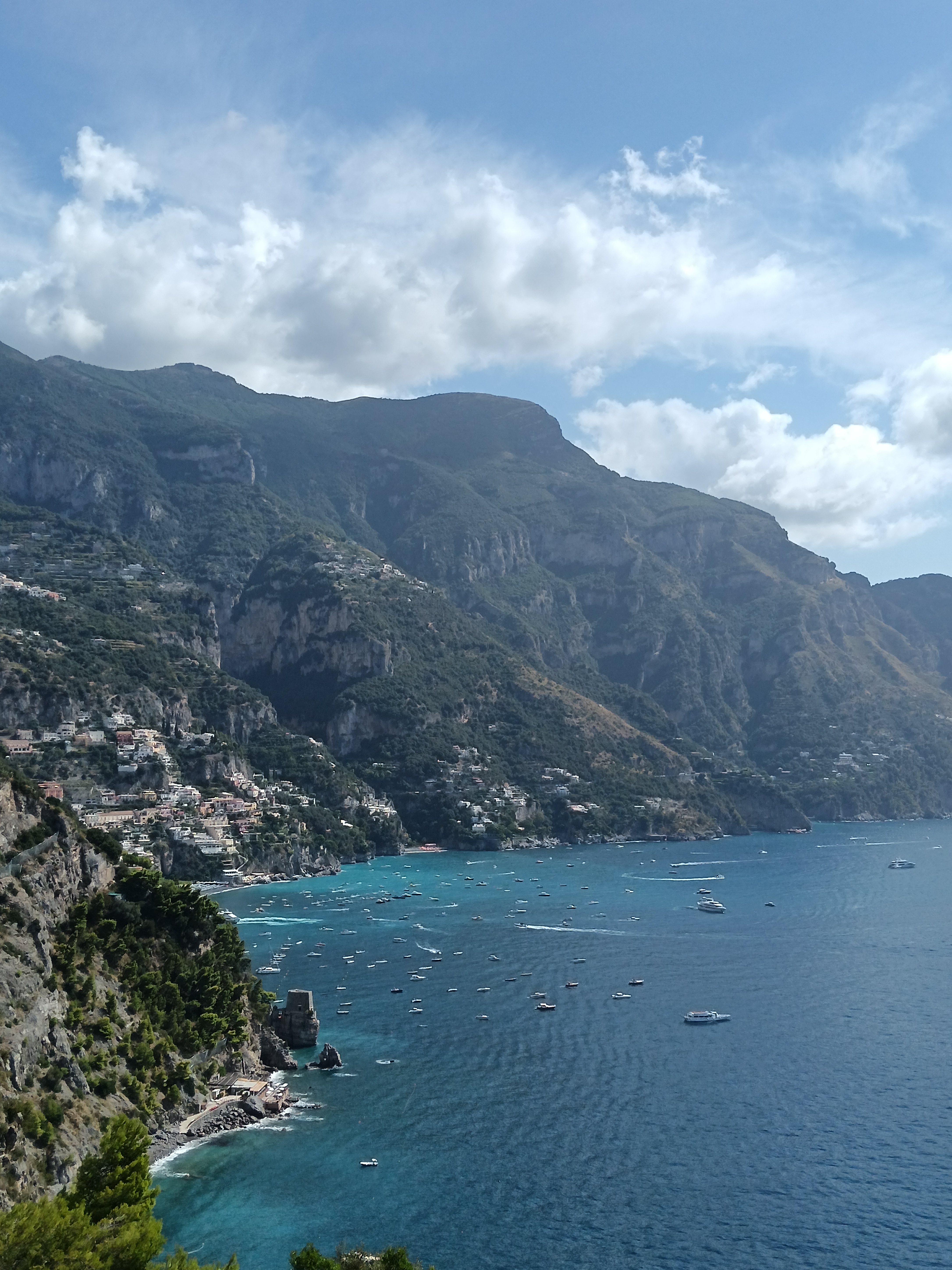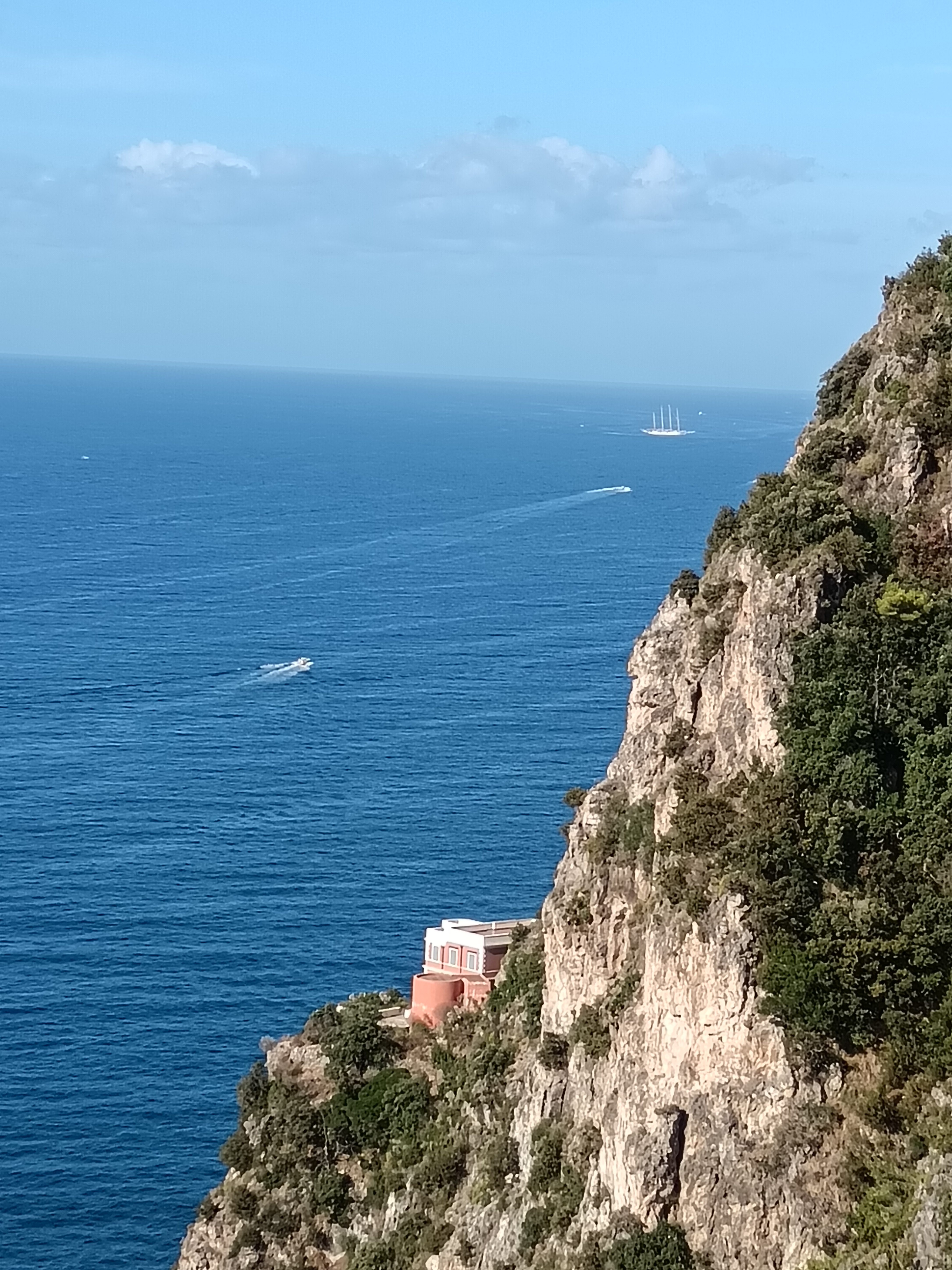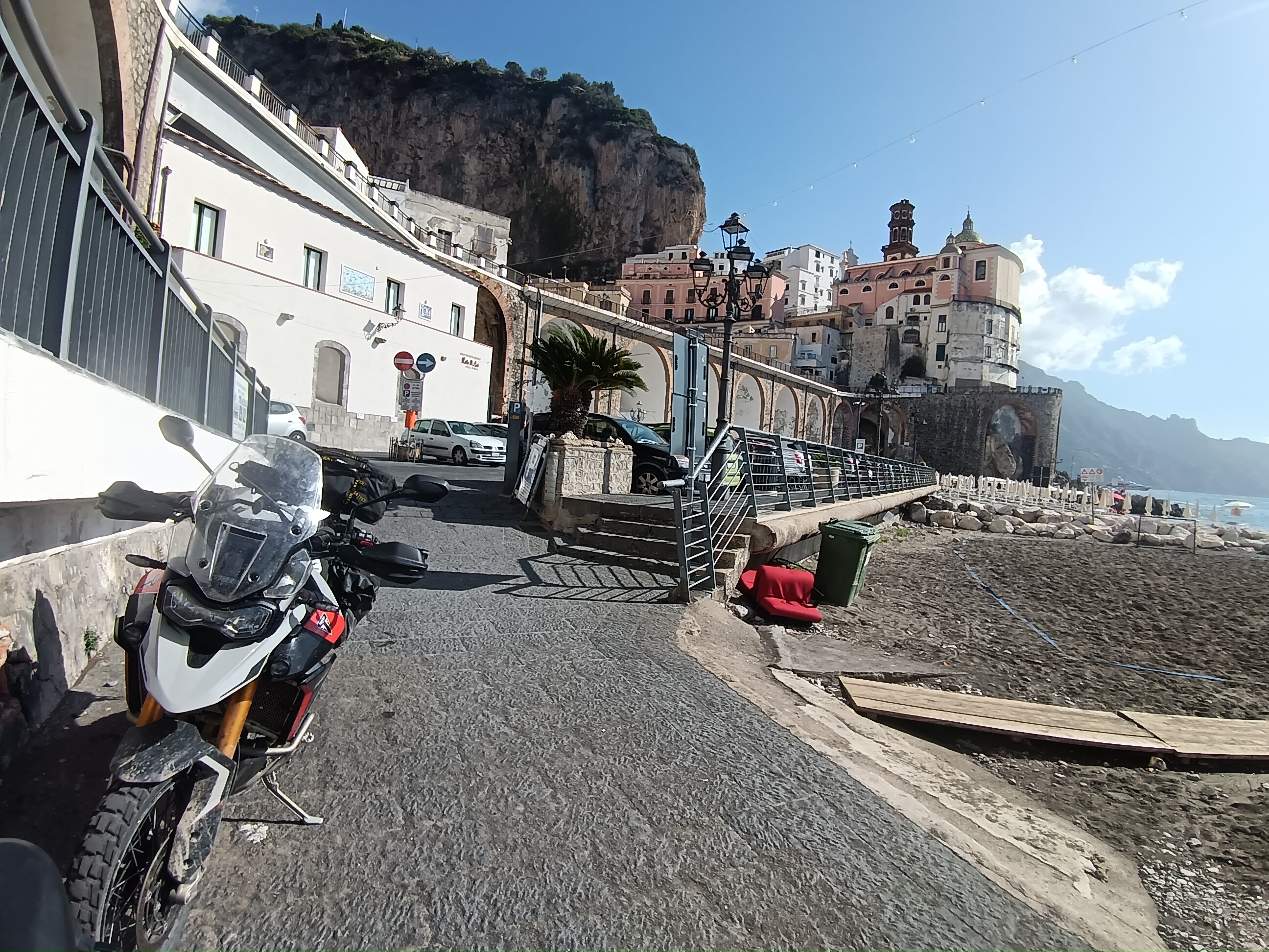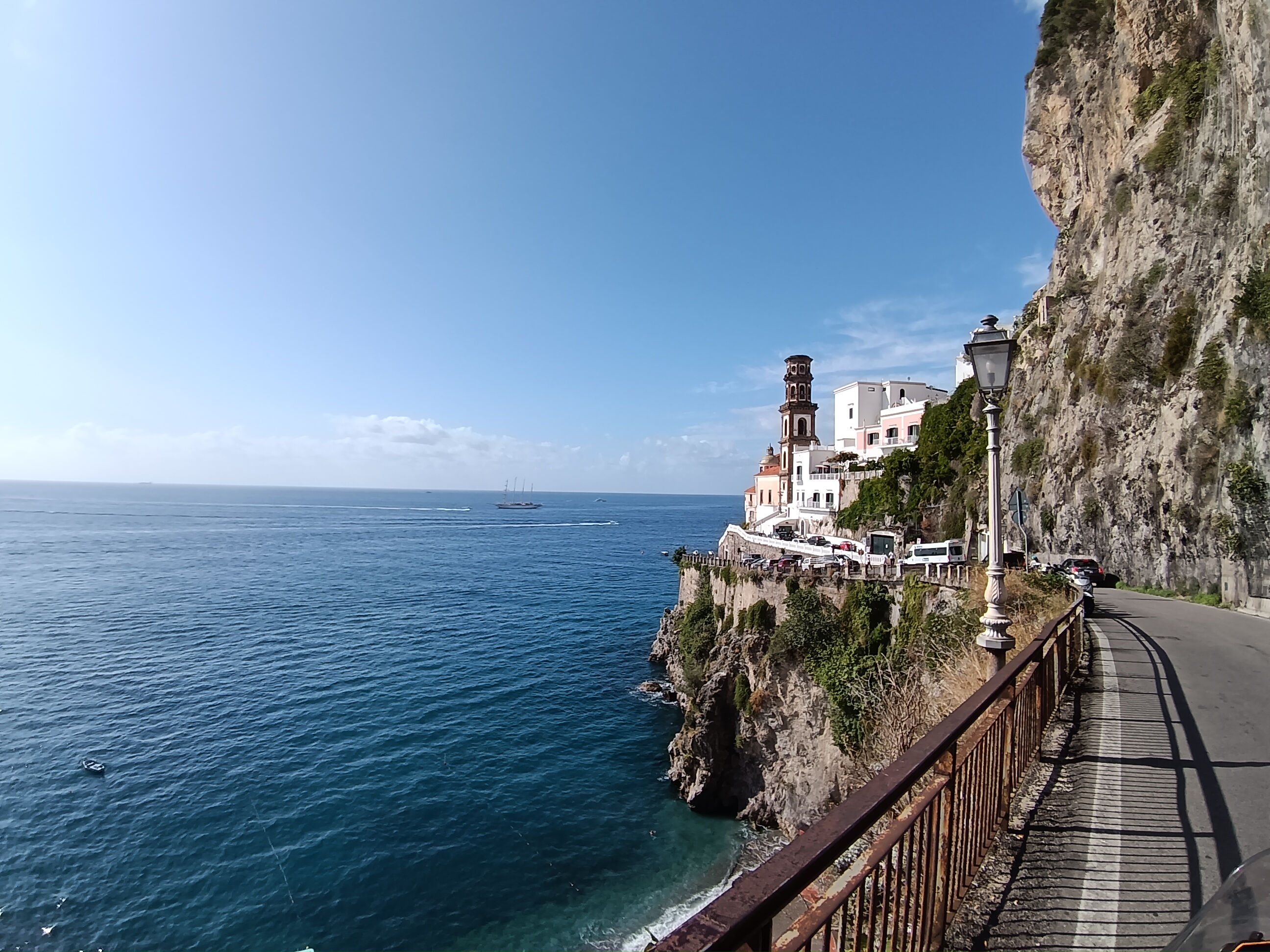 9 profondes heures de sommeil. Me voilà totalement requinqué ! Si il y a des lieux incontournables en Europe, la côte amalfitaine en est un. Et pourtant c’est une première pour moi. Une fois passé Salerno et son port, on entame cette route côtière en corniche durant une cinquantaine de kilomètre d’ouest en est. Même à moto, et en adoptant le mode de conduite des locaux à 2 roues, il faut compter deux bonnes heures. C’est tortueux à souhait, les paysages sont inimaginablement exceptionnels. Il faut prendre quelques risques à doubler les quelques touristes restants (nous sommes le 3 septembre), sous peine d’y passer la journée. C’est assez indescriptible avec des mots en fait, c’est majestueux architecturalement, géologiquement. Et puis c’est vivant, bruyant, odorant (citron, iode). Si la plaine saison est certainement à éviter, à moins d’accéder à un des villages à bateau, se poser là, et plus bouger, ça se tente hors pleine saison, je ne regrette pas.