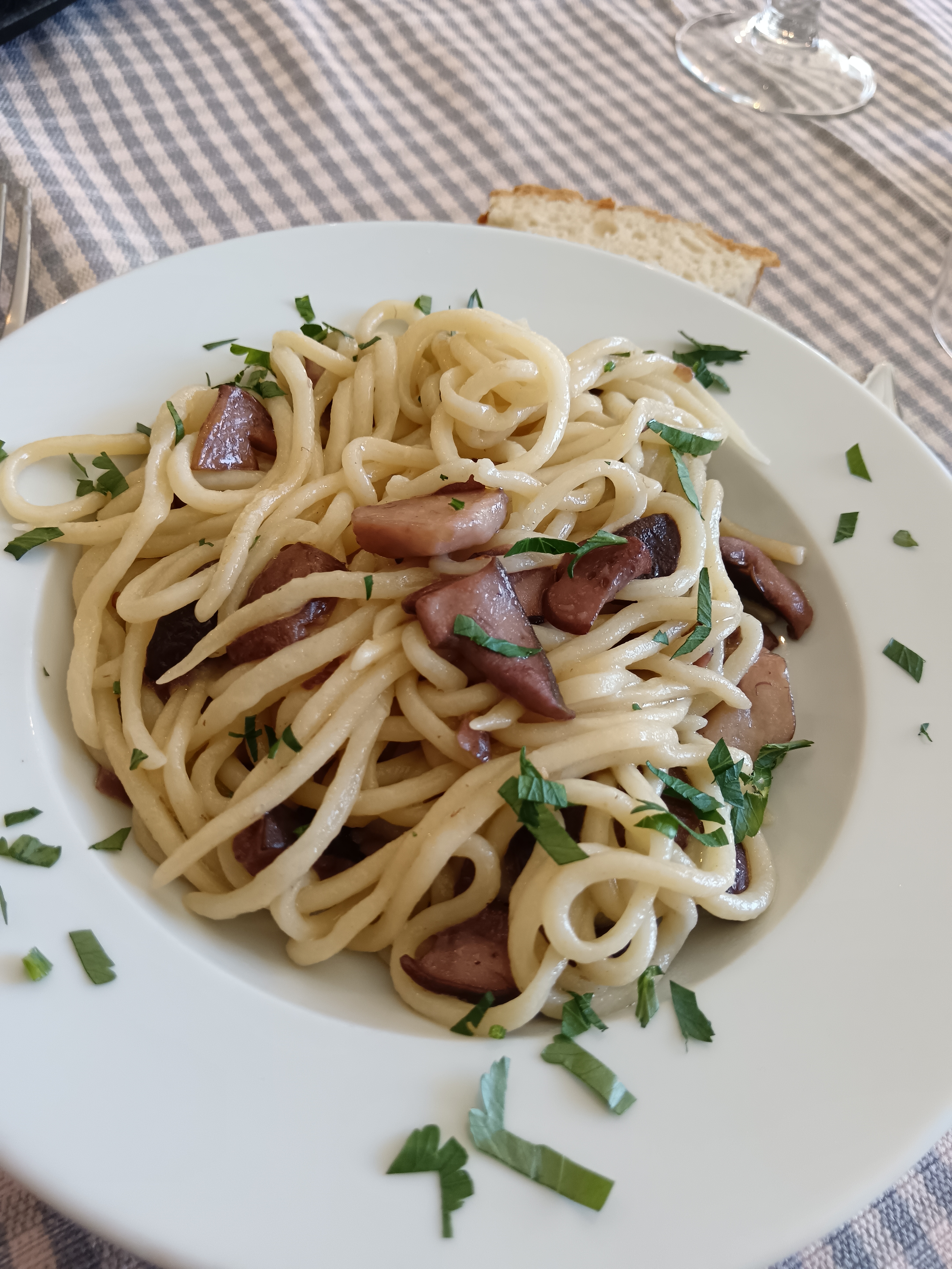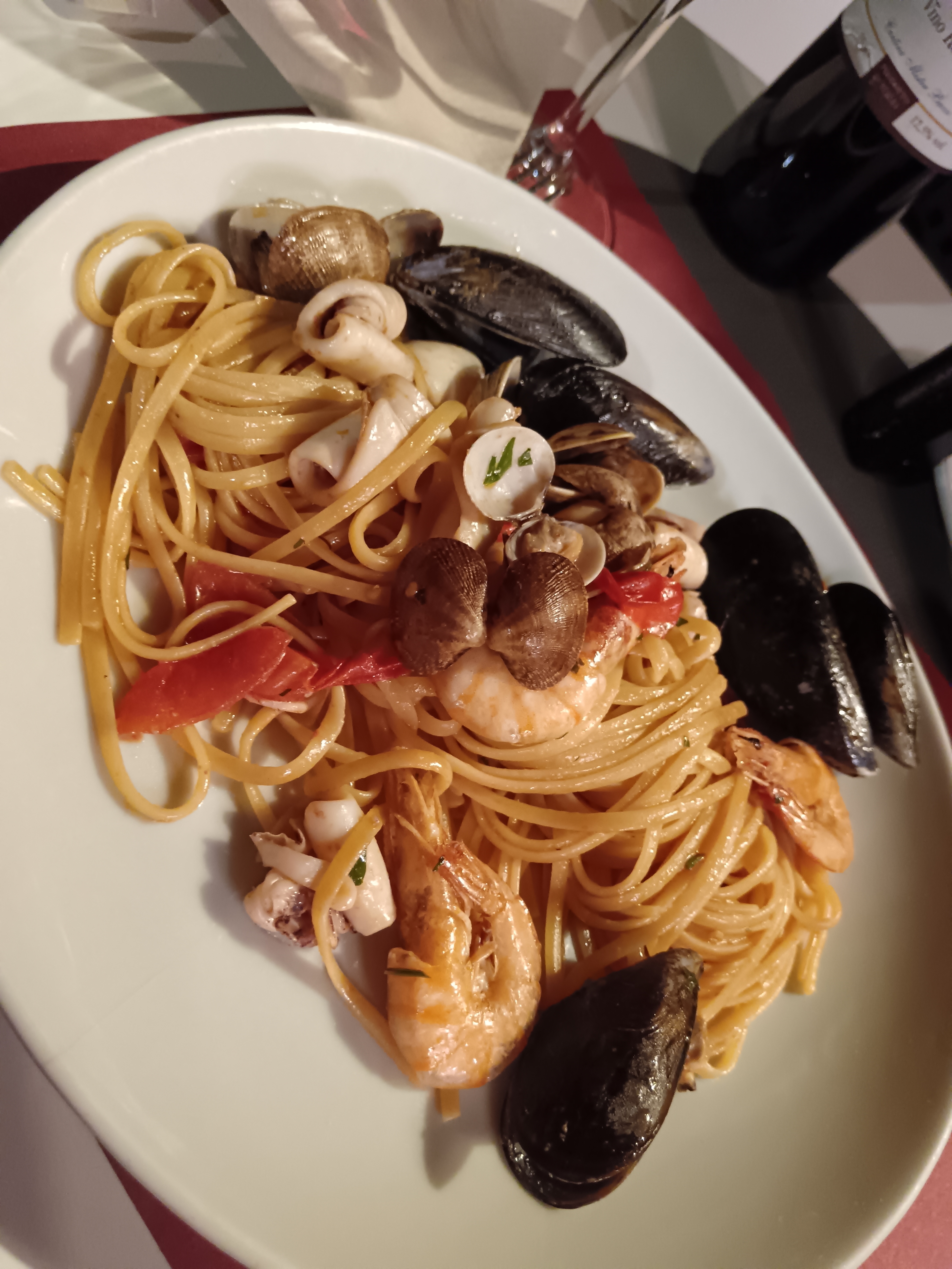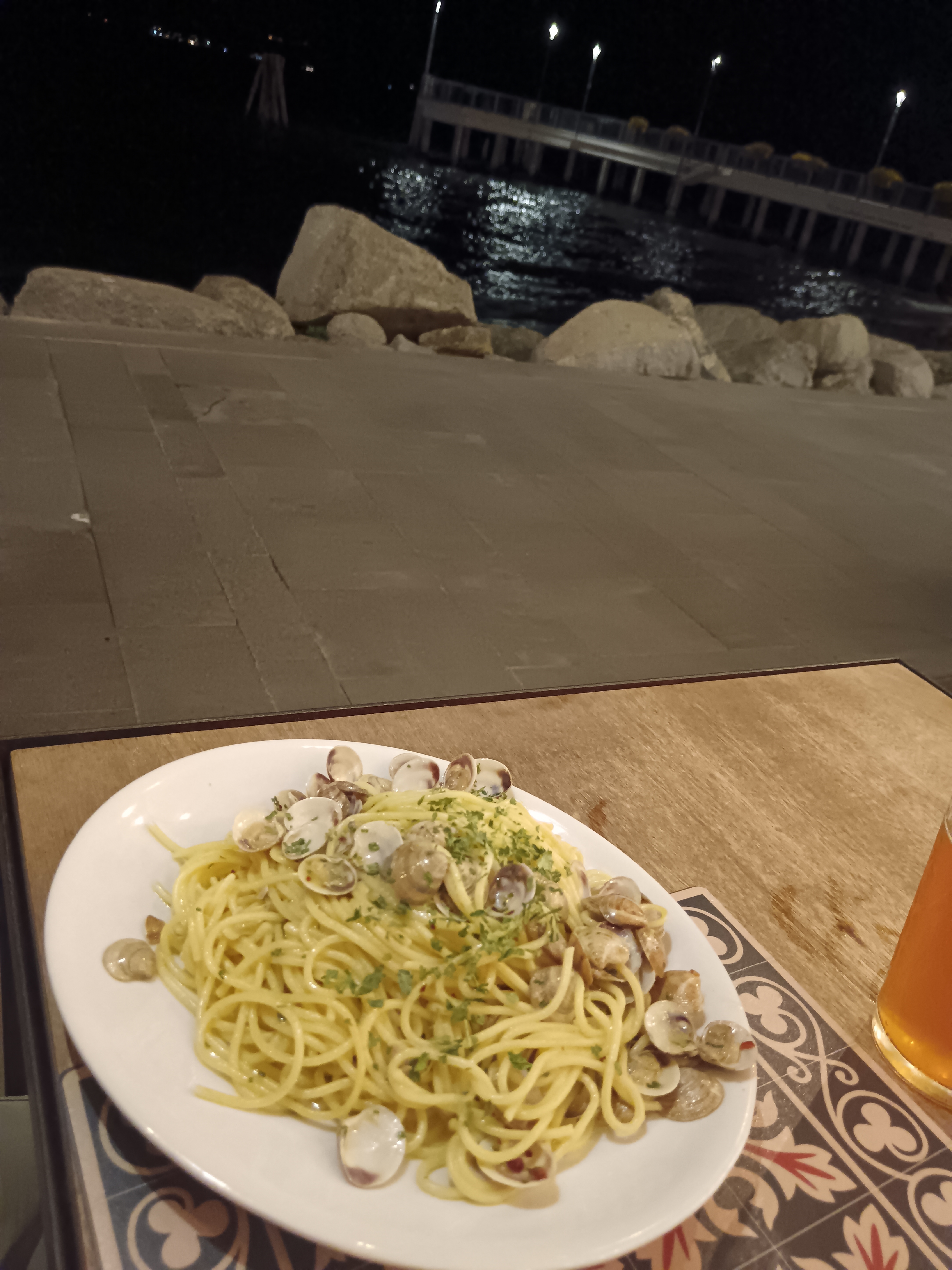 La nuit est déjà tombée, il me reste 70km pour rejoindre ma chambre avec vue, à Anguillera Sabiaza, au bord d’un magnifique lac – le lac de Bracciano – à une trentaine de kilomètres au nord de Rome. Sur le port, houblons locaux et Spaghetti alle vongole. OK, il n’y pas de palourdes dans un lac d’eau douce volcanique, mais ce plat, c’est ma came, quand j’en vois, j’en veux. Entorse au circuit court.