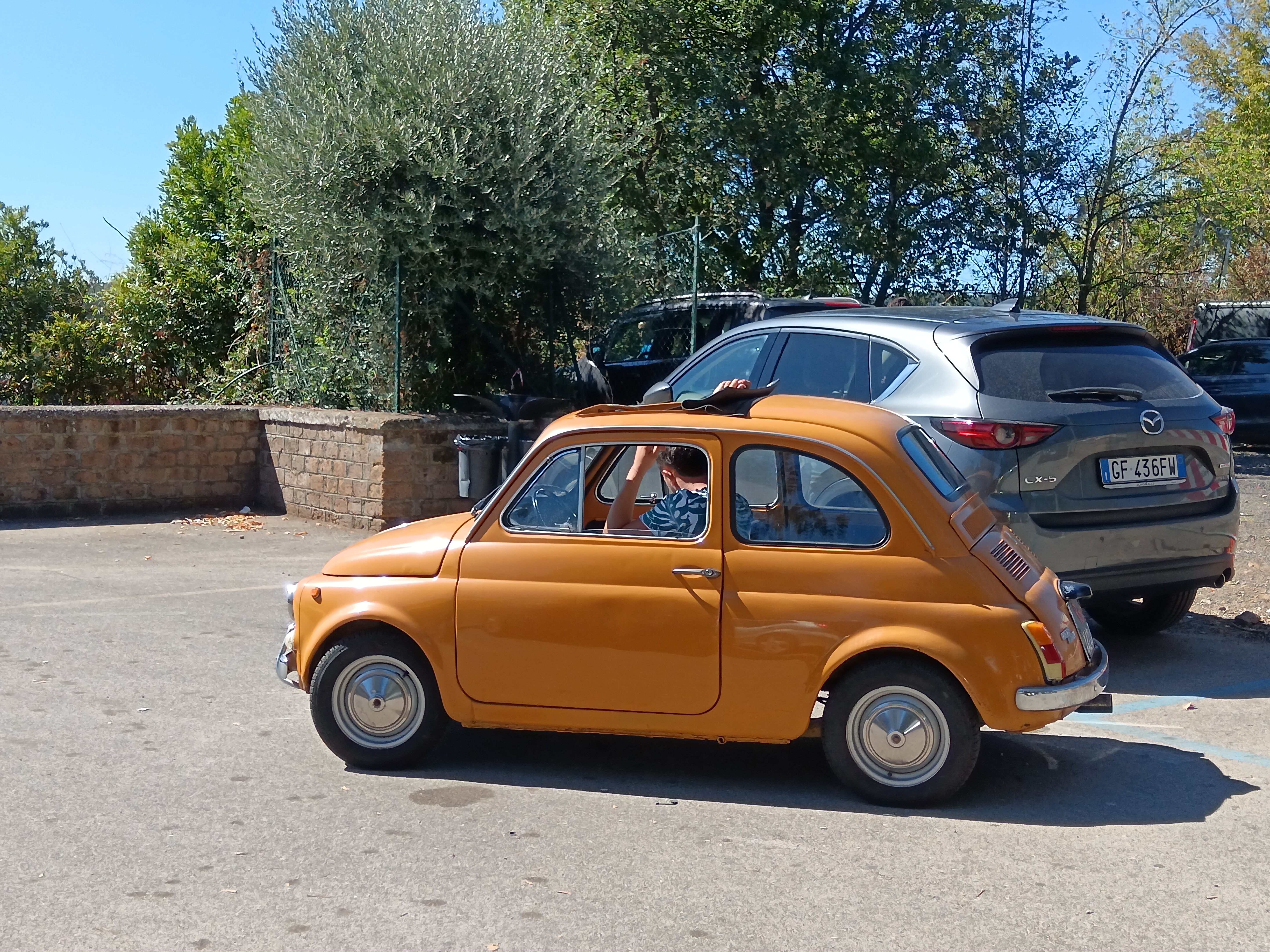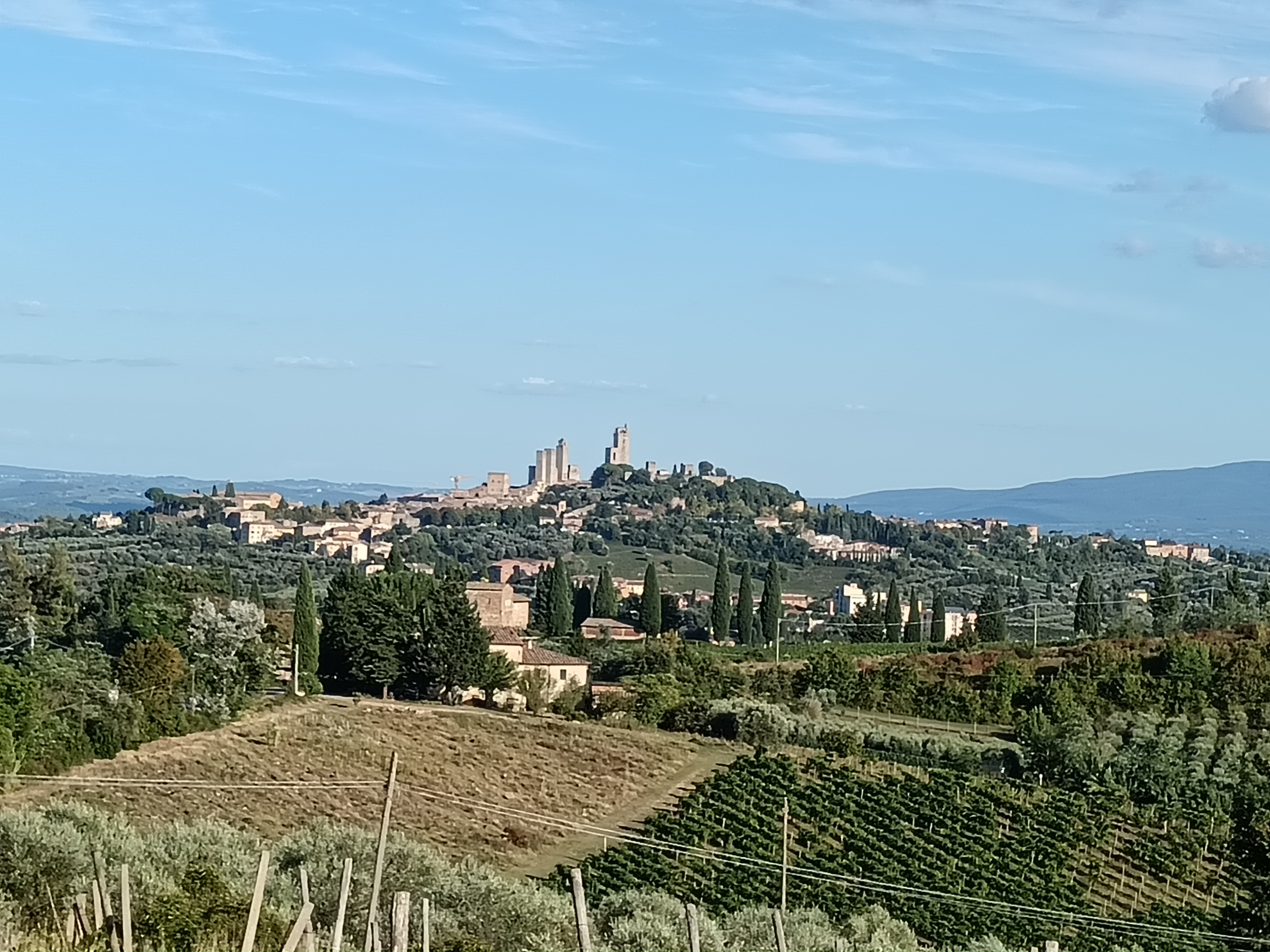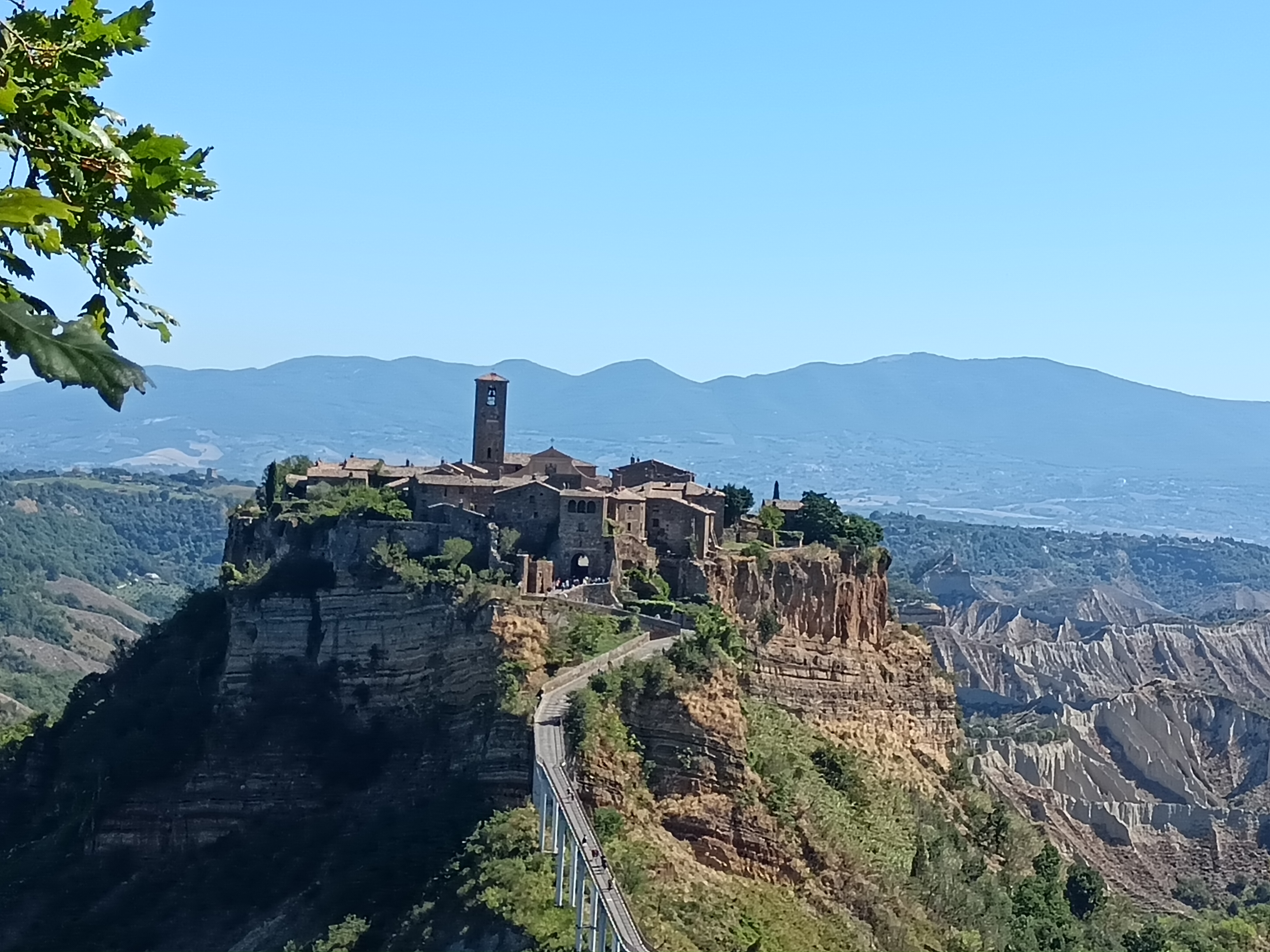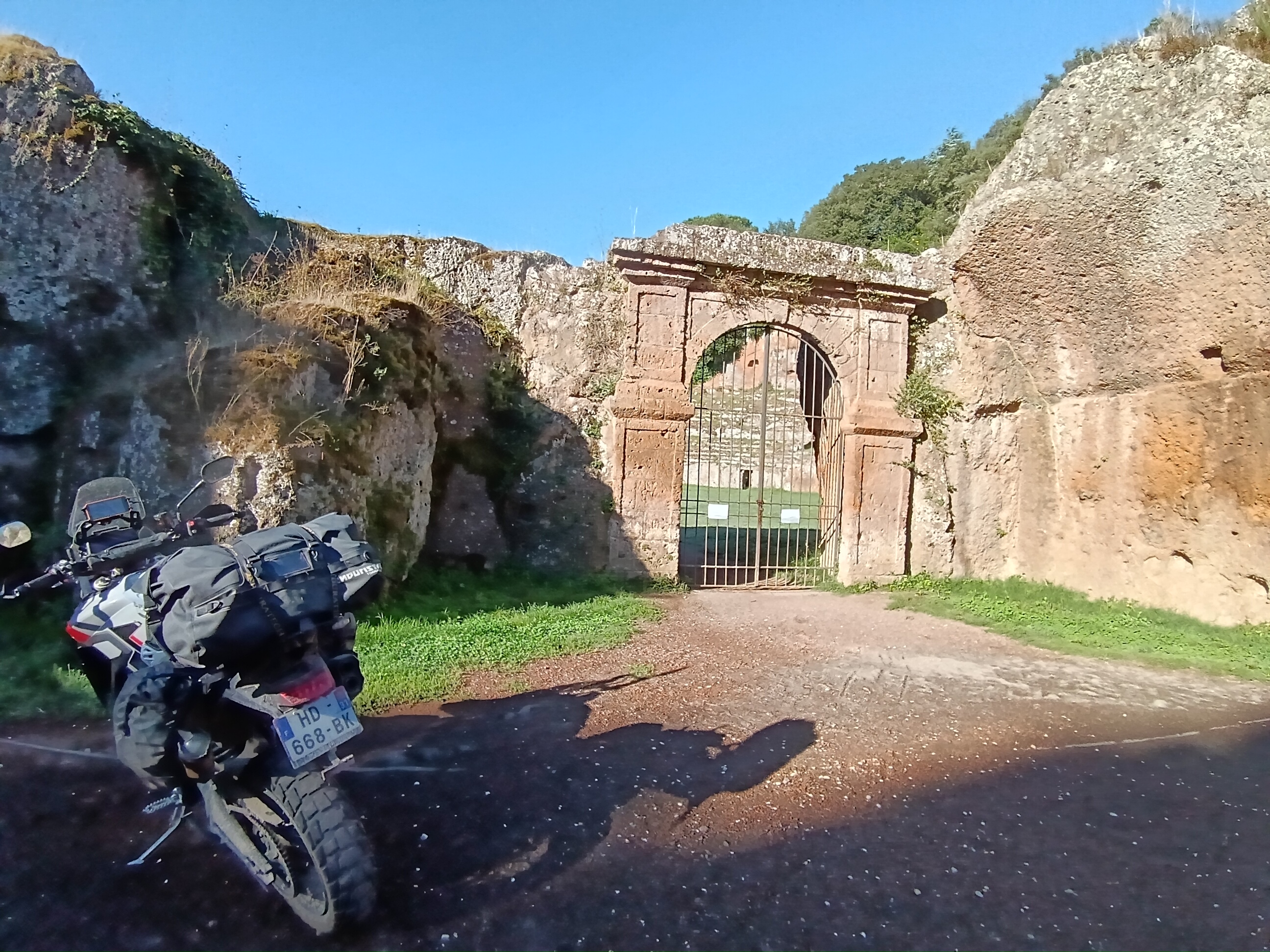 Réveil avec vue. Ce qui pour moi devait être une journée de transition, voire une étape nécessaire pour rentrer au pays, s’est avéré être une belle surprise non anticipée, et une excellente journée de moto. Toujours pas d’autoroute, mais la volonté d’explorer au plus profond les territoires traversés. Première surprise, la découverte de ces 3 lacs naturels successifs (dans l’ordre du sud au nord: Bracciano, Vico, Bolsena), chacun avec ses couleurs et sa végétation autour spécifique. Entre ces lacs, des villages extrêmement intéressants, comme Sutri et son amphithéâtre rupestre, Caprarola et son palazzo Farnese et son couvent Santa Teresa, ou Civita, posé sur son pic au milieu de très belles formations géologiques. deuxième surprise, le sud de la Toscane, du côté des forêts du Mont Amiata, ou plus au nord du côté de Monticiano et de l’abbaye de San Galgano. Troisième surprise, la gastronomie. Loin de Florence ou Sienne, des restaurants authentiques alors que la saison des porcini (cèpes) bat son plein. On termine par un rapide passage à San Gimignano avant de rejoindre Pise, pas trop tard pour investir la ville et ses recoins.