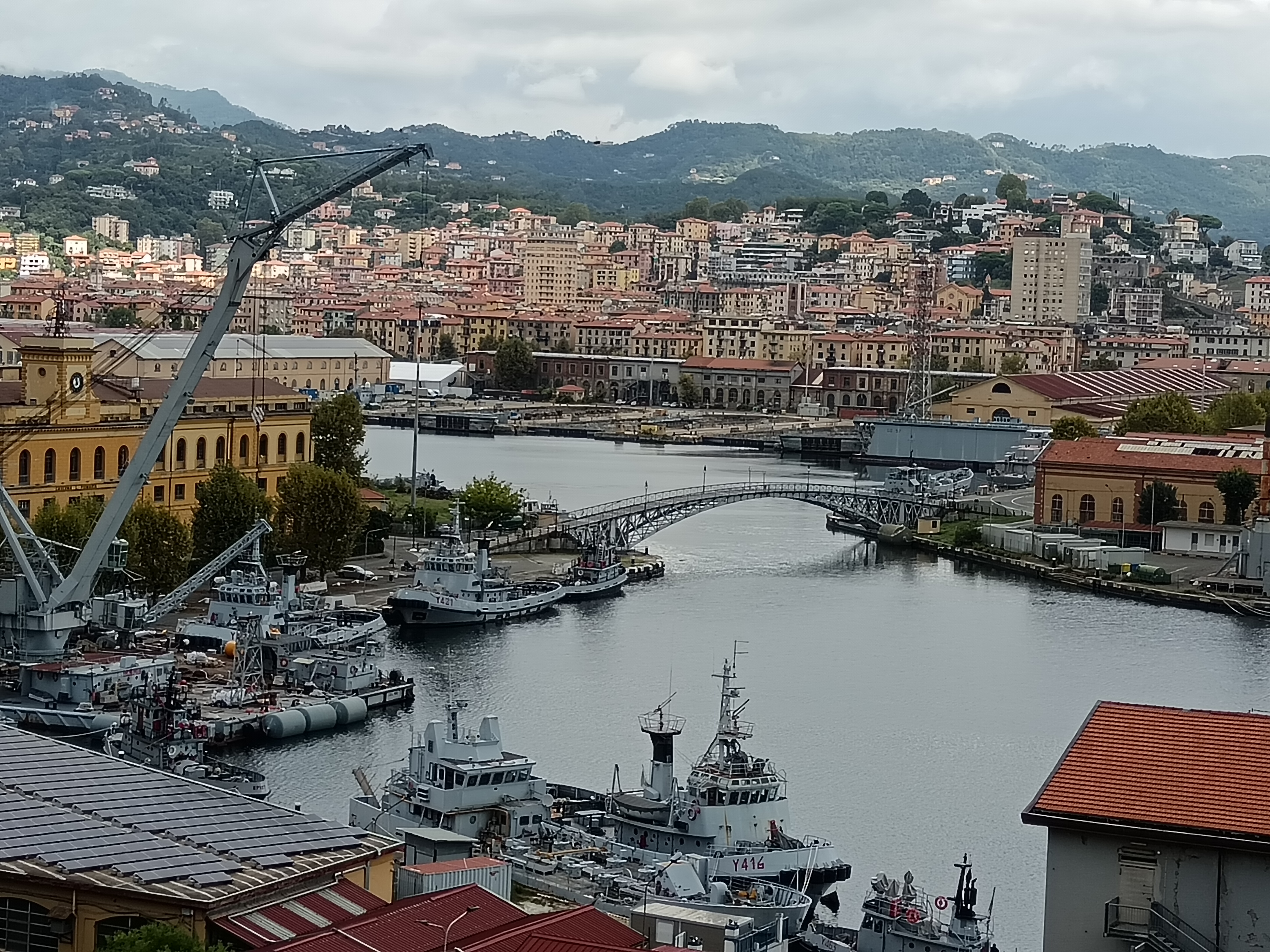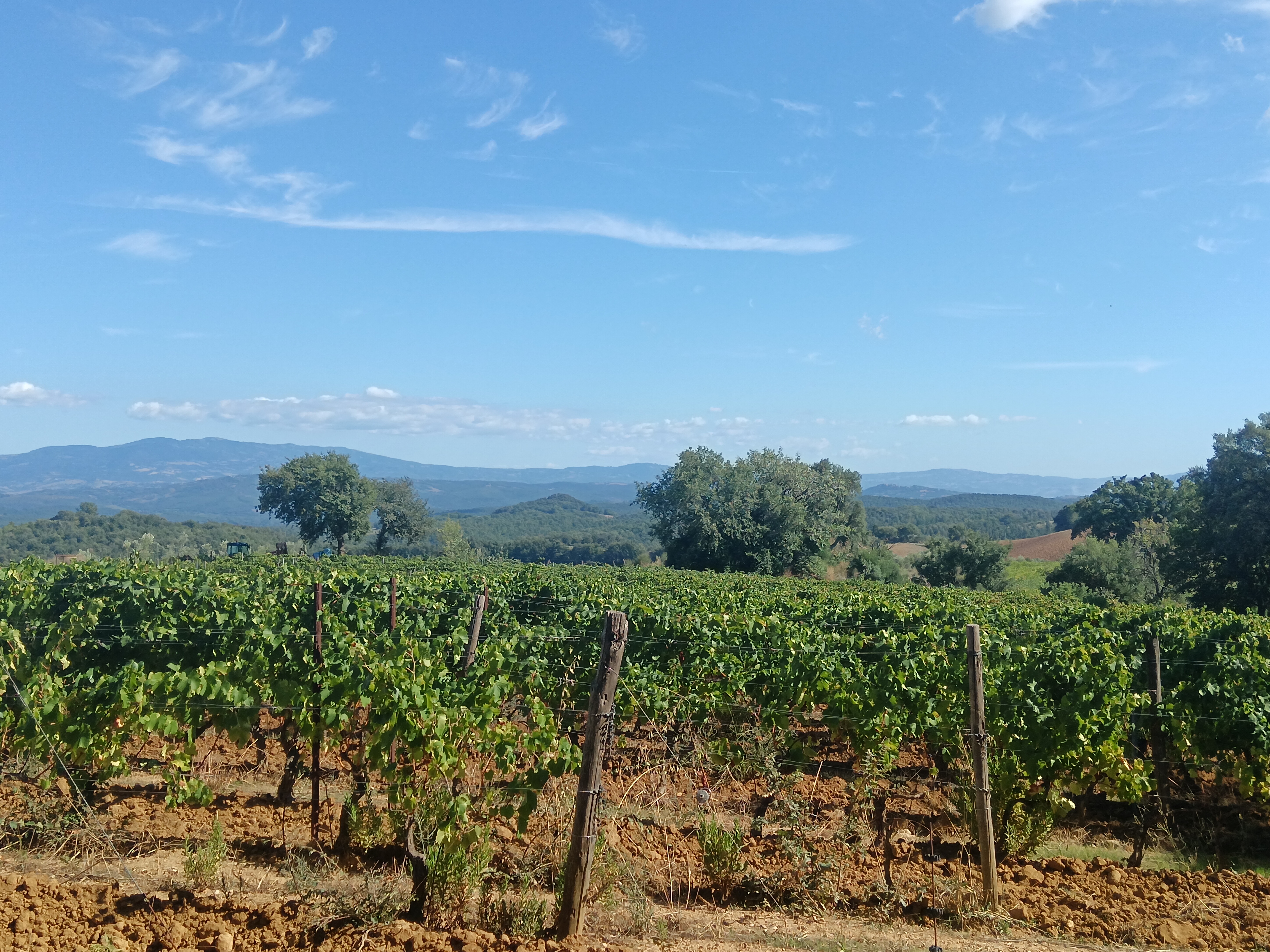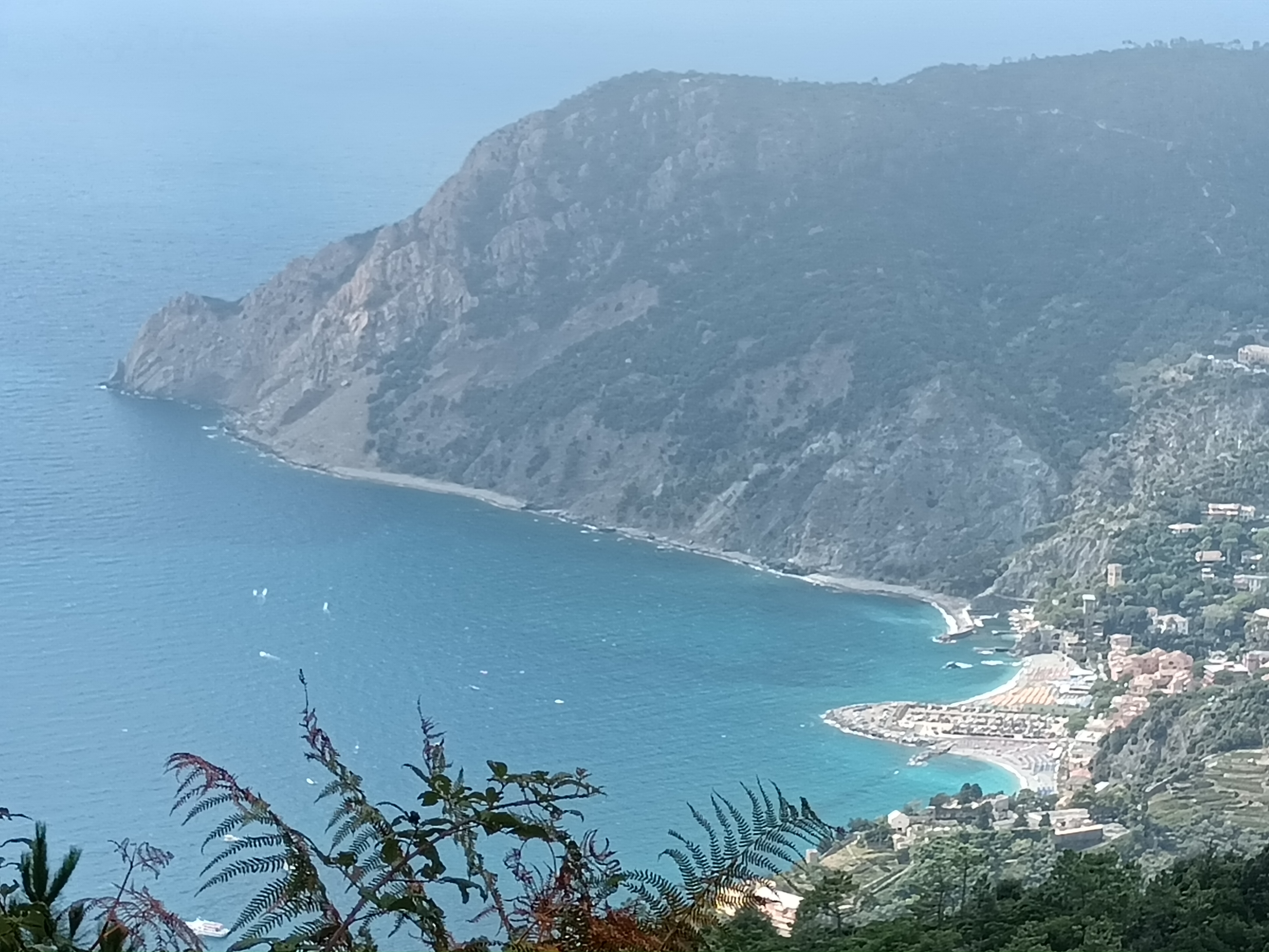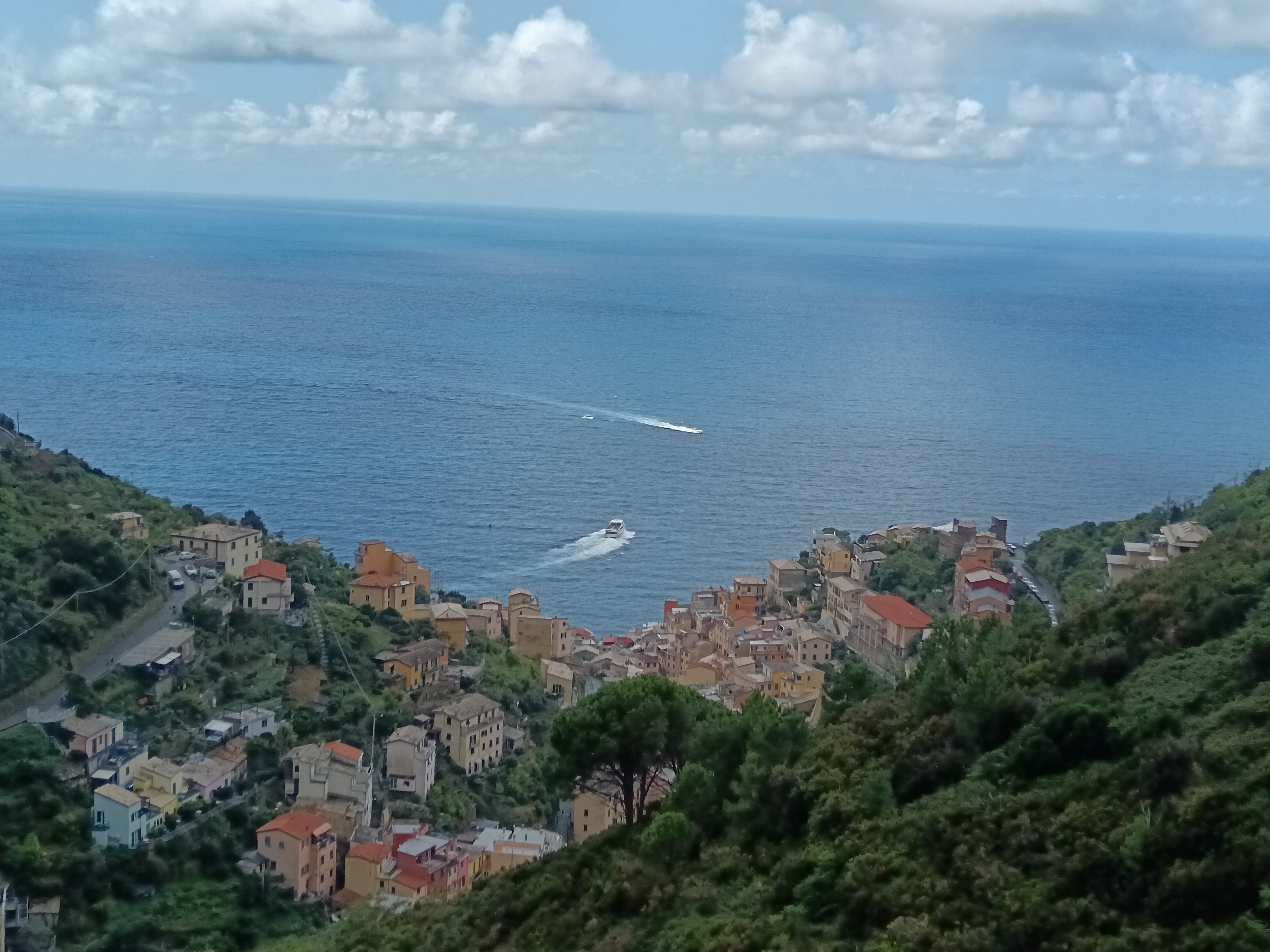 On poursuit jusqu’à La Spieza, pour arpenter Cinqueterre durant deux heures d’étroites routes de corniche, ouvrant des vues sur les célèbres villages en contrebas, en partie dans une brume maritime, en partie dans de beaux dégradés de bleus. Ce n’est pas la première fois que je passe par ici, mais je découvre pour la première fois une production viticole sur des pentes impressionnantes, les vignes étant équipées de crémaillères pour remonter la vendage sur la route. Etonnant.