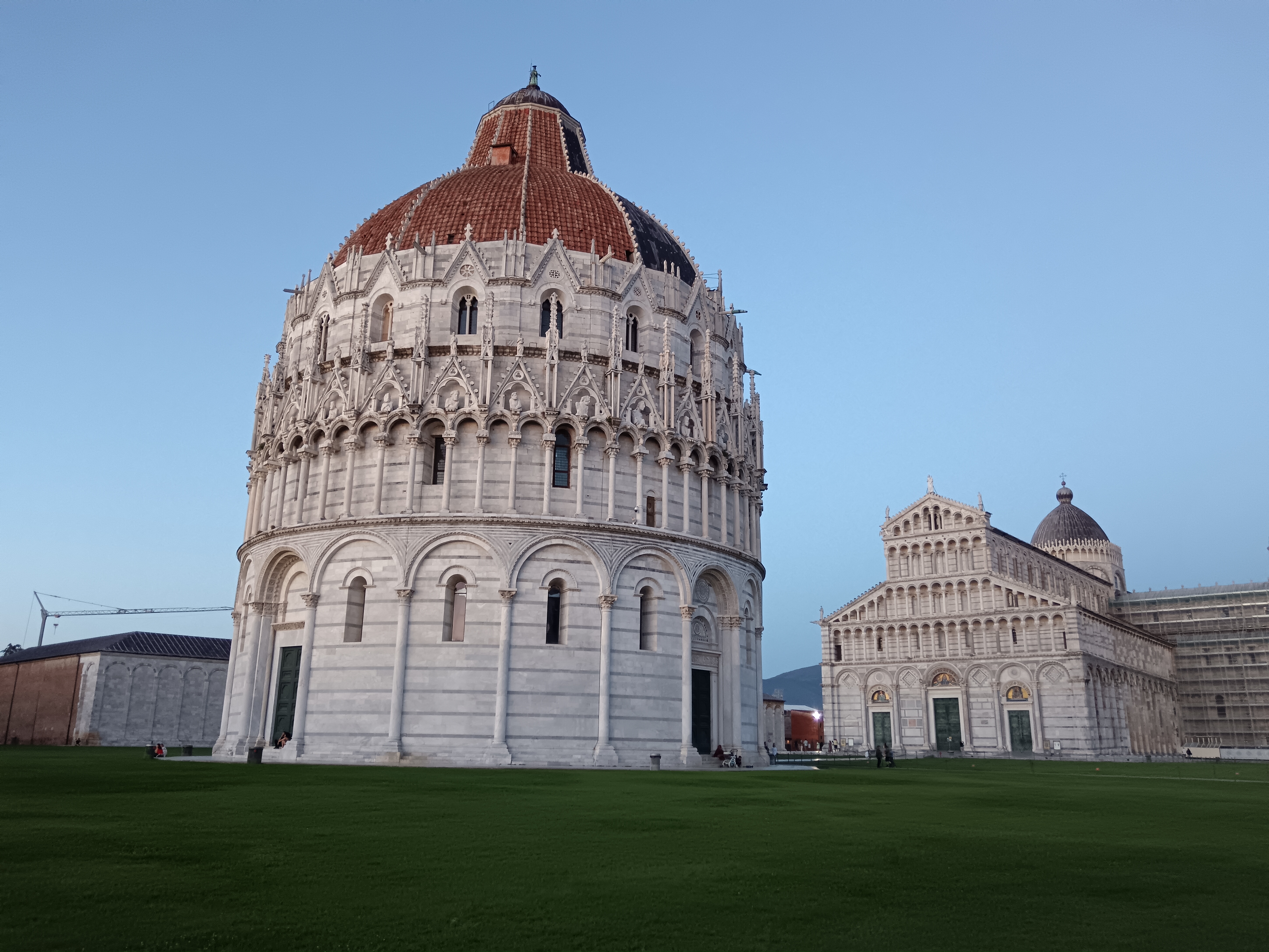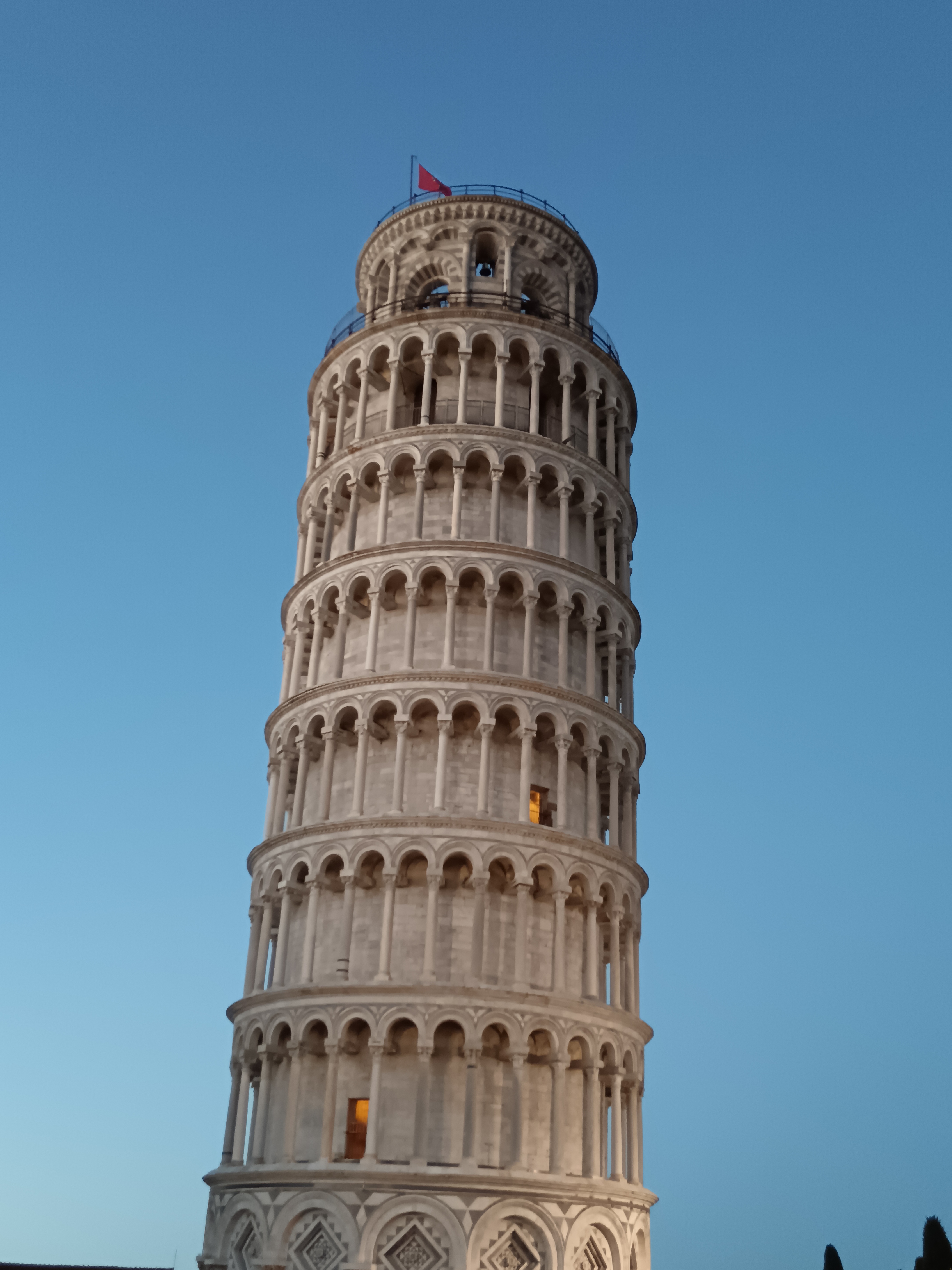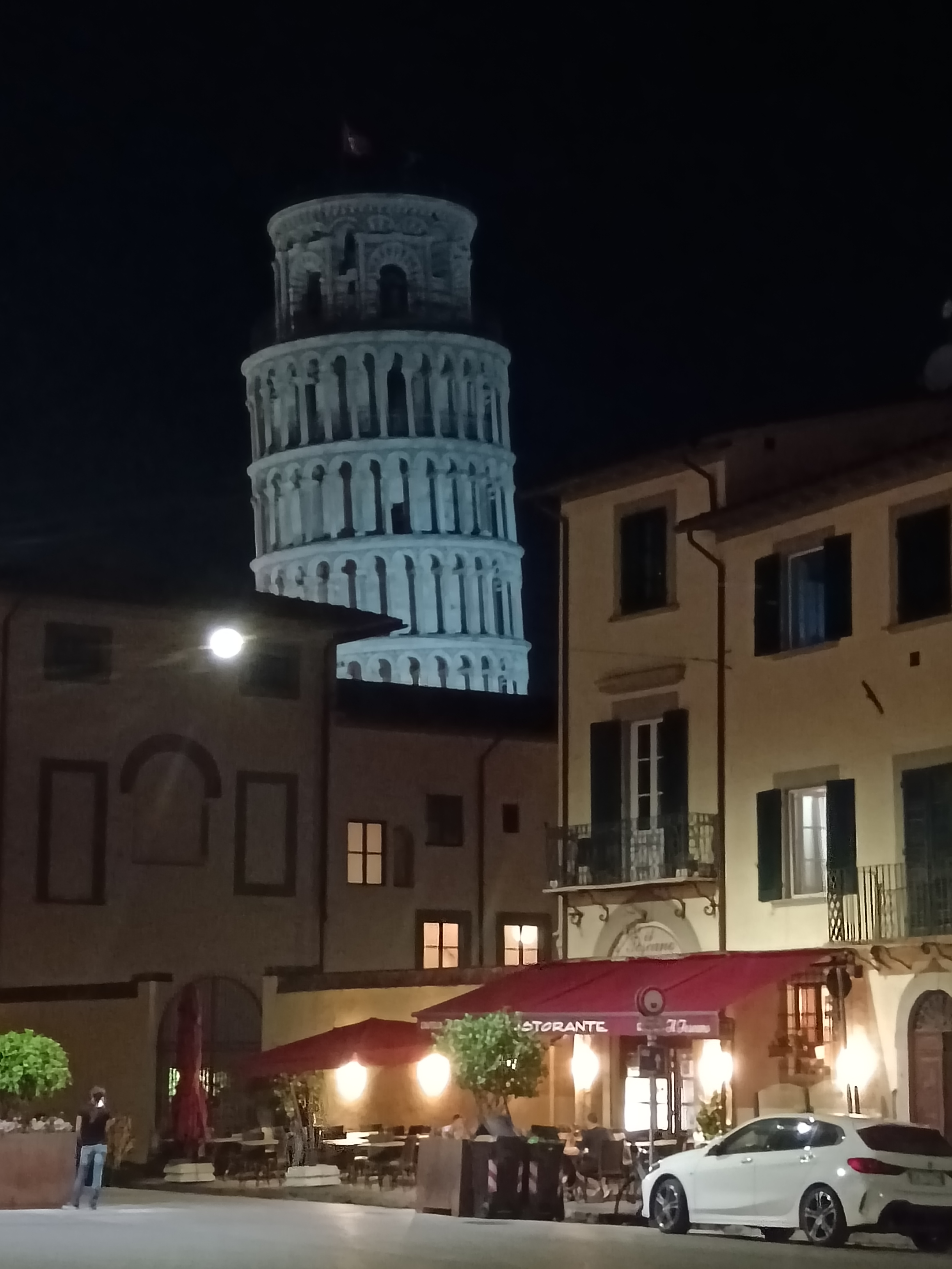 Il est 20h, je peux donc arpenter l’esplanade de la Piazza del Duomo et de la Torre di Pisa relativement sereinement sans être pris par la foule, et à l’heure où le soleil se couche. Puis pénétrer dans le quartier historique, me poser chez le célèbre brasseur Orzo Bruno, avant de rejoindre un très bon restaurant populaire conseillé par ce même brasseur. Je termine par une déambulation nocturne assez tardive, découvrant à plusieurs reprises l’étrangeté de cette tour par dessus les toits de la ville.