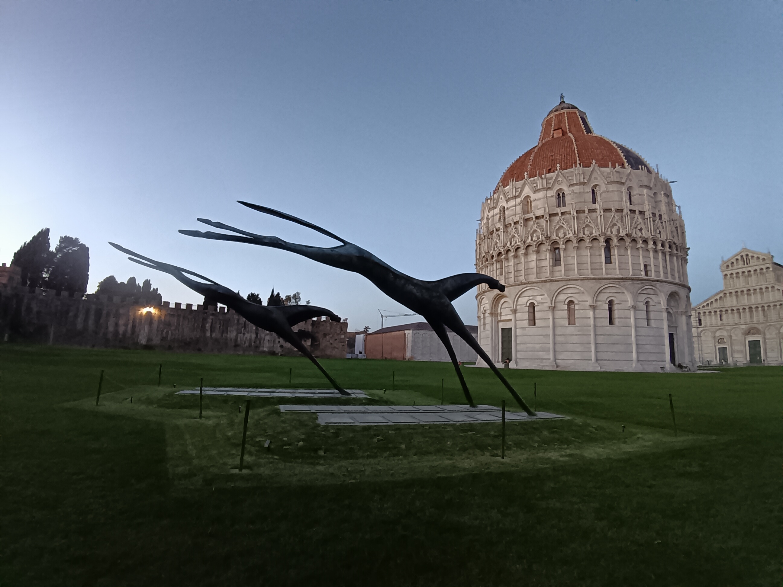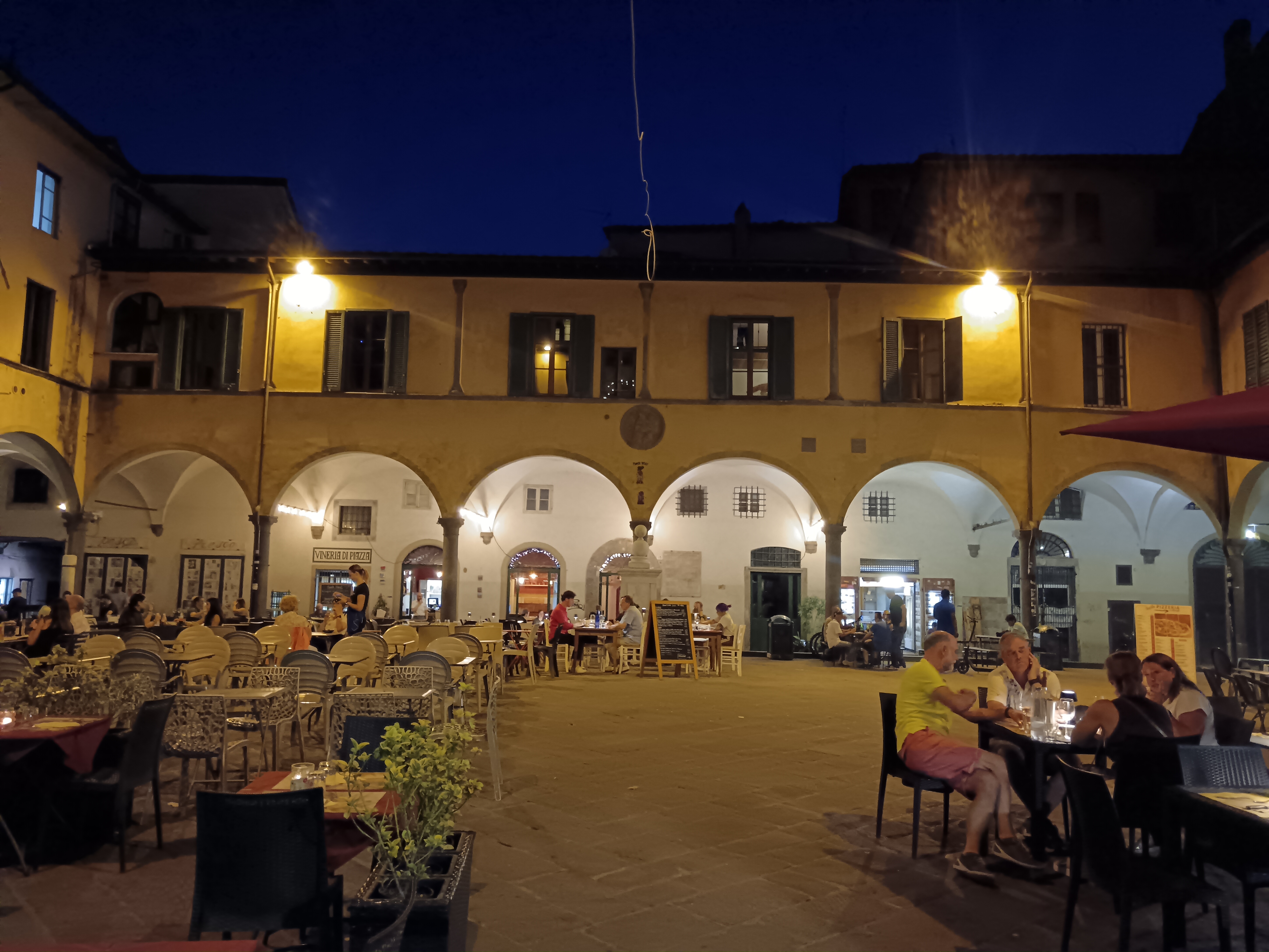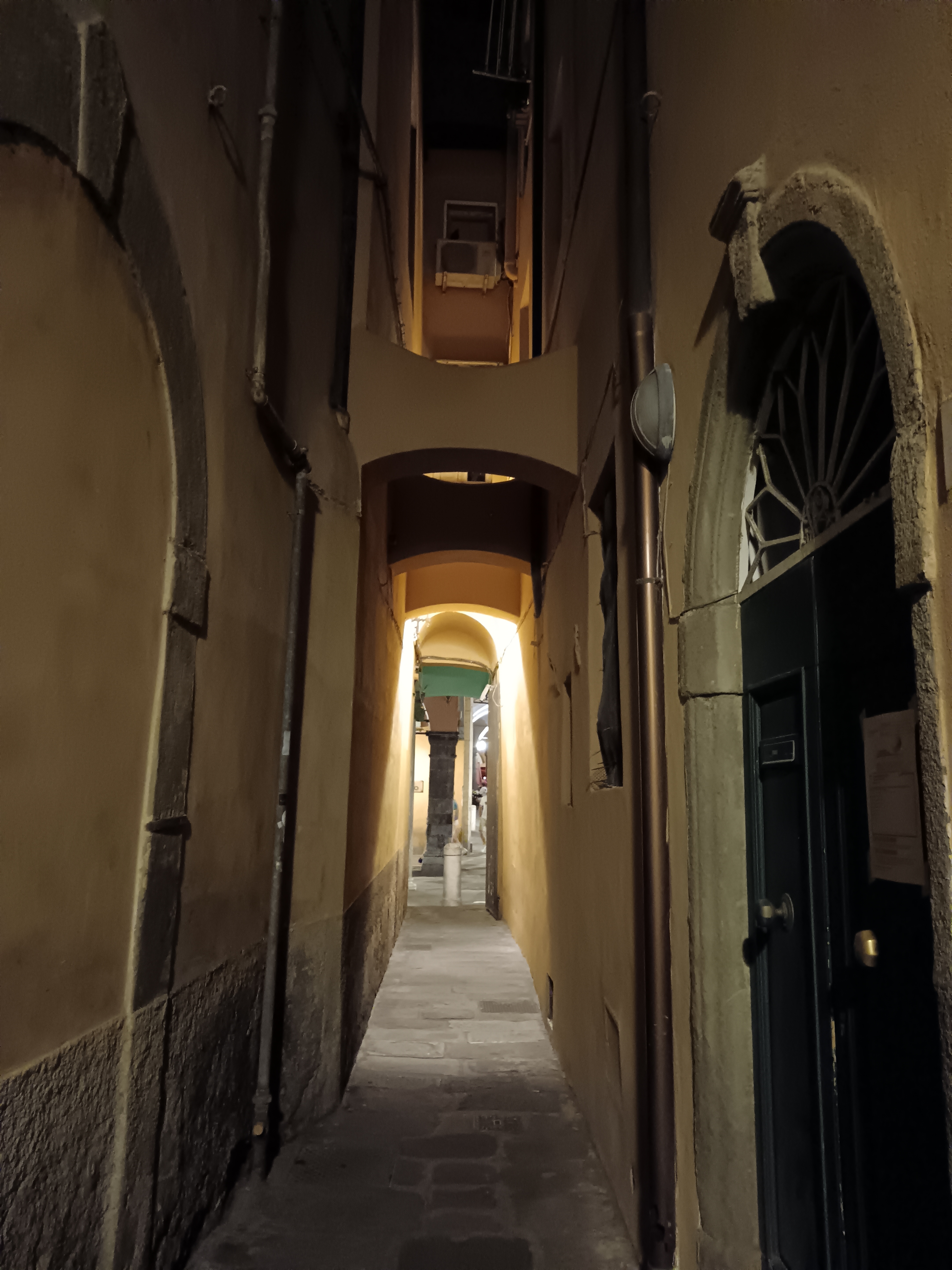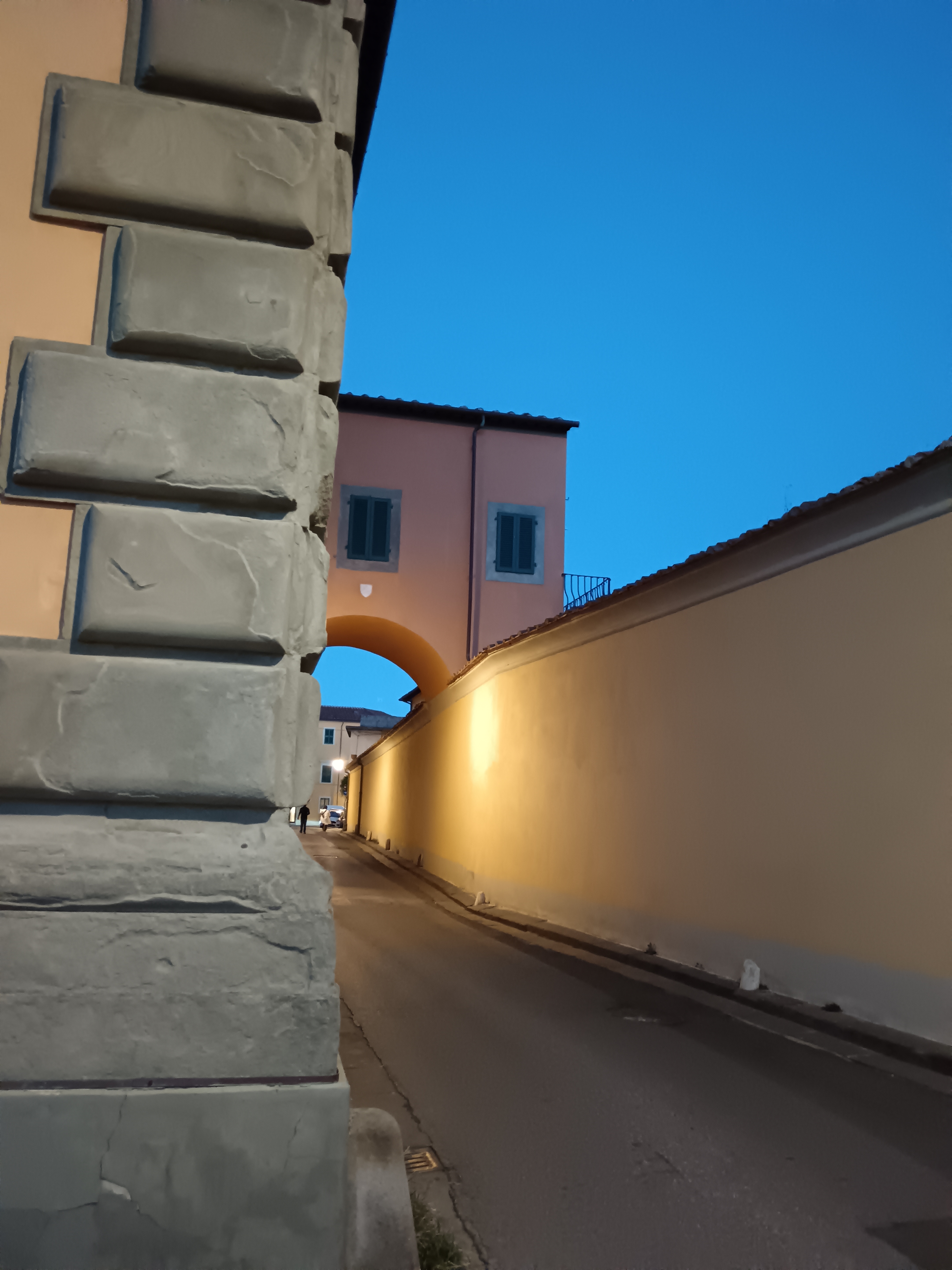 Il est 20h, je peux donc arpenter l’esplanade de la Piazza del Duomo et de la Torre di Pisa relativement sereinement sans être pris par la foule, et à l’heure où le soleil se couche. Puis pénétrer dans le quartier historique, me poser chez le célèbre brasseur Orzo Bruno, avant de rejoindre un très bon restaurant populaire conseillé par ce même brasseur. Je termine par une déambulation nocturne assez tardive, découvrant à plusieurs reprises l’étrangeté de cette tour par dessus les toits de la ville.